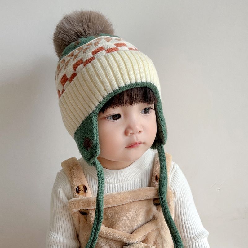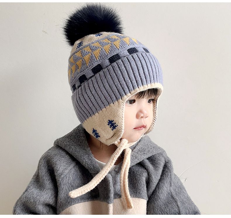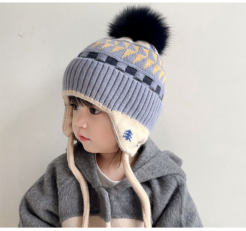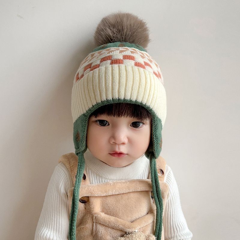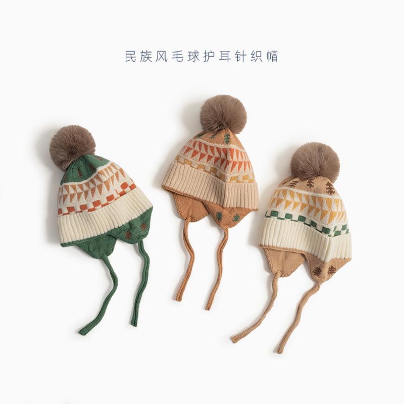 儿童帽子秋冬季卡通可爱女童宝宝毛线帽防风保暖护耳帽男孩针织帽