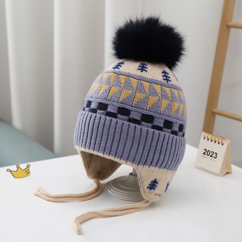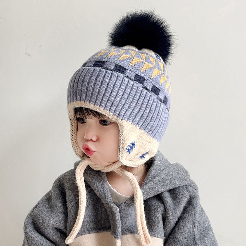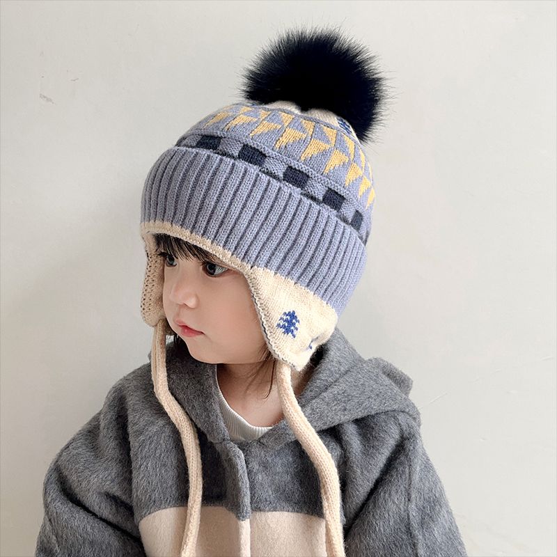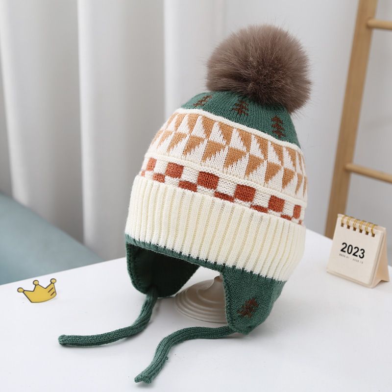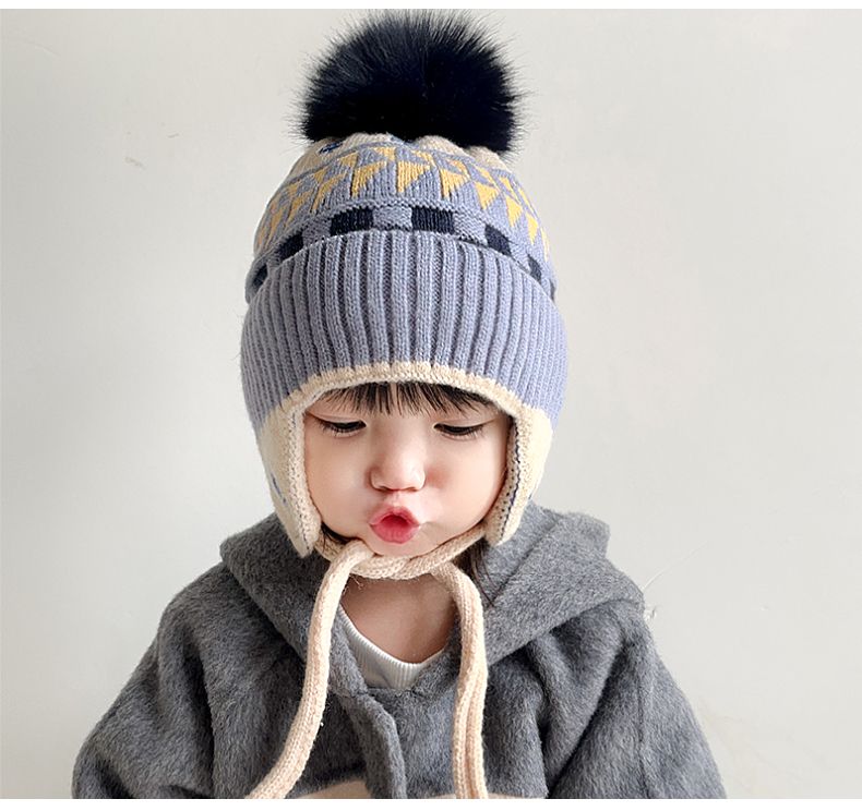 儿童帽子秋冬季卡通可爱女童宝宝毛线帽防风保暖护耳帽男孩针织帽