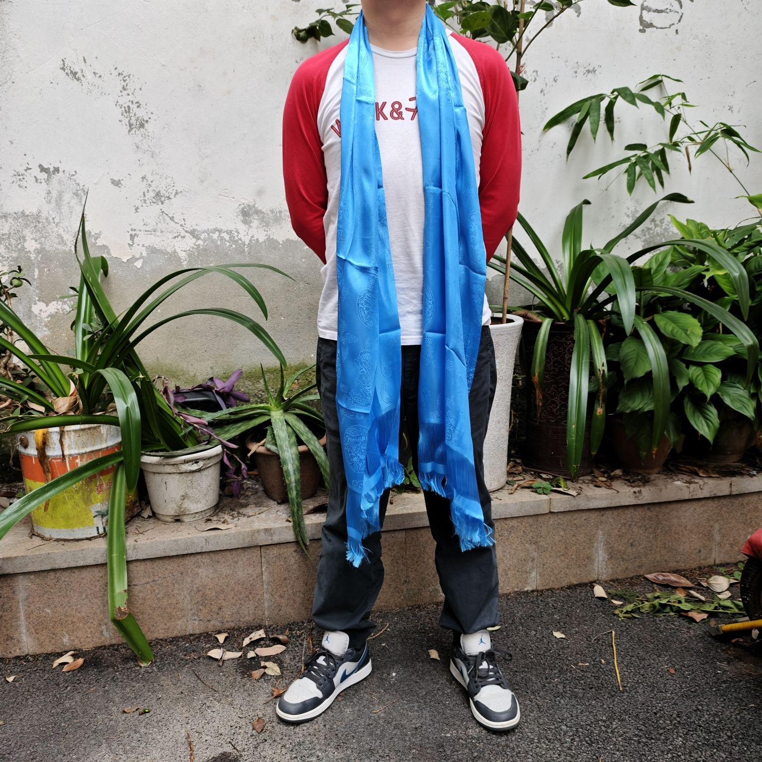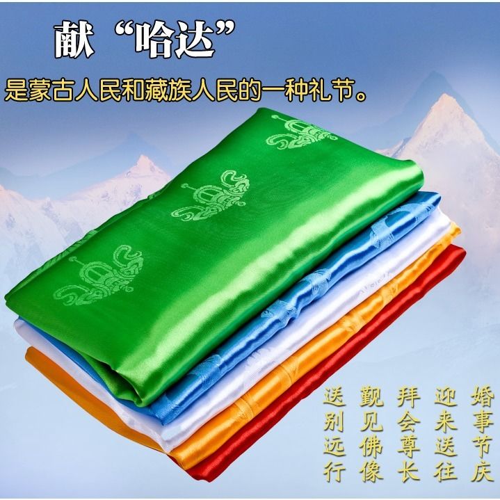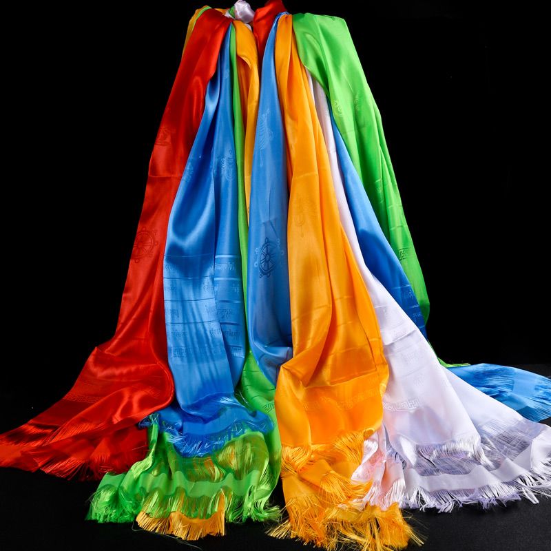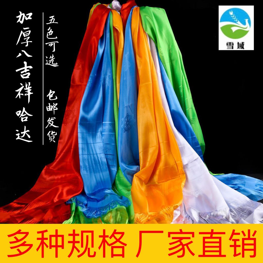 精品提花八吉祥哈达藏族用品蒙古族礼仪绸布暗花蓝色五色大中小号