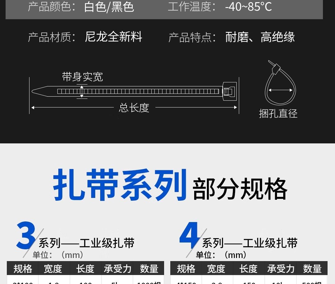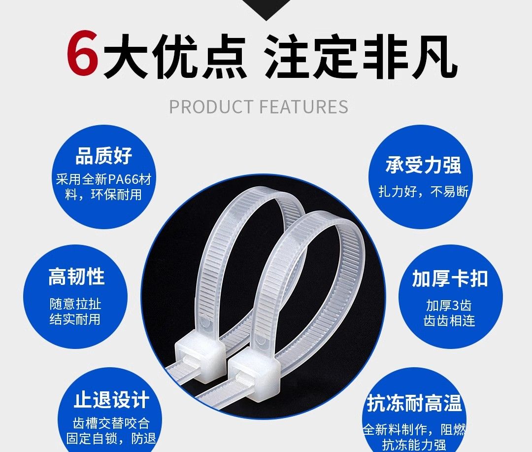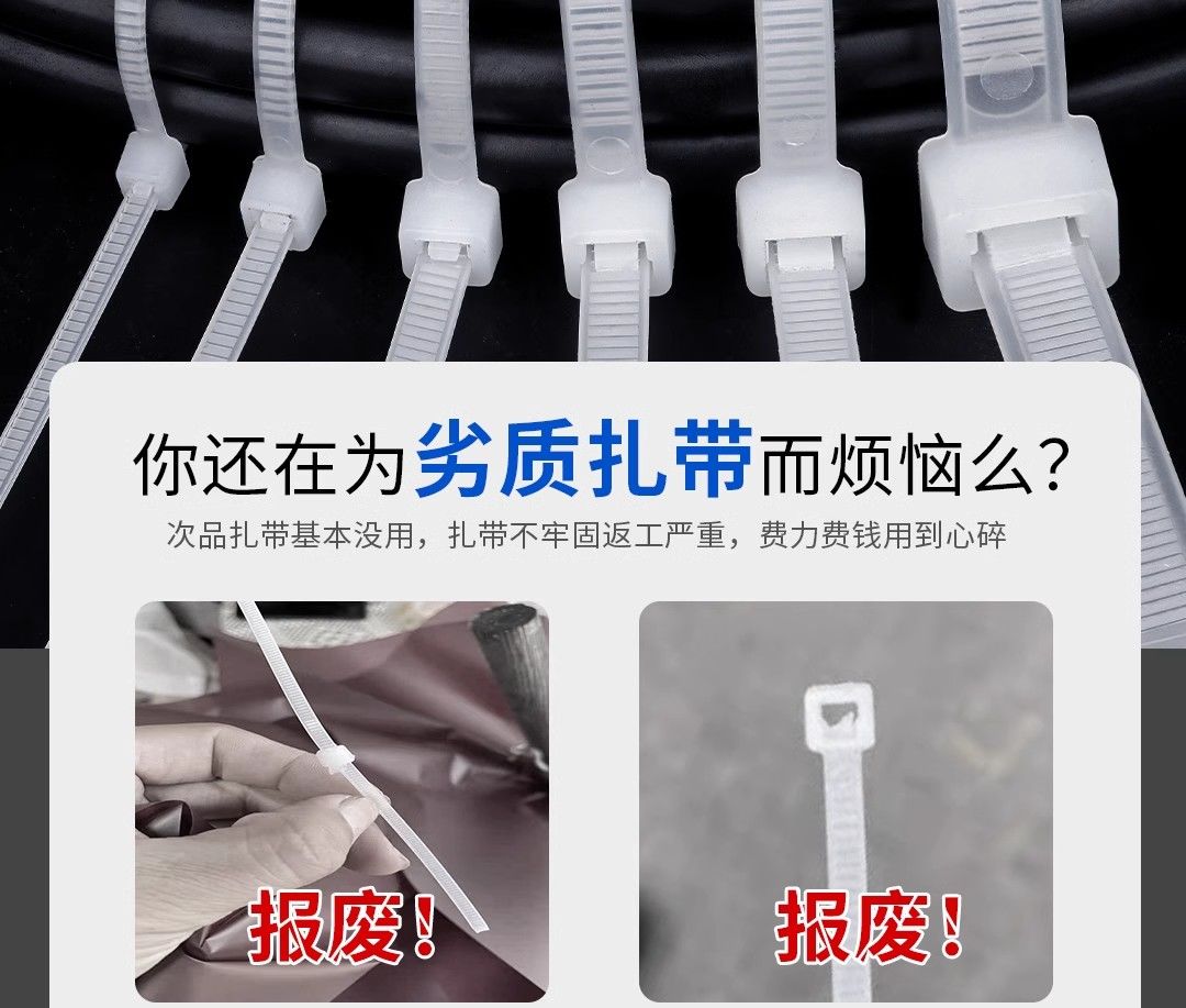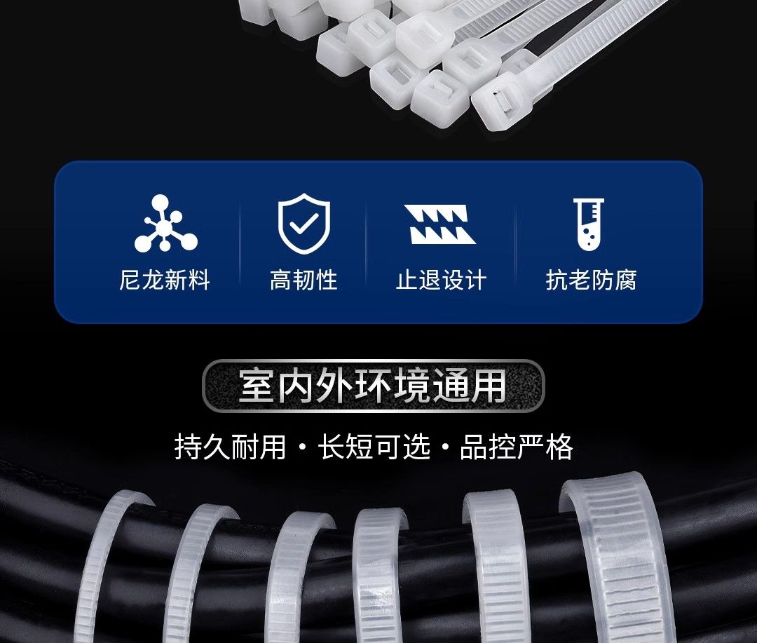加厚自锁式尼龙扎带按公斤批发黑白色大中小号束线带固定捆绑卡扣