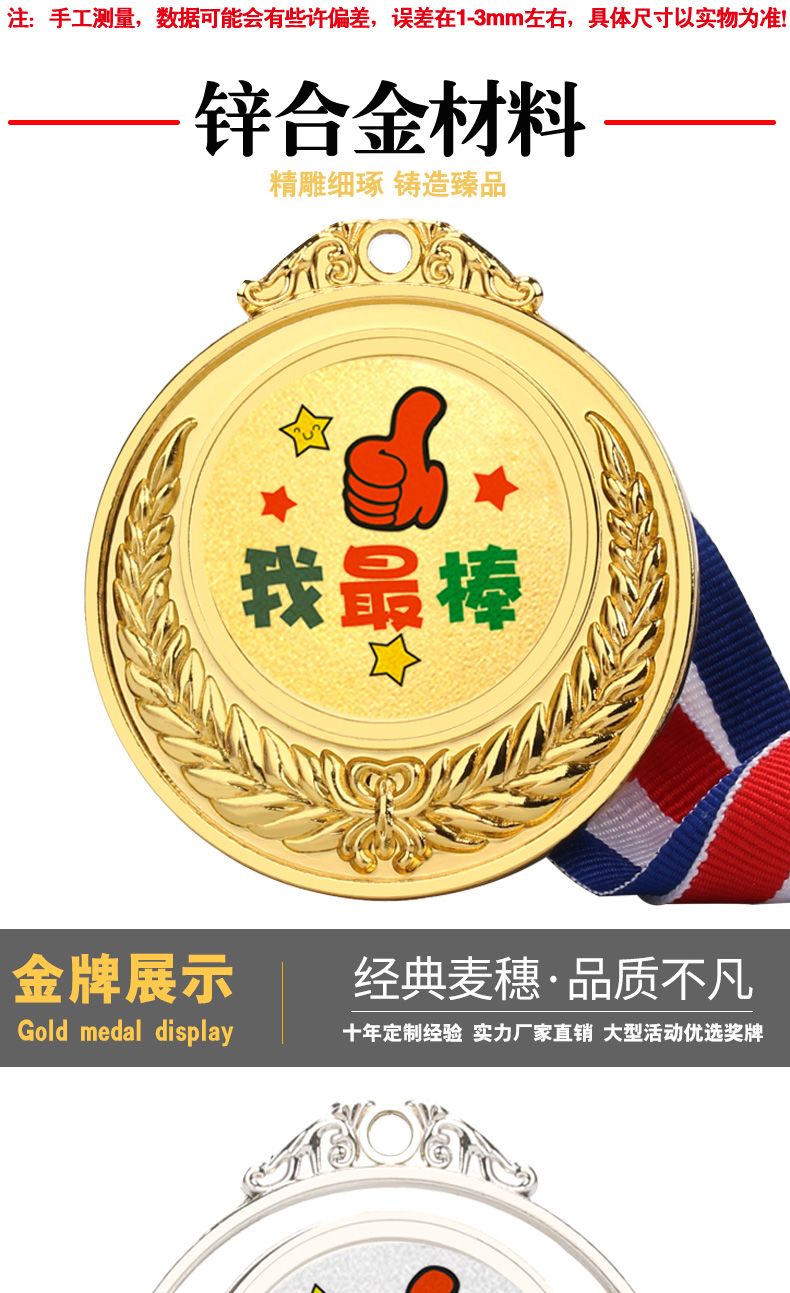 毕业奖牌定做金属儿童挂牌学生运动会金牌幼儿园荣誉奖章奖杯定制