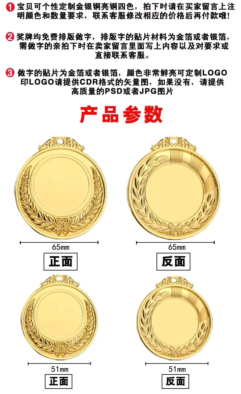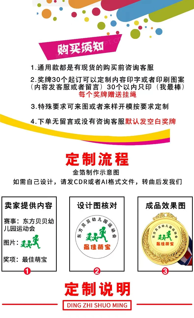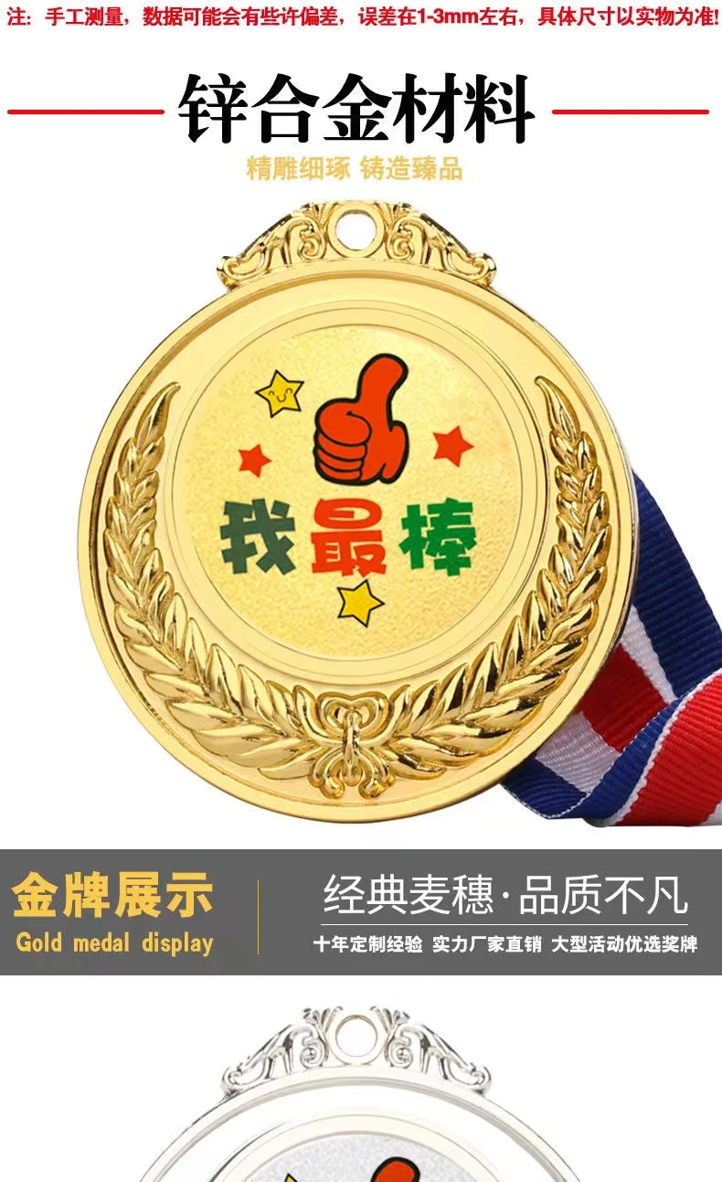 金属奖牌定制学生运动会定做儿童挂牌金牌幼儿园荣誉奖章奖杯冠军