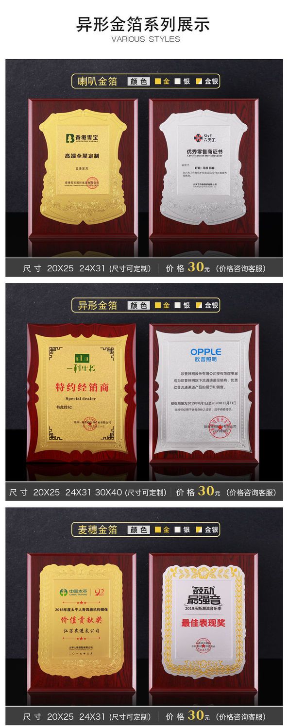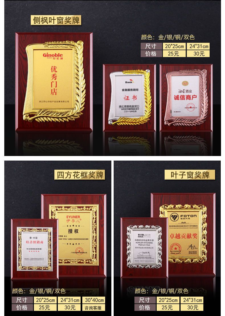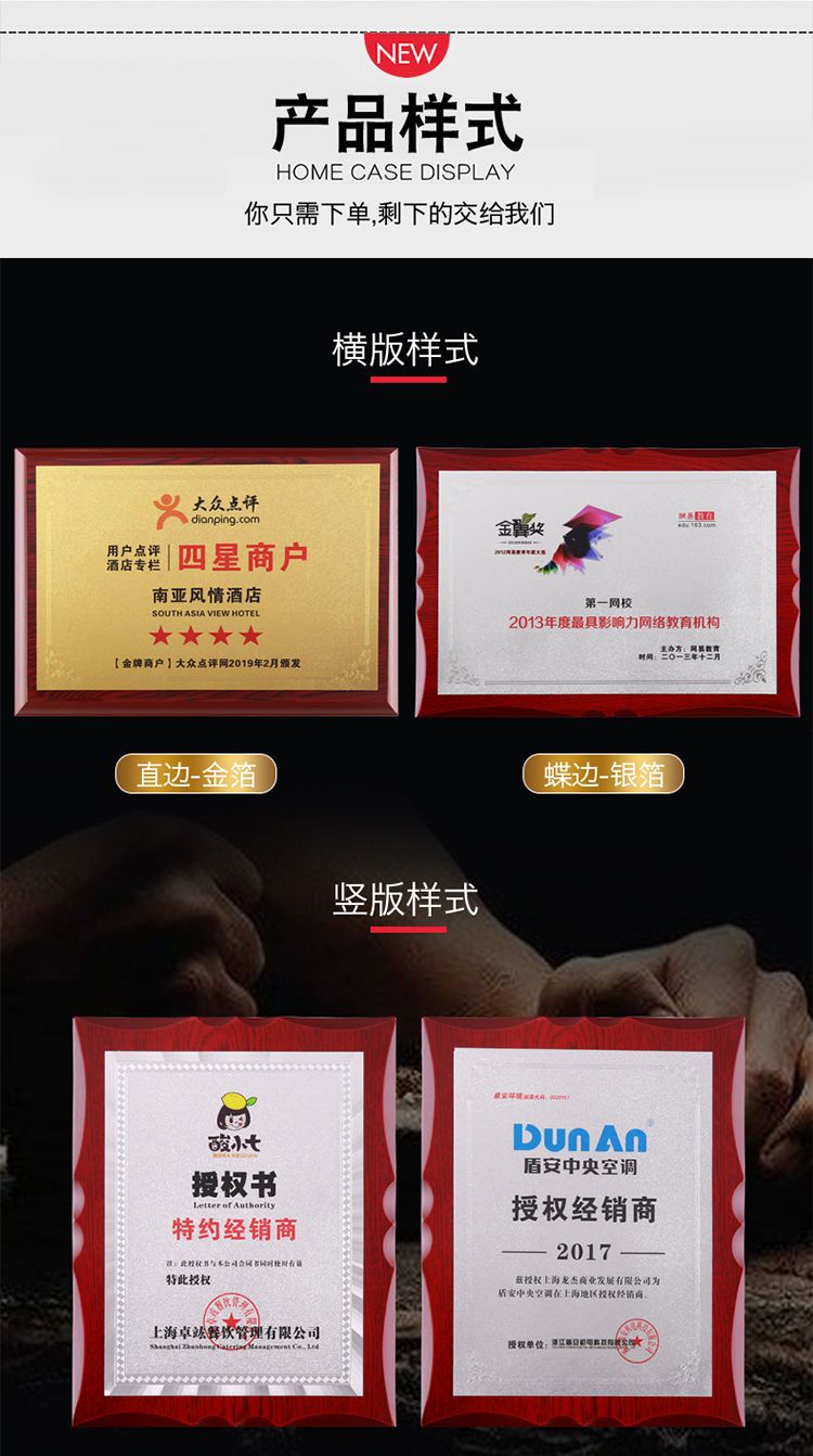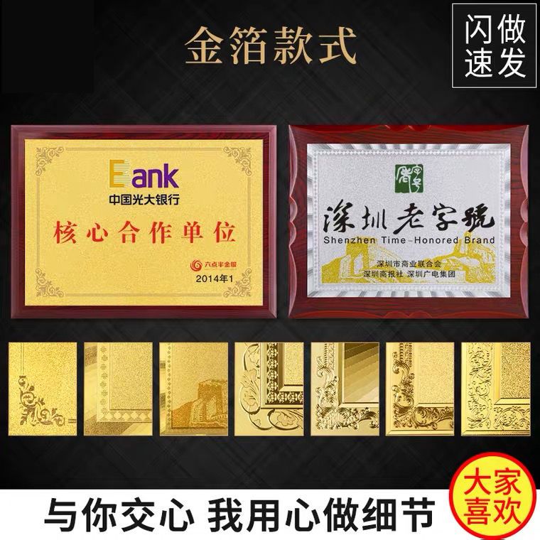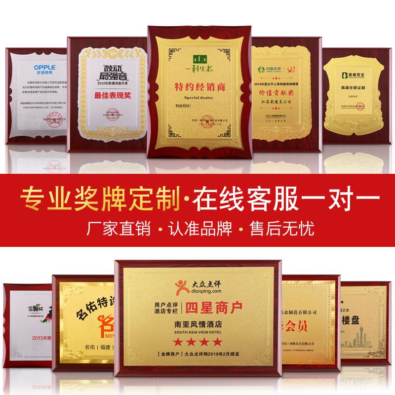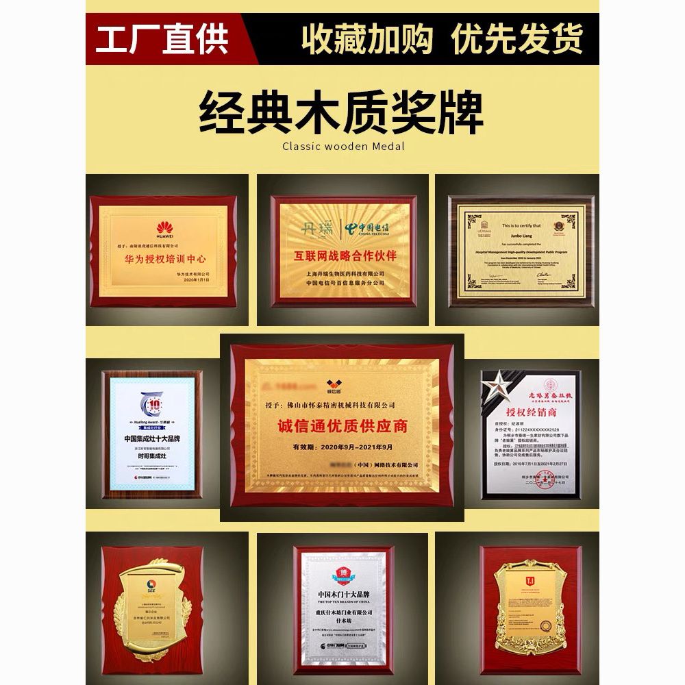 金箔奖牌定制定做金属荣誉牌授权牌定制铜牌仿实木质代理牌匾标牌