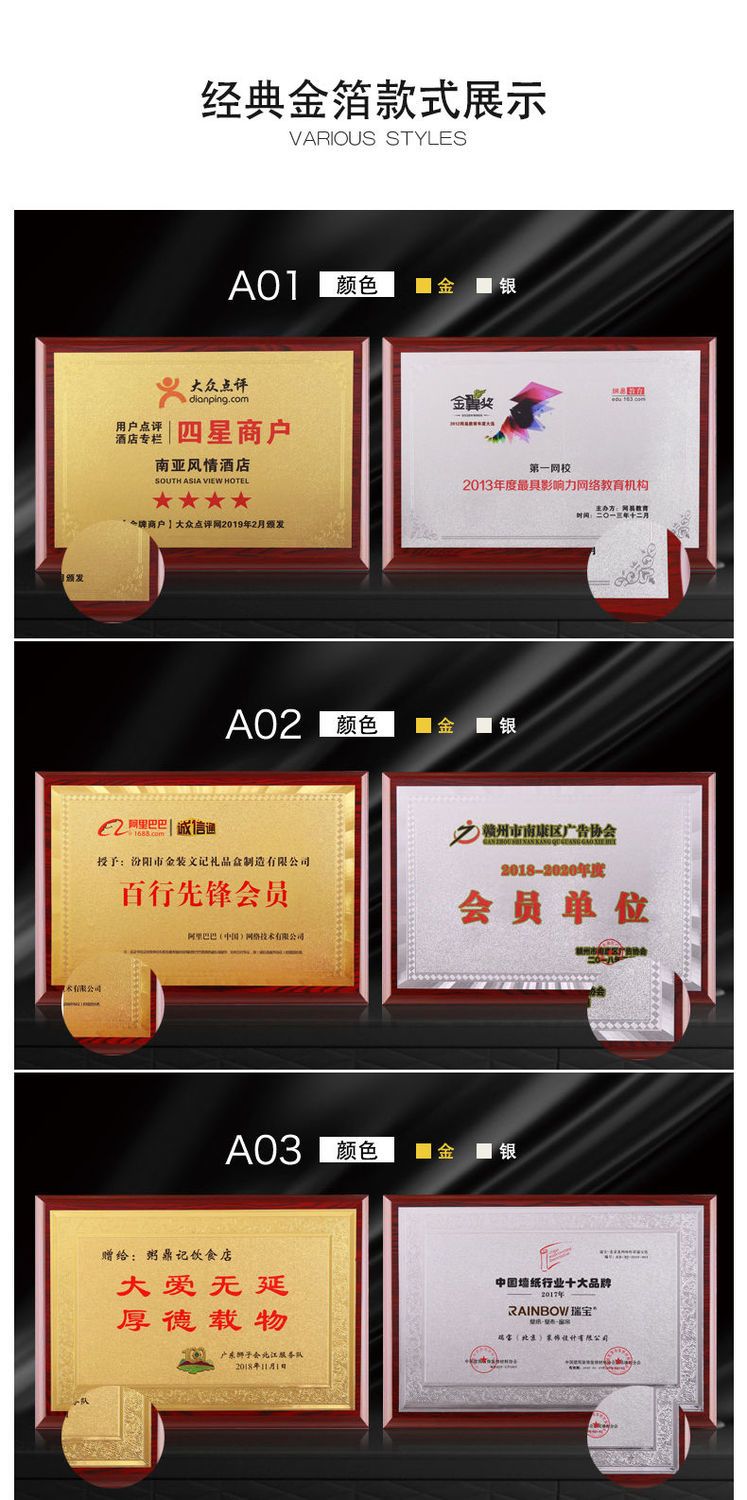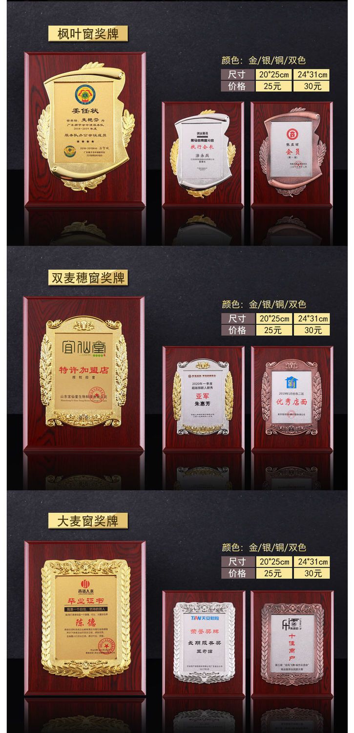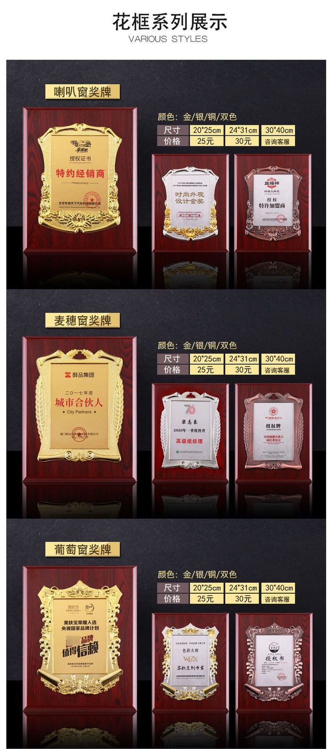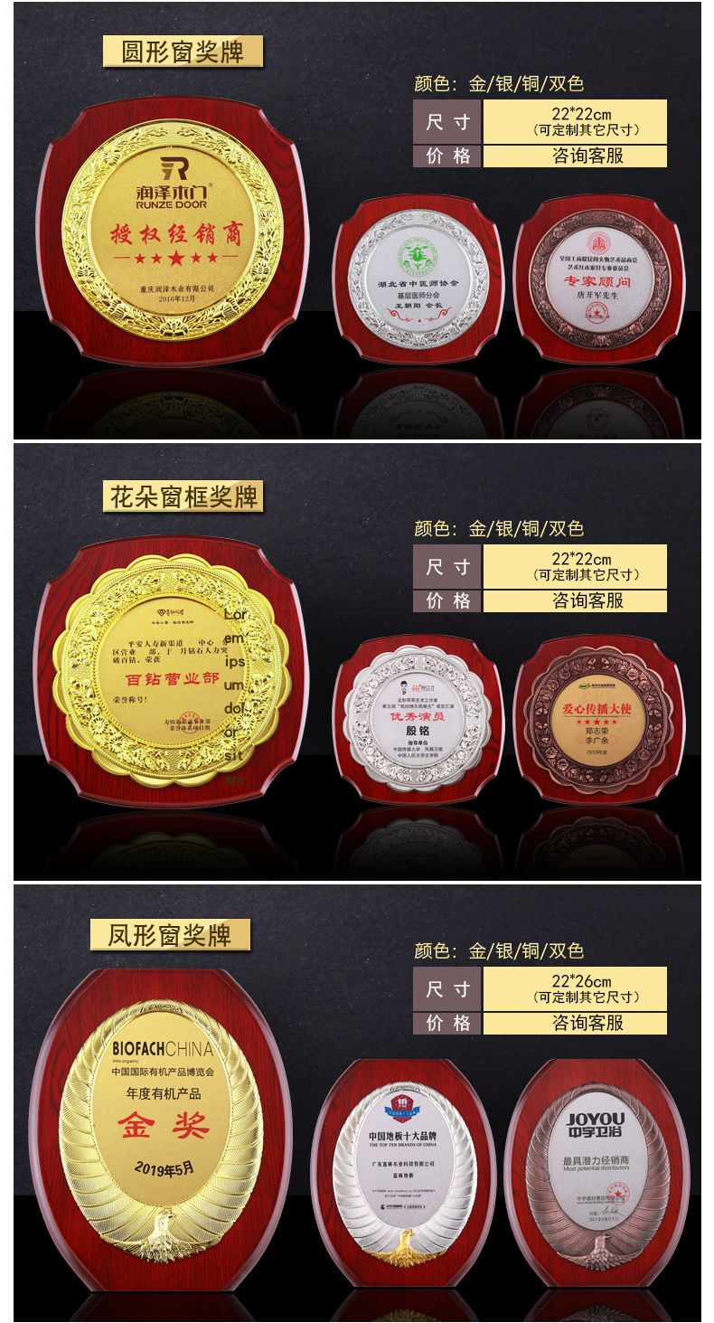 金箔奖牌定制定做金属荣誉牌授权牌定制铜牌仿实木质代理牌匾标牌