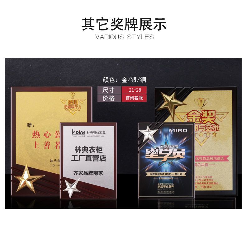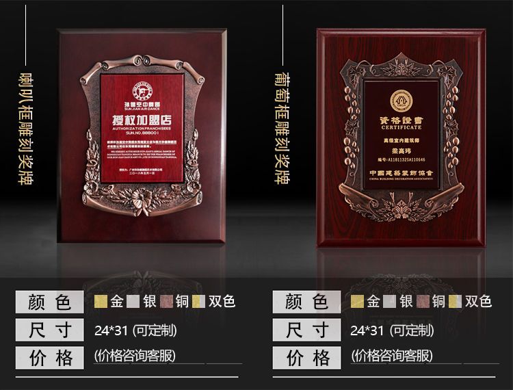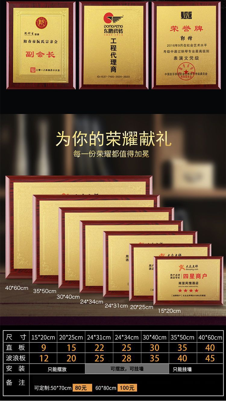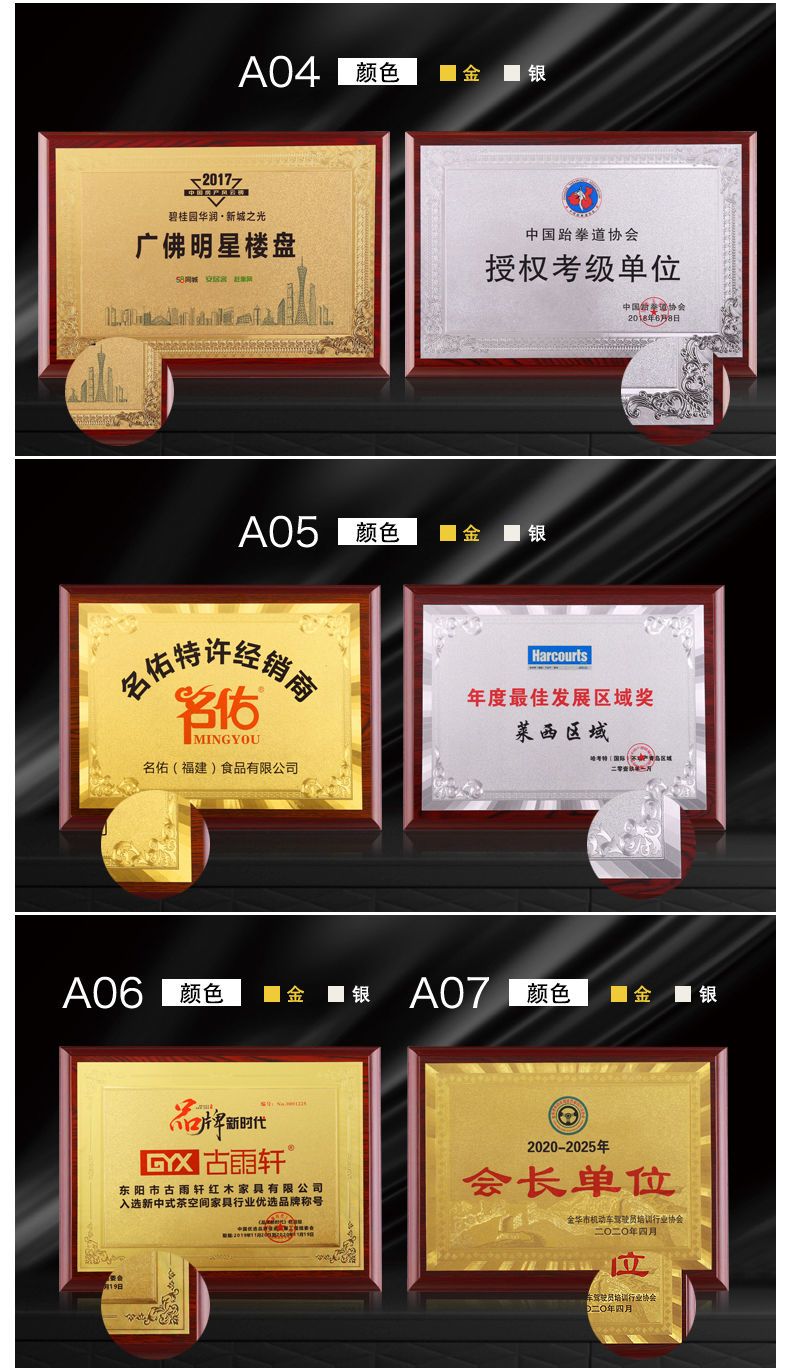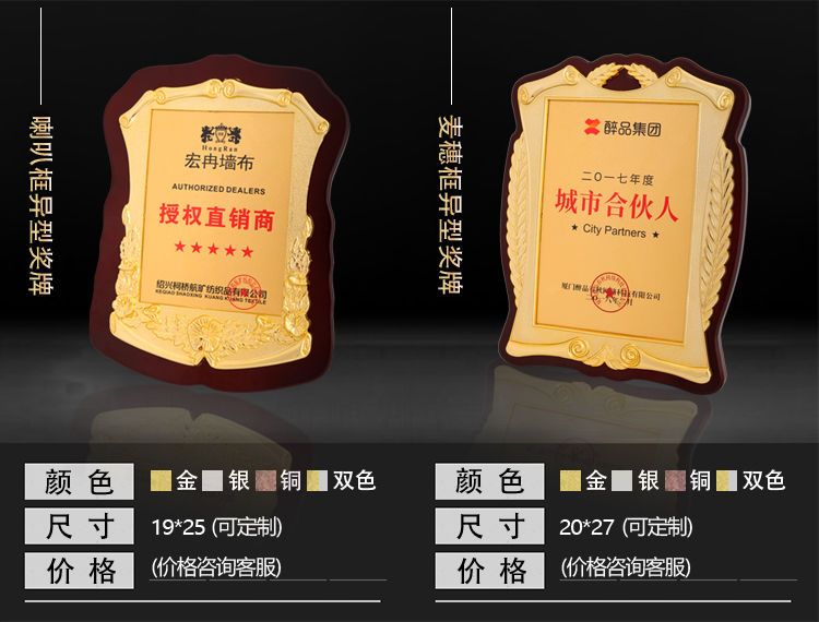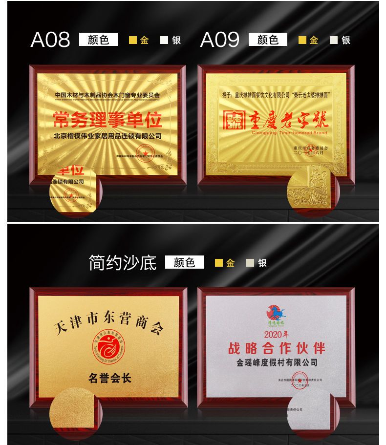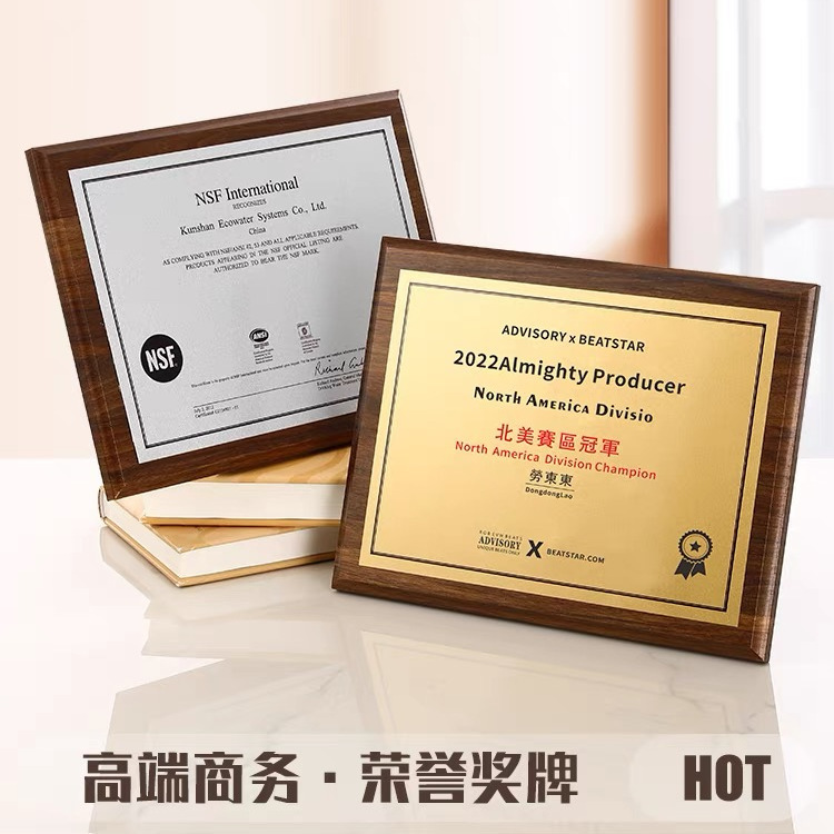 金箔奖牌定制定做金属荣誉牌授权牌定制铜牌仿实木质代理牌匾标牌