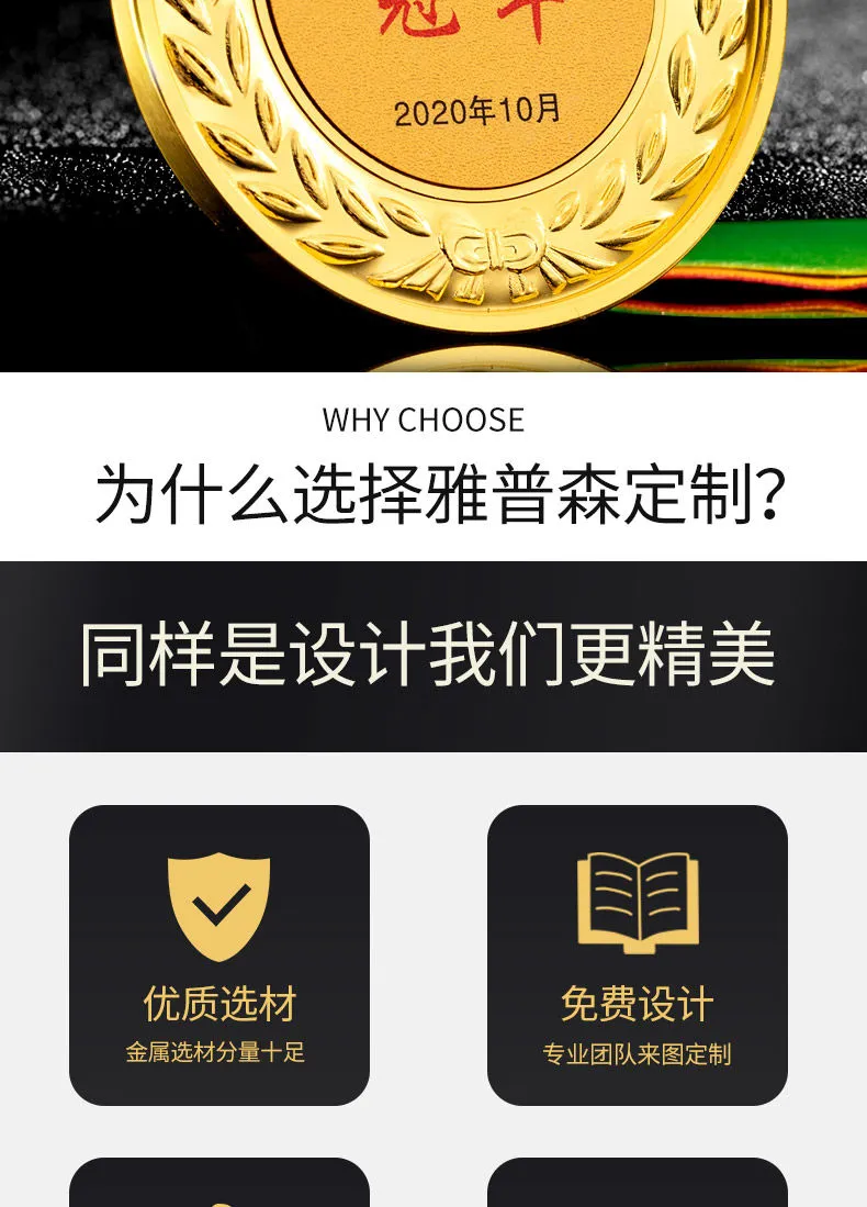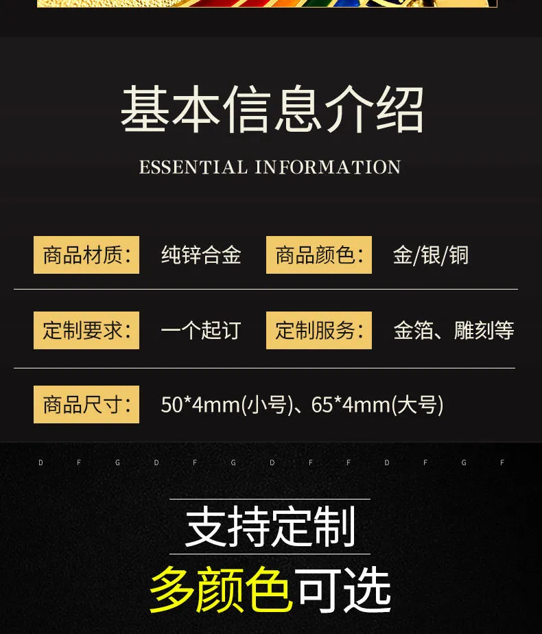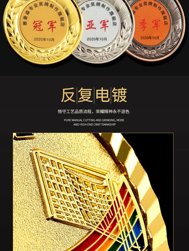 奖牌定制定做运动会篮球比赛冠军奖牌挂牌金箔儿童马拉松荣誉奖牌