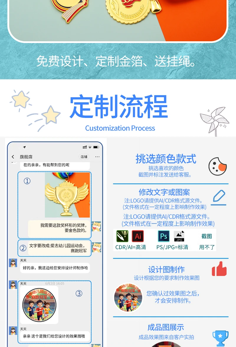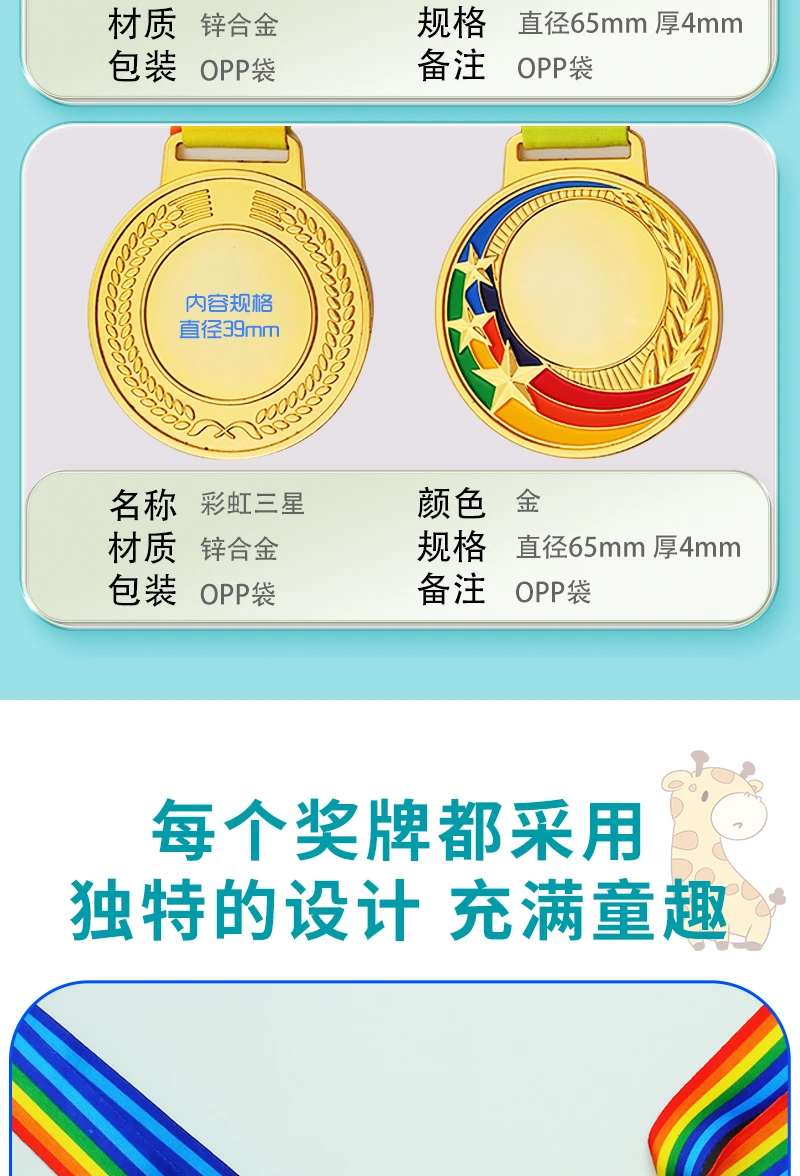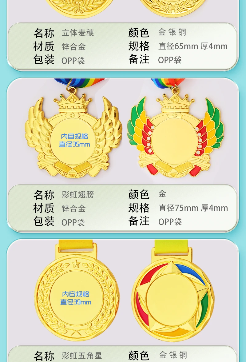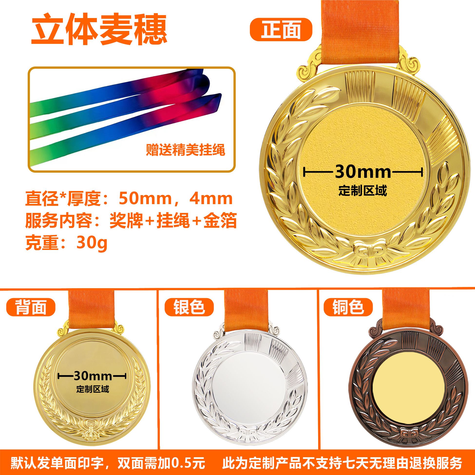 奖牌定制定做比赛金银铜挂牌马拉松运动会儿童幼儿园纪念奖杯制作