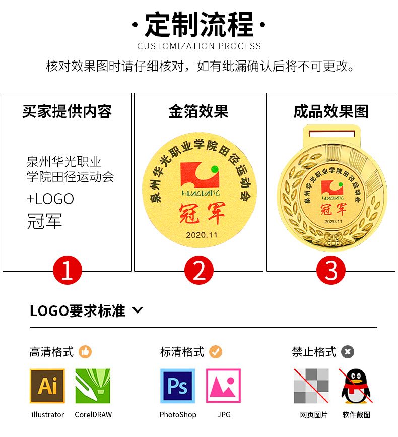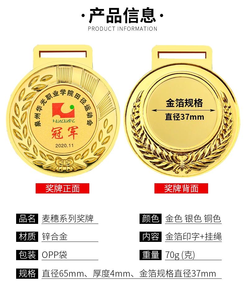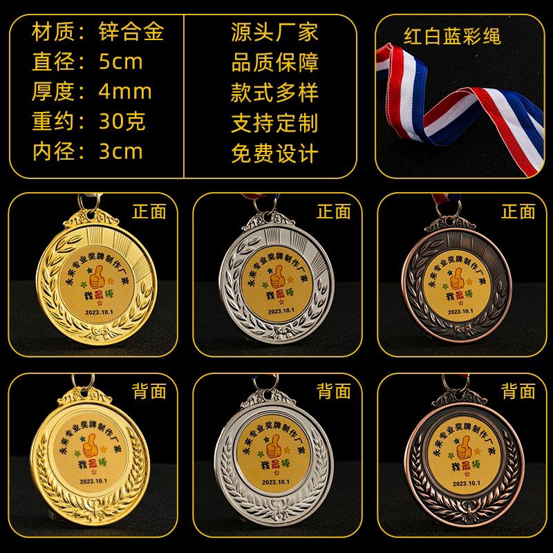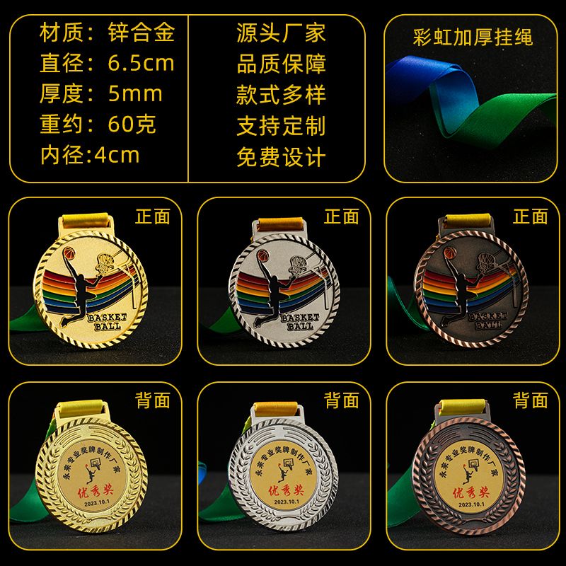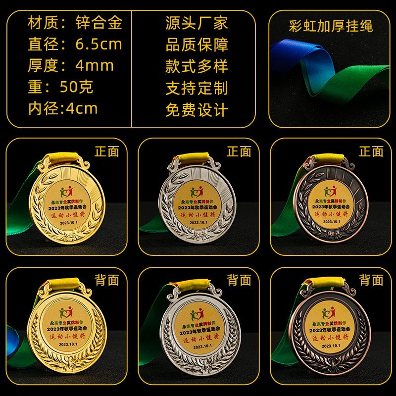 金属奖牌定制定做学校运动会挂牌冠军篮球儿童幼儿园金银铜牌奖章