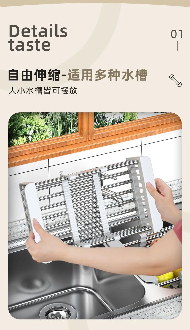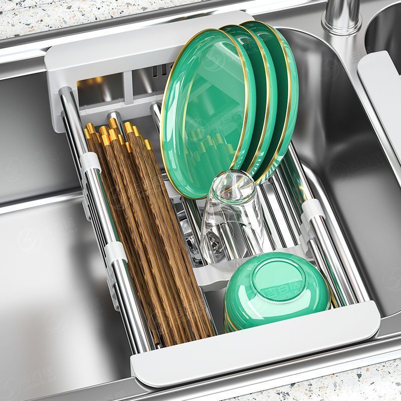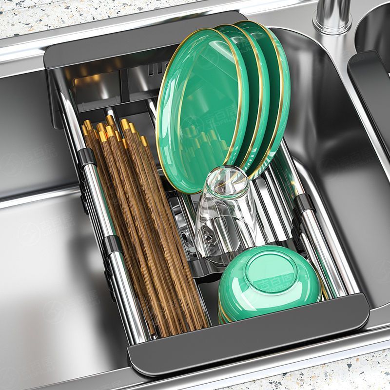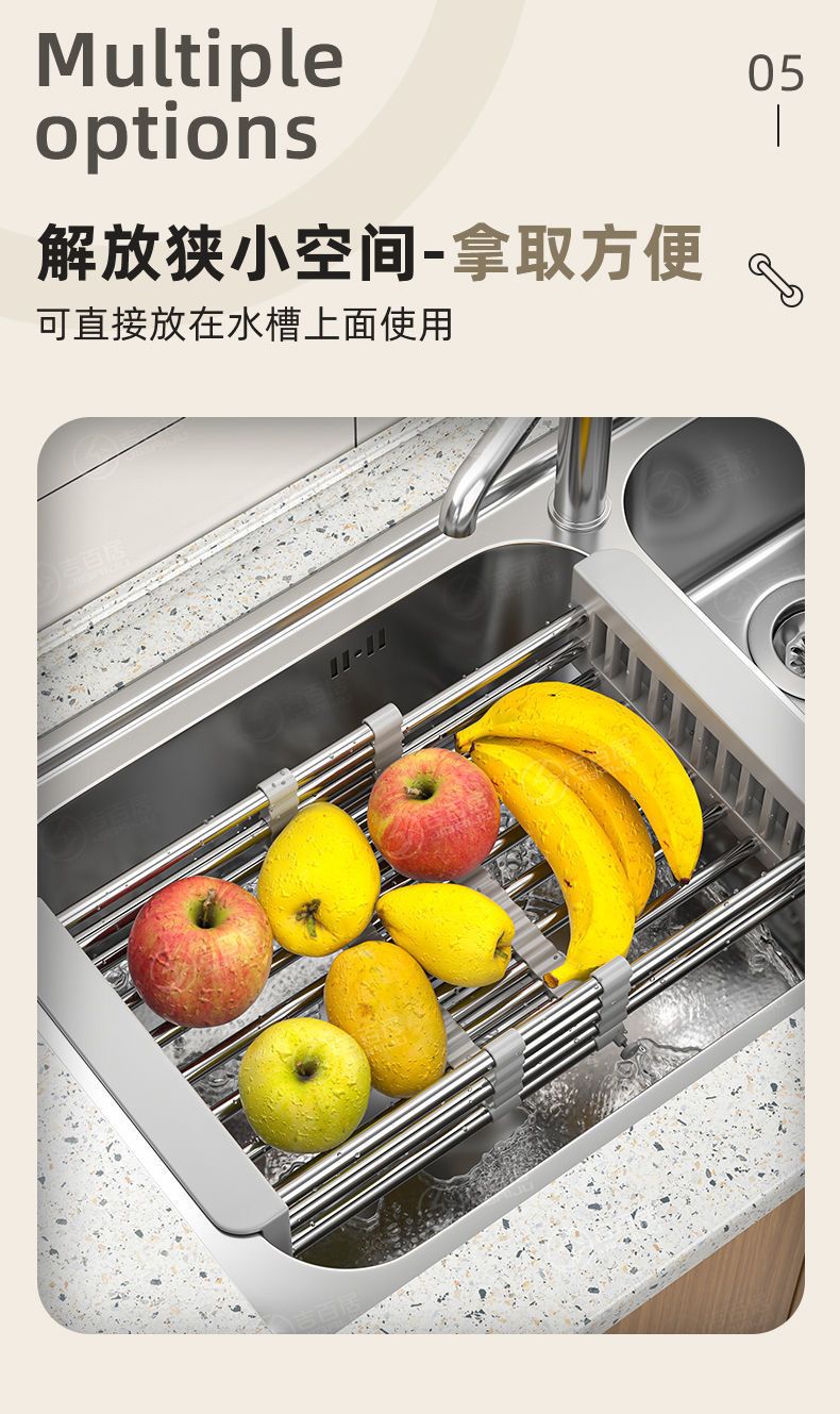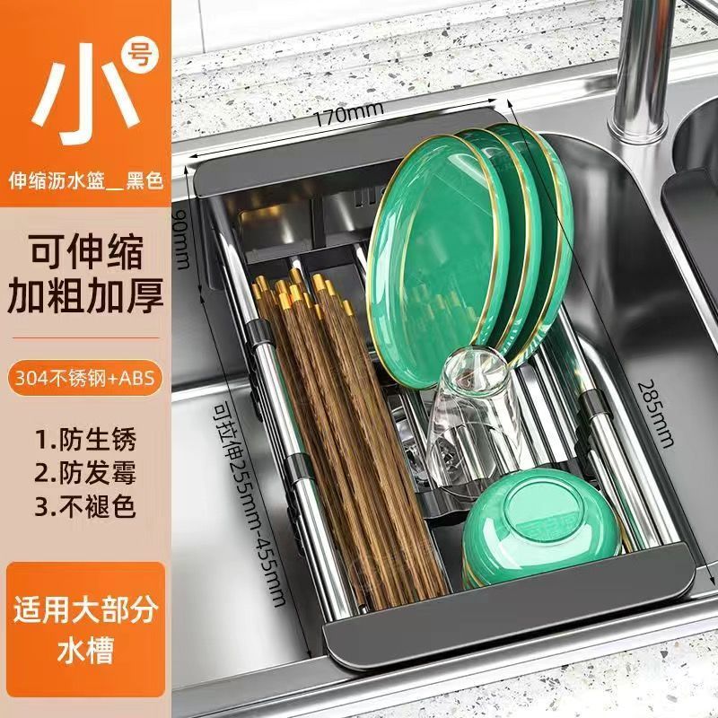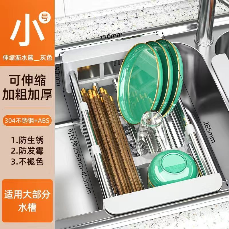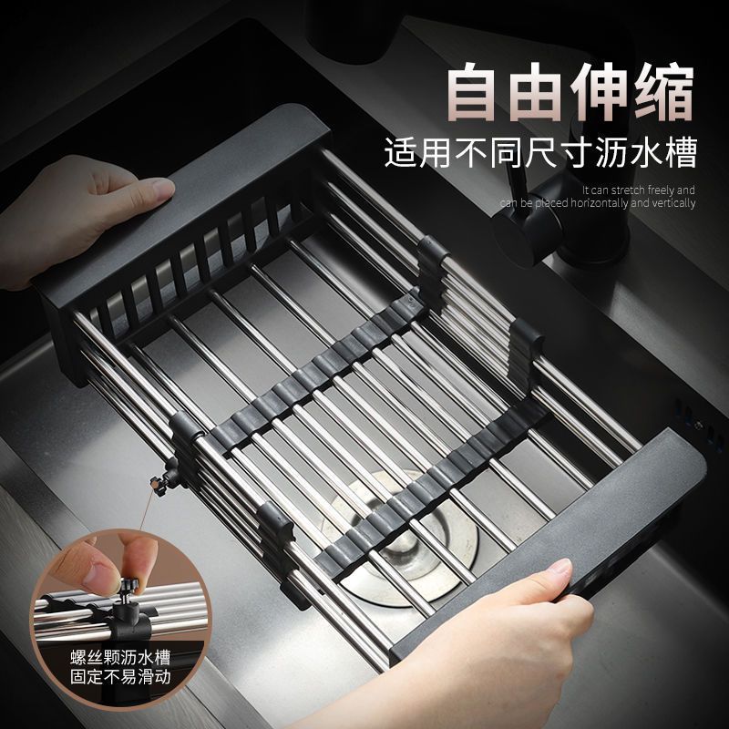 家用304不锈钢可伸缩沥水篮洗碗池水槽置物架子洗菜盆碗盘沥水筐