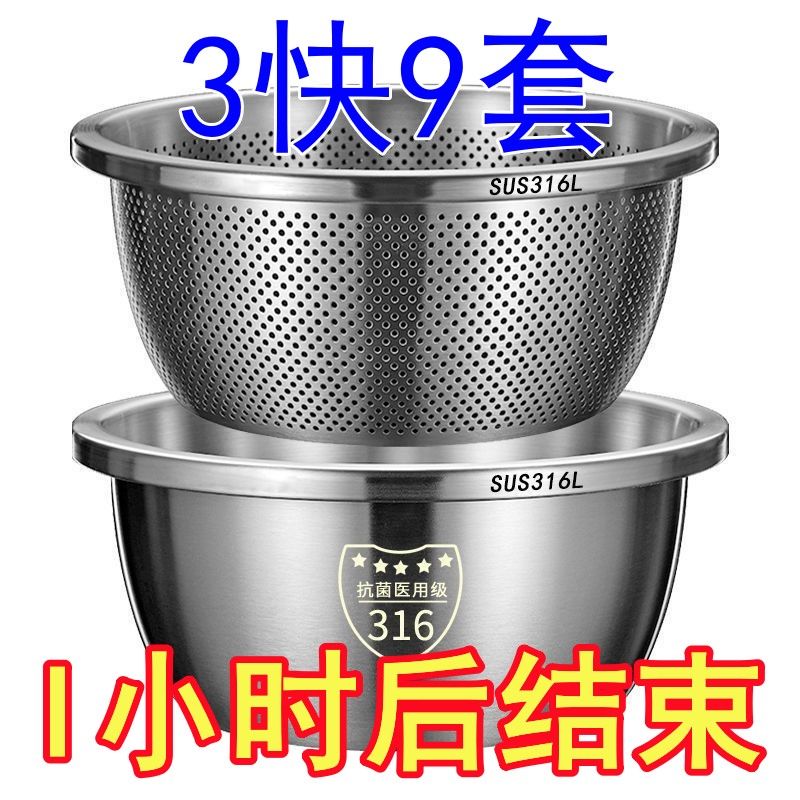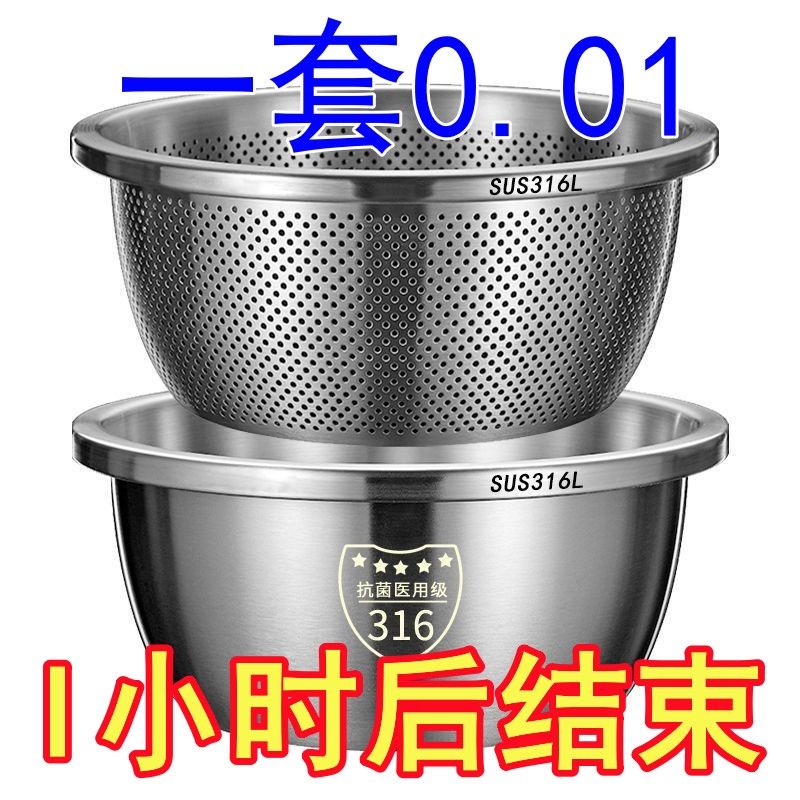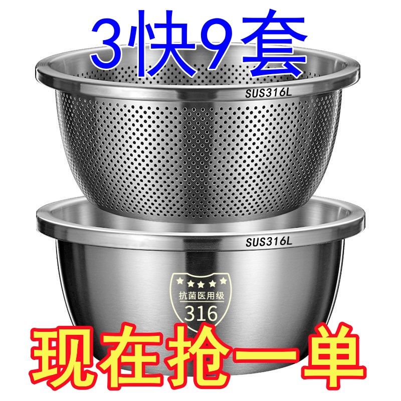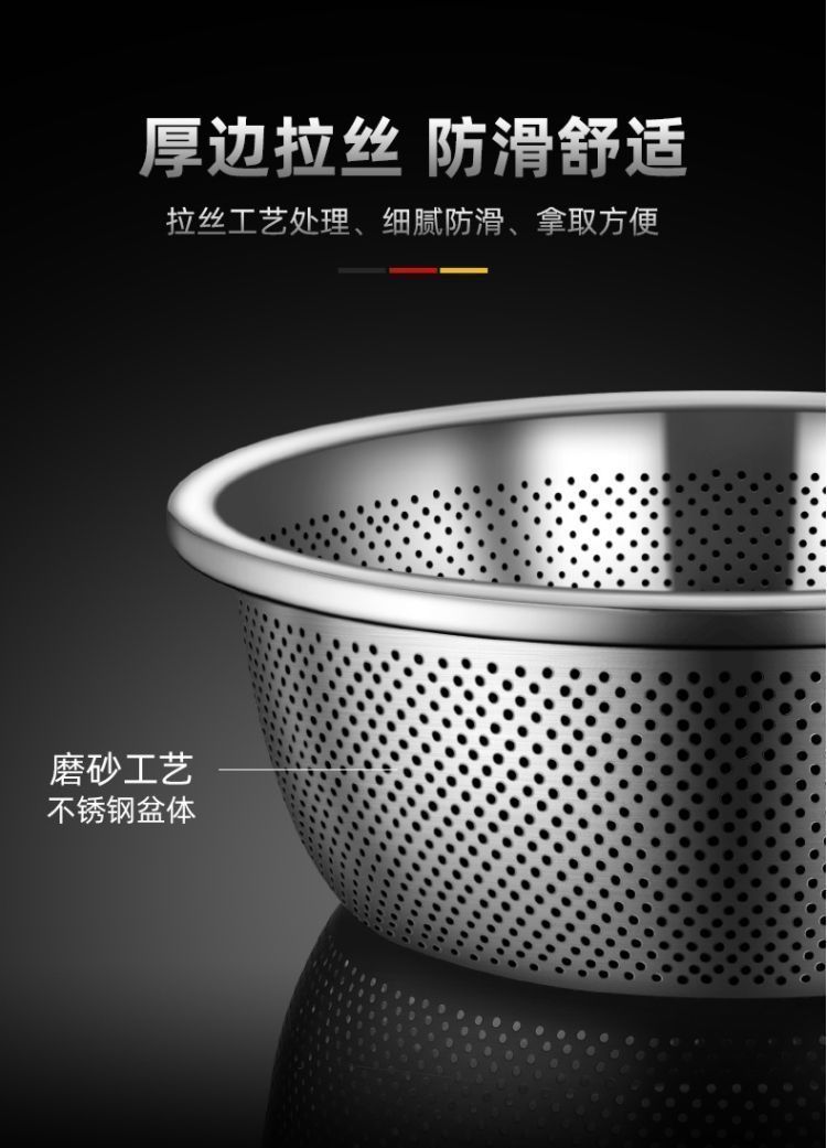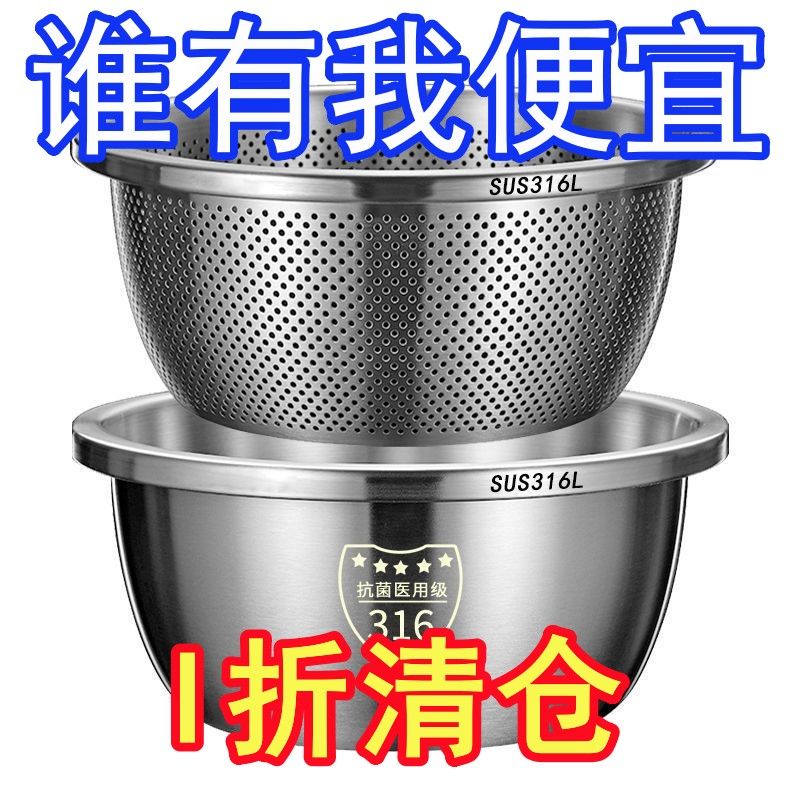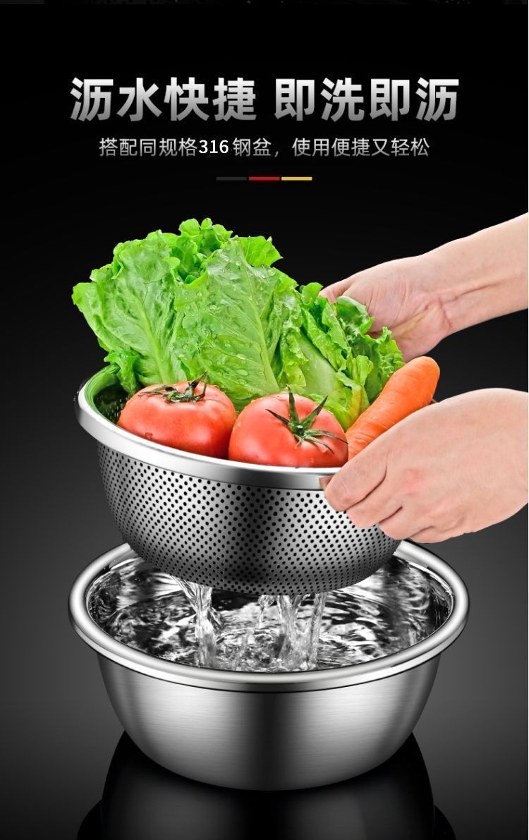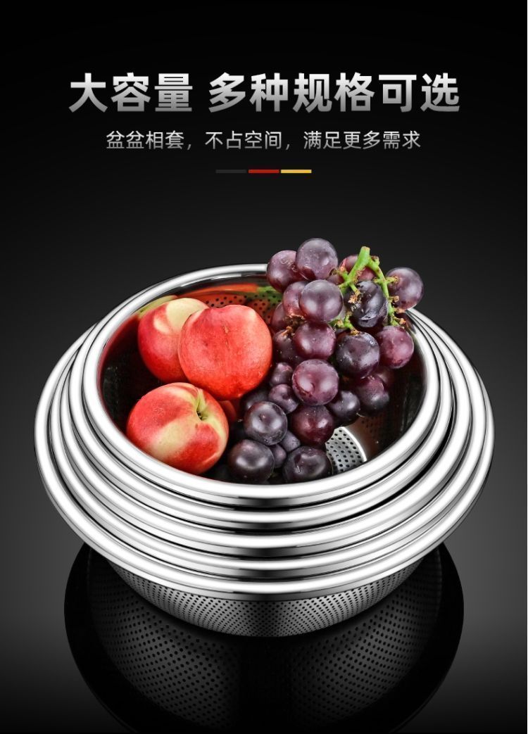 不锈钢沥水篮洗菜盆厨房家用洗水果洗菜篮淘米盆筛加厚和面盆