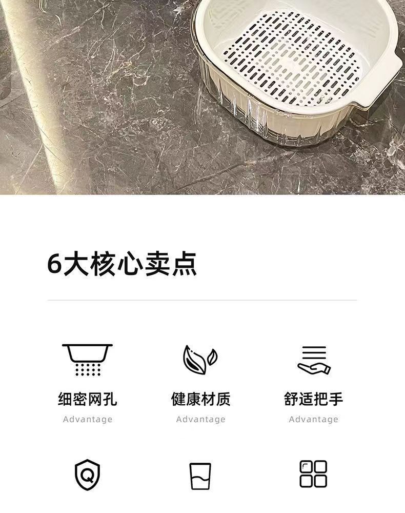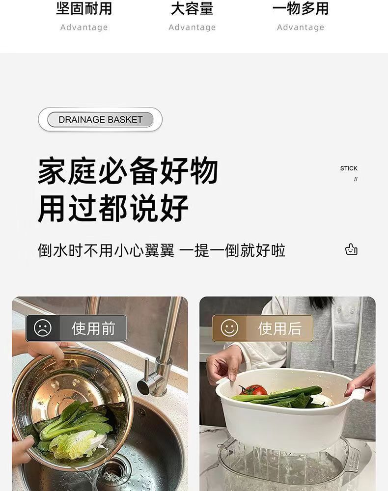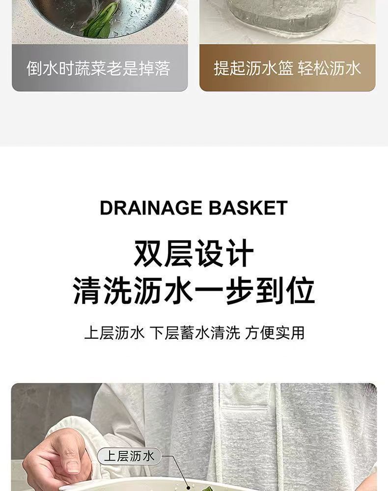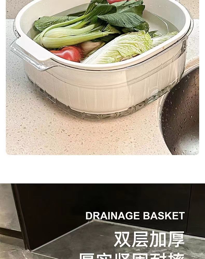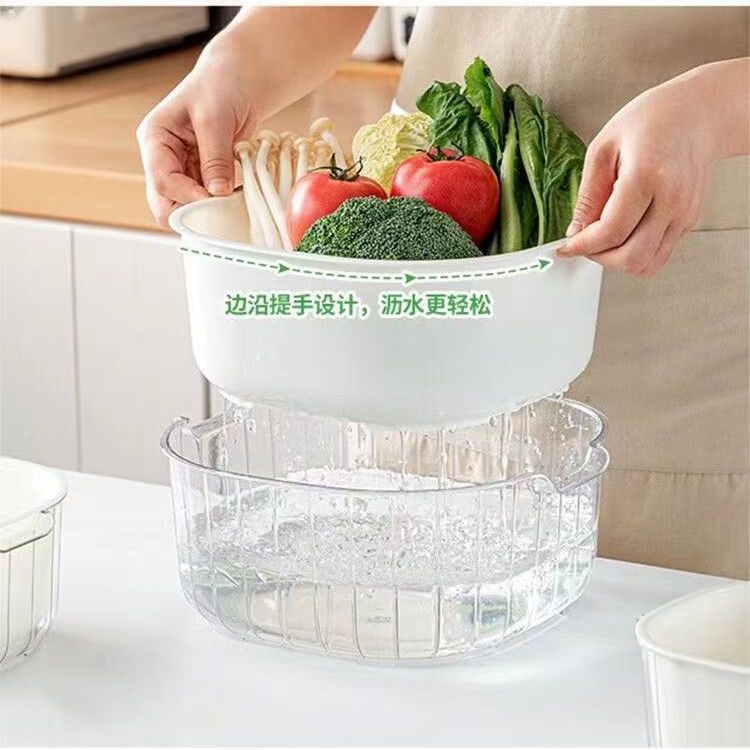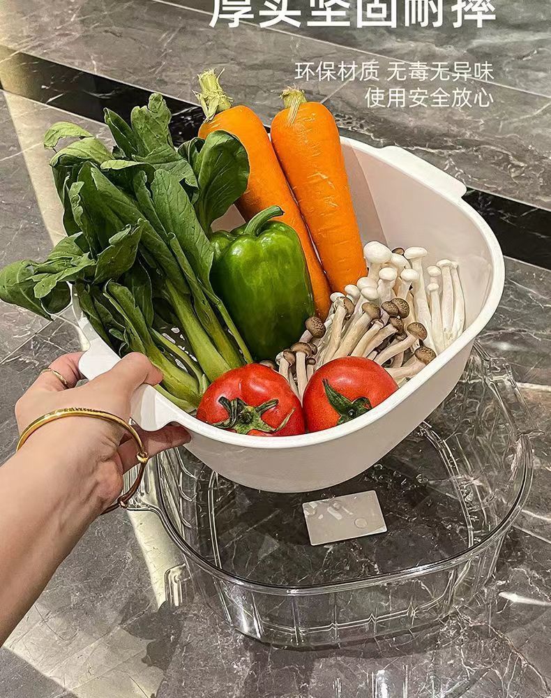 新款双层洗菜沥水篮家用客厅塑料果蔬厨房加厚滤水菜篓洗菜篮