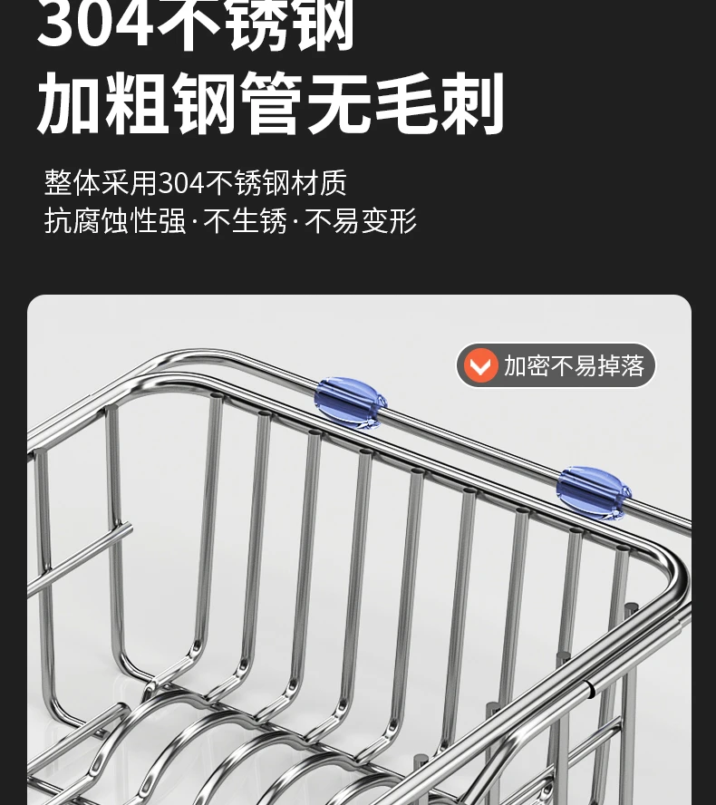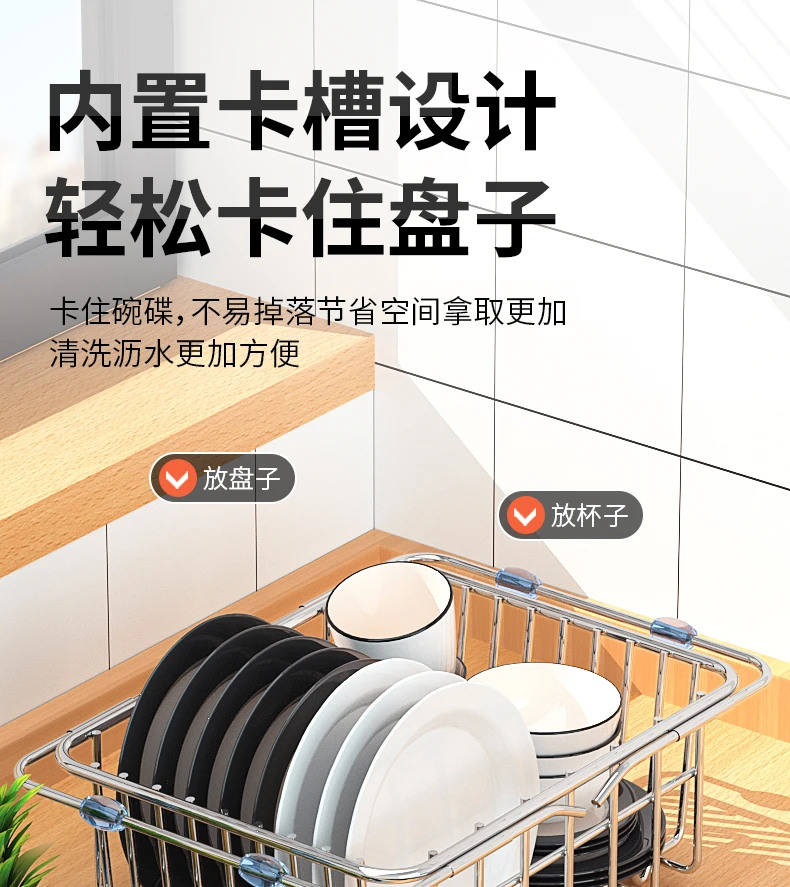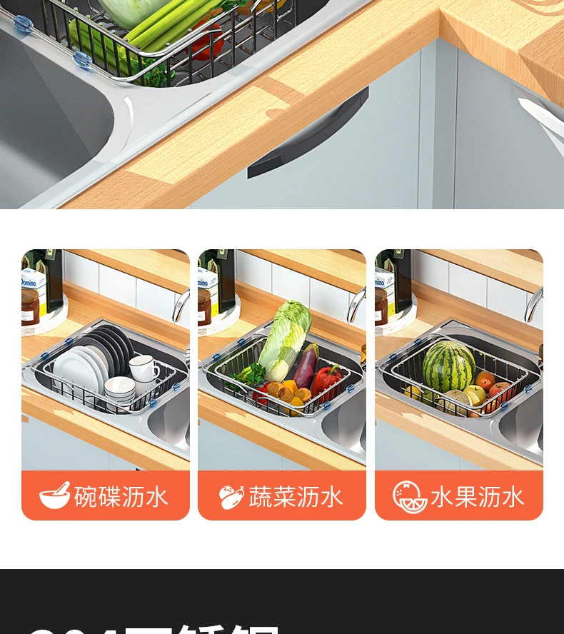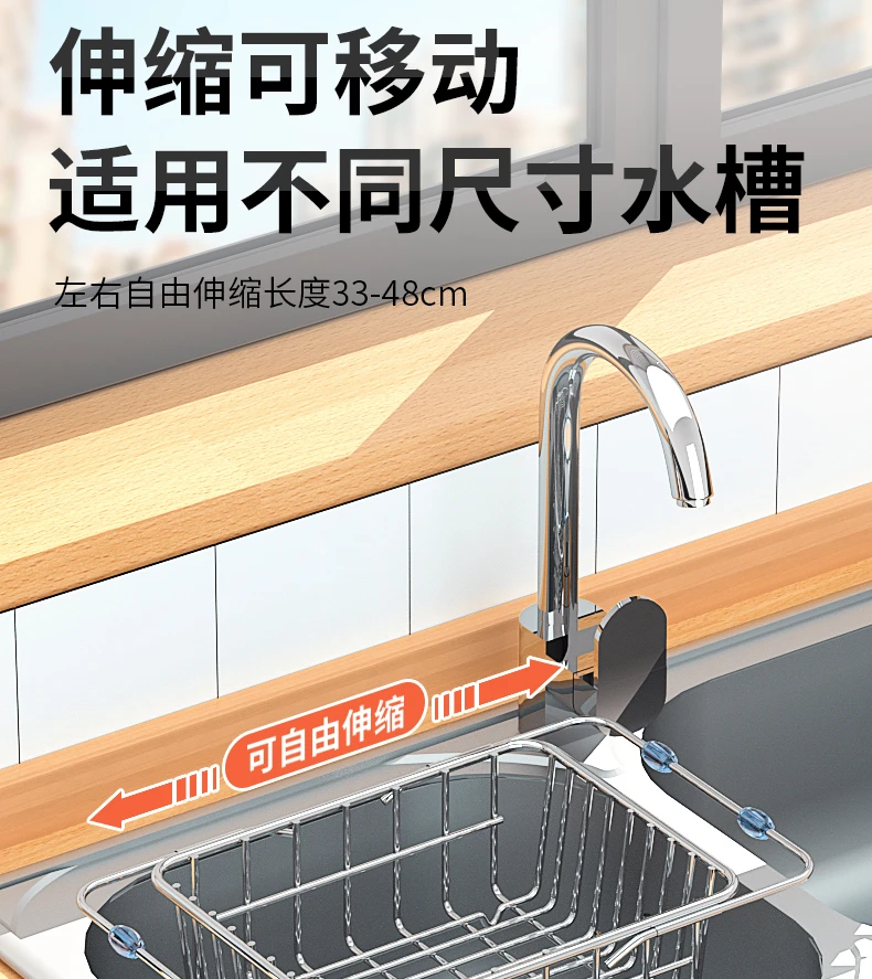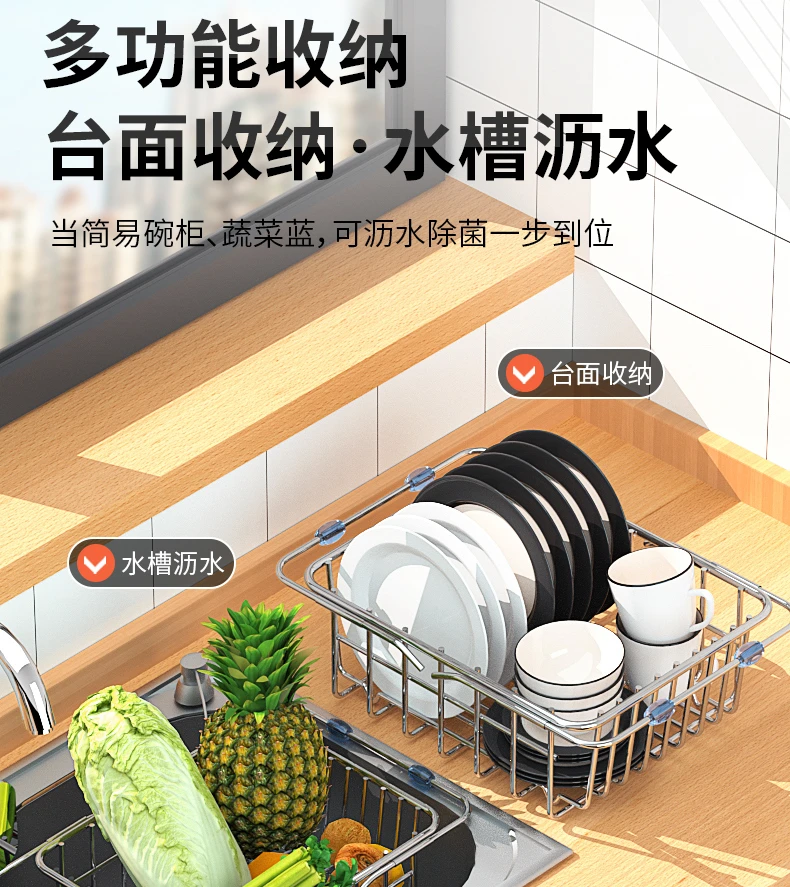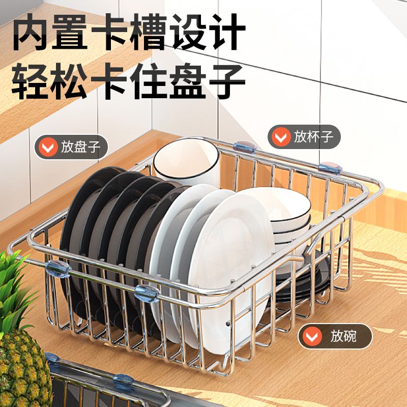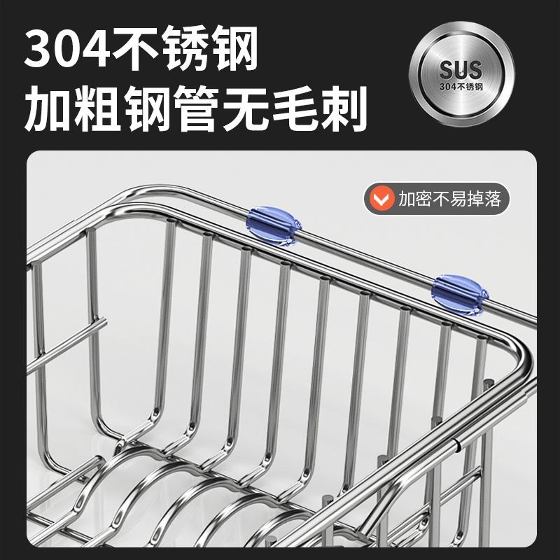 304不锈钢沥水篮可伸缩厨房水槽沥水不锈钢洗菜伸缩收纳置物架