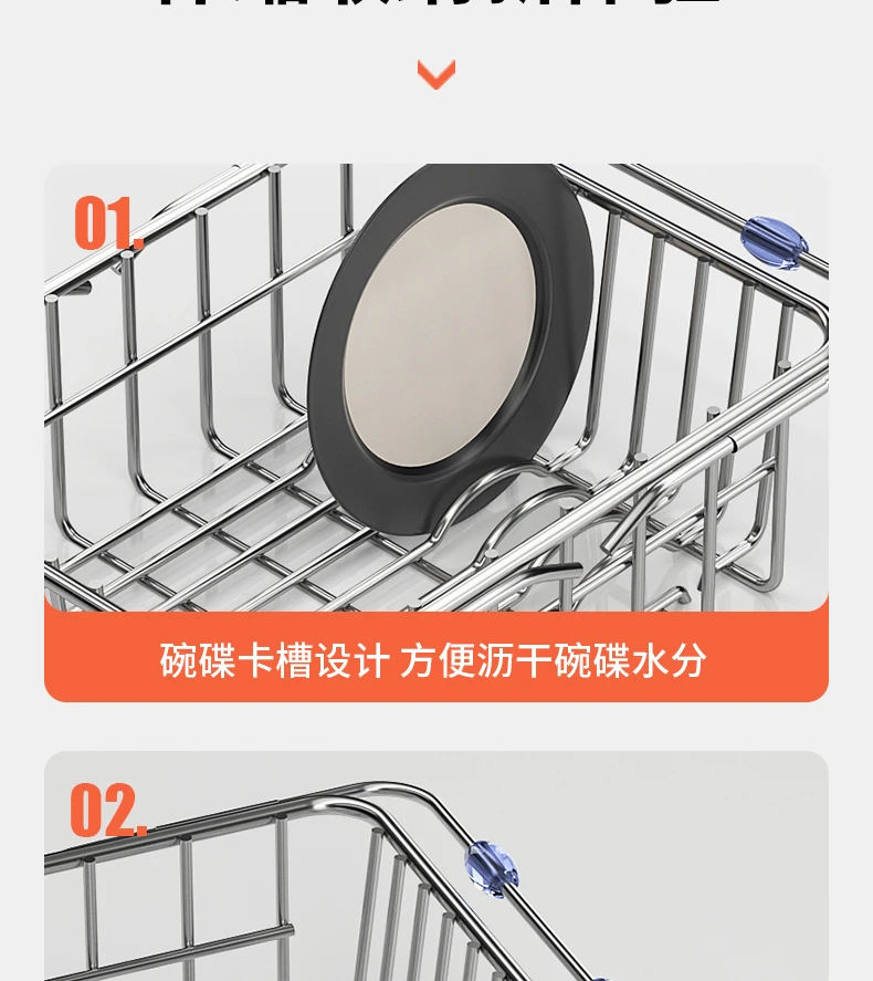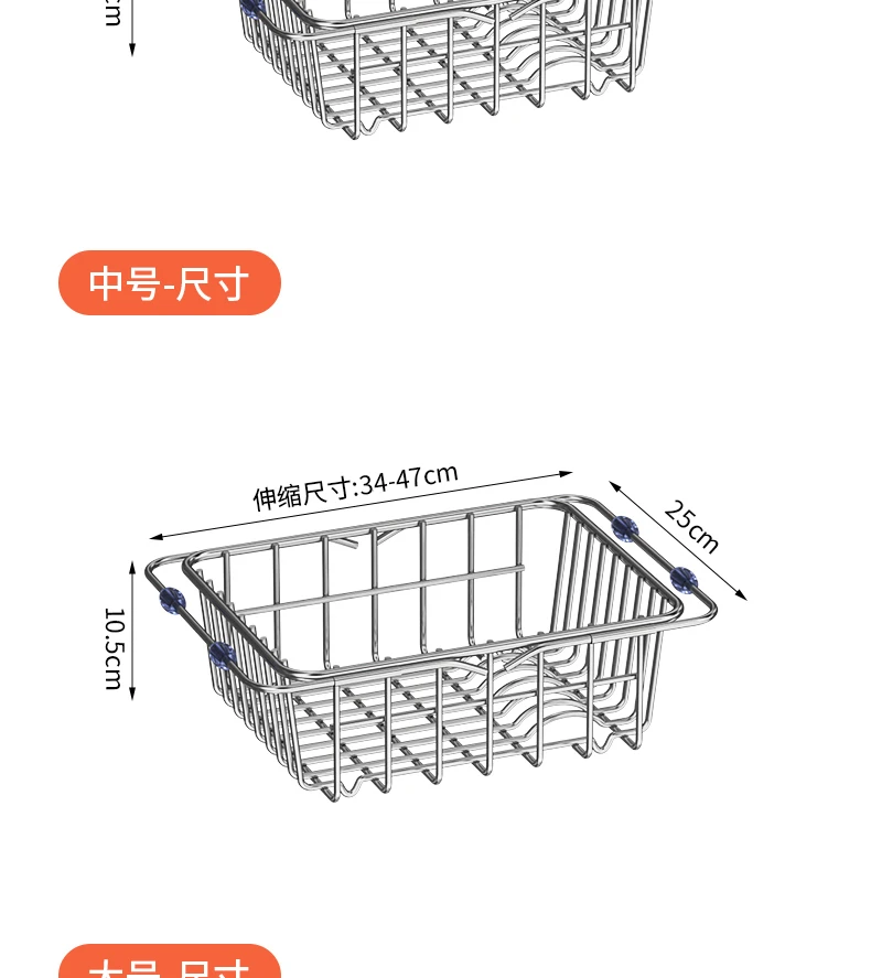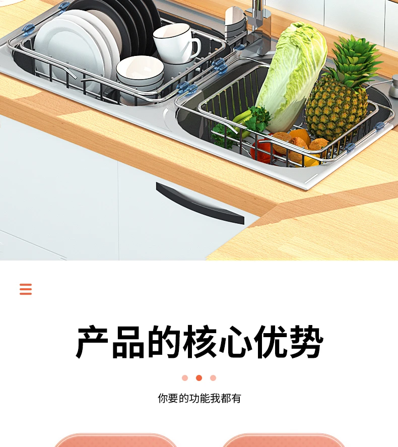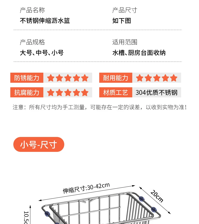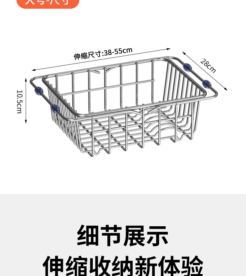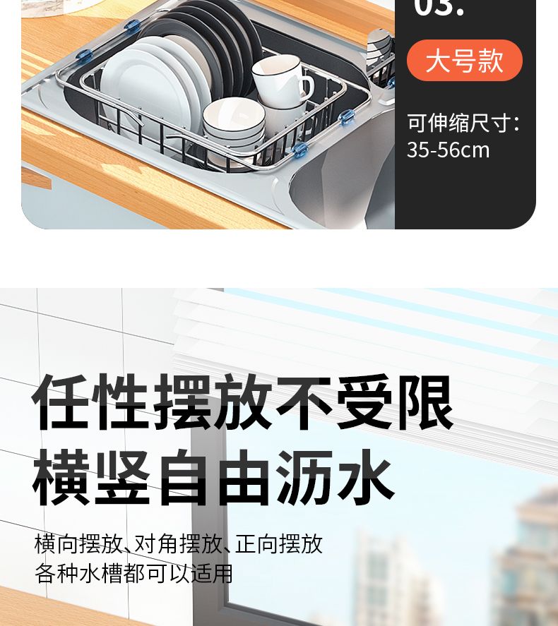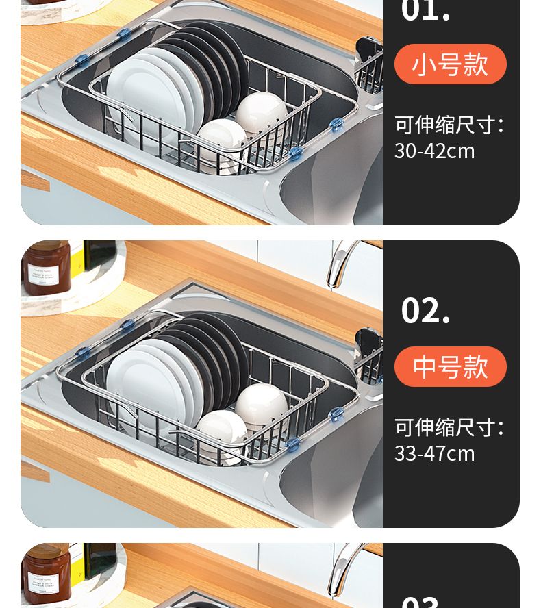 304不锈钢沥水篮可伸缩厨房水槽沥水不锈钢洗菜伸缩收纳置物架