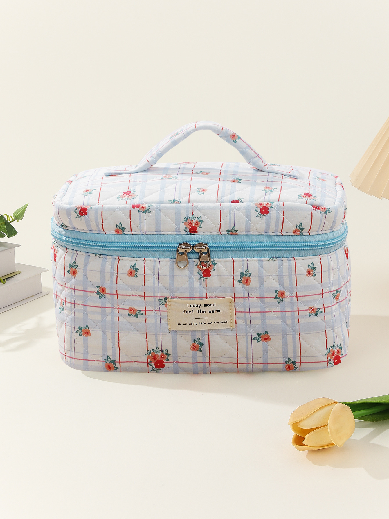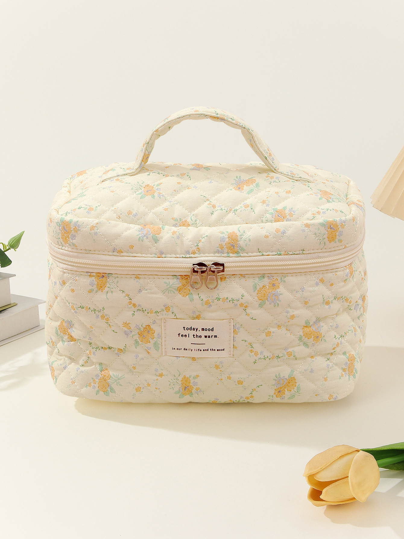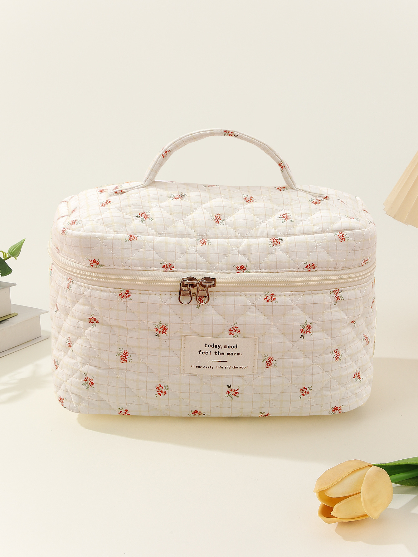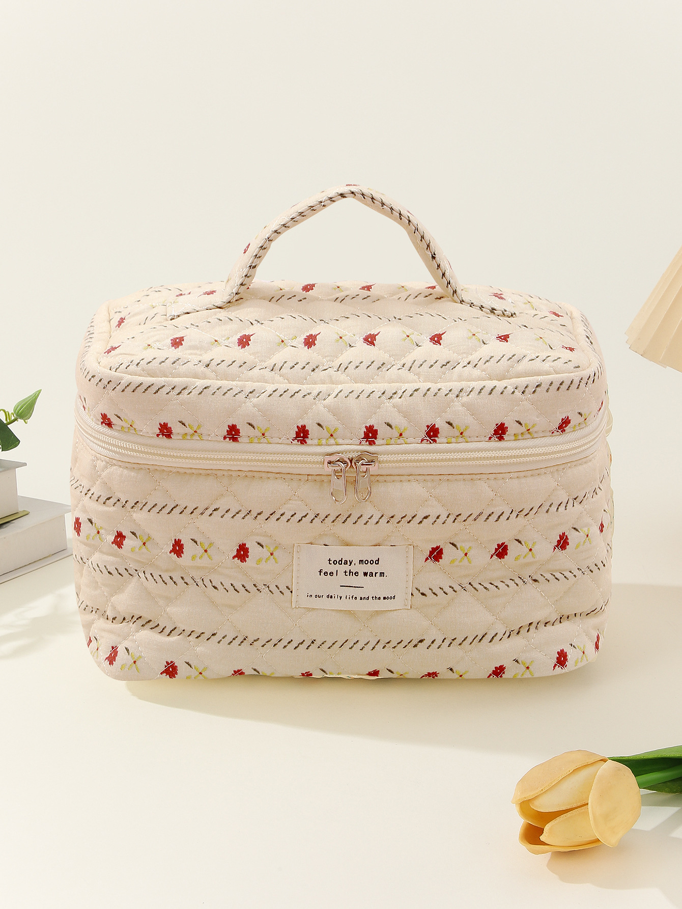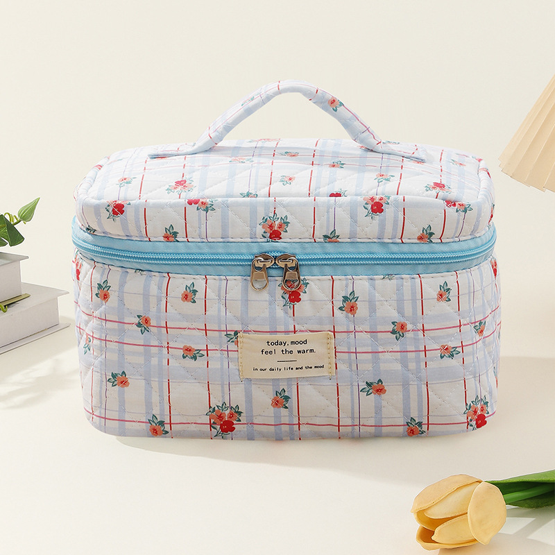 贝格箱包厂手提大容量化妆包小碎花收纳便携绗缝棉布可爱花朵ins