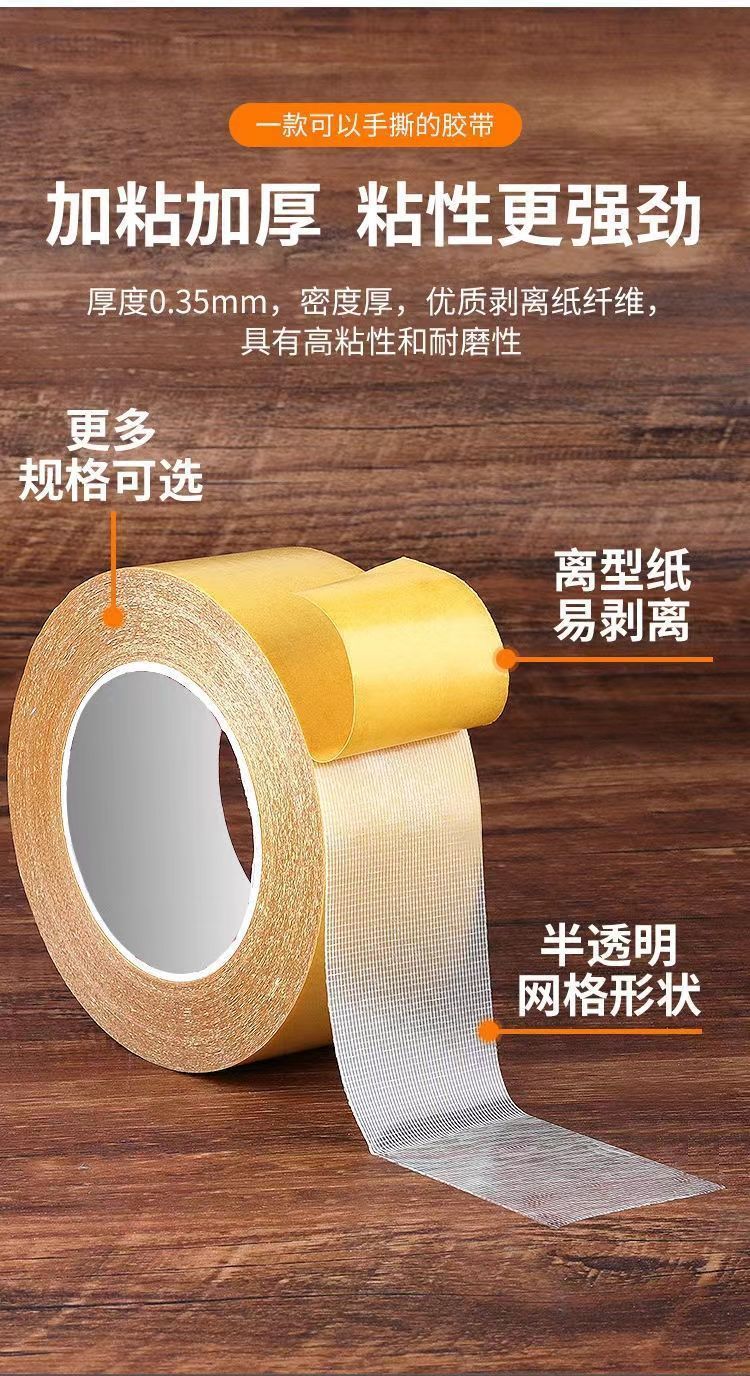万能双面胶高粘度撕下无痕迹布基网格双面胶地毯固定透明双面粘胶