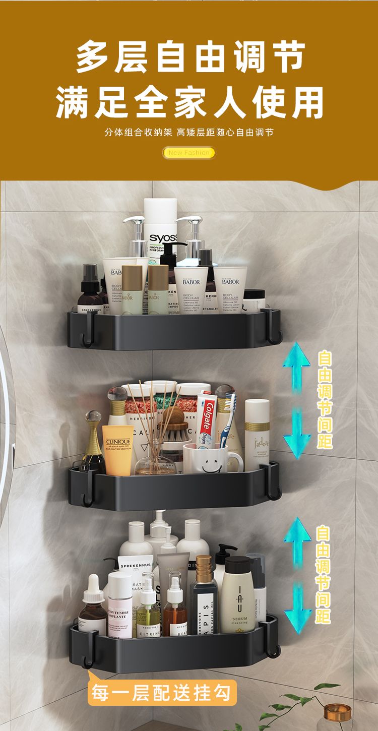免打孔浴室三角架卫生间洗漱台壁挂置物架厕所洗手间厨房收纳角架
