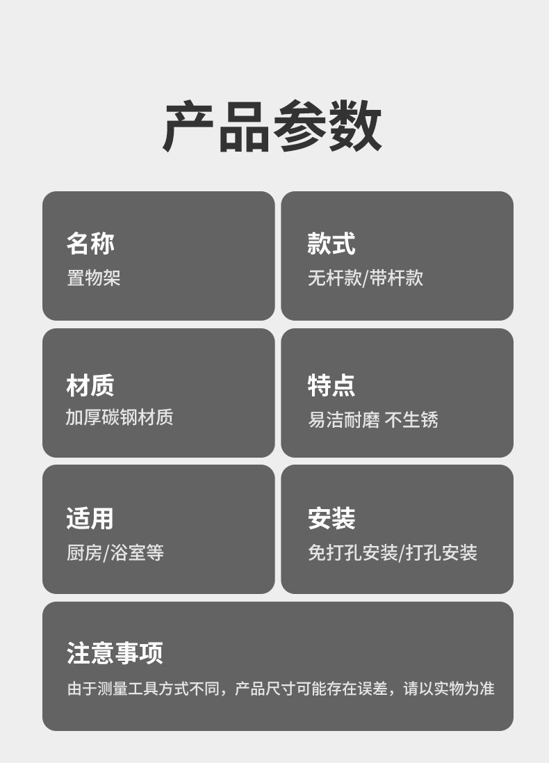 加厚加宽卫生间置物架挂壁式免打孔置物架厨房卫生间浴室收纳神器