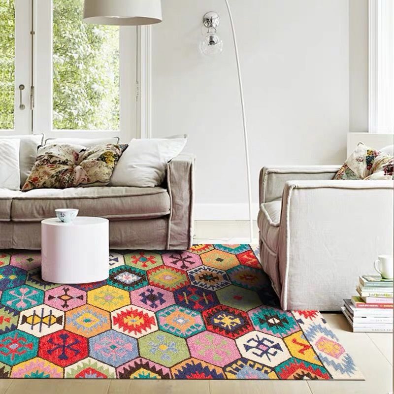 北欧民族风复古地毯卧室客厅沙发茶几垫波西米亚摩洛哥家用床边毯