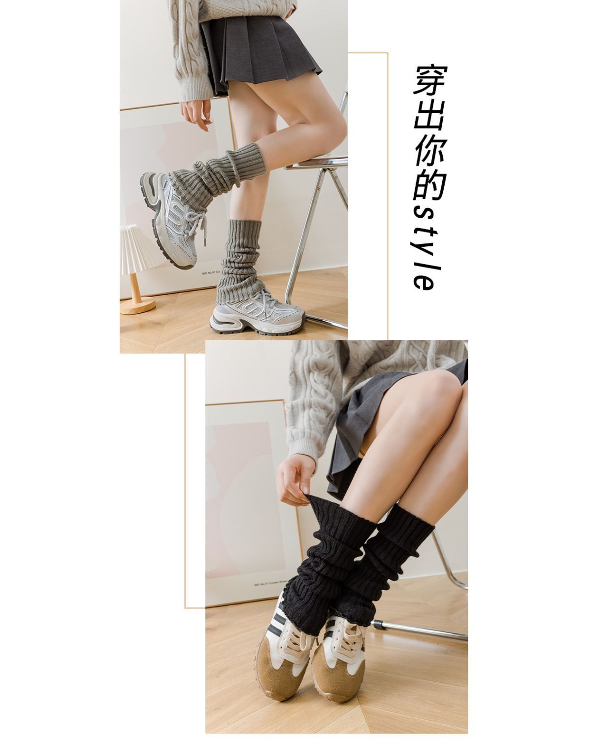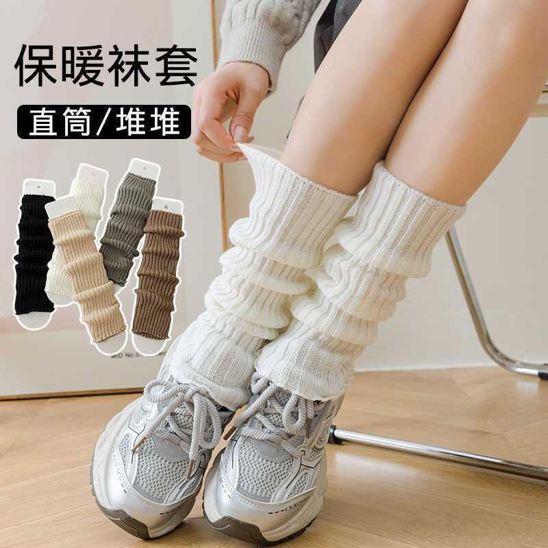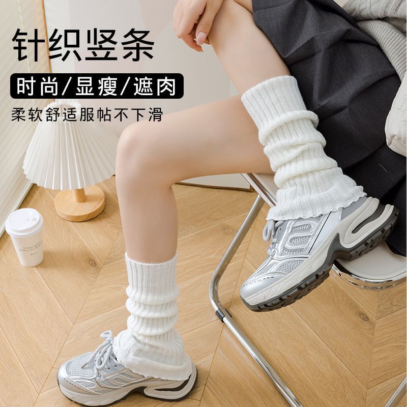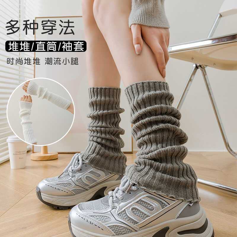 Lolita小腿袜套堆堆腿套秋冬加厚条纹百搭粗针毛线腿套保暖潮流款