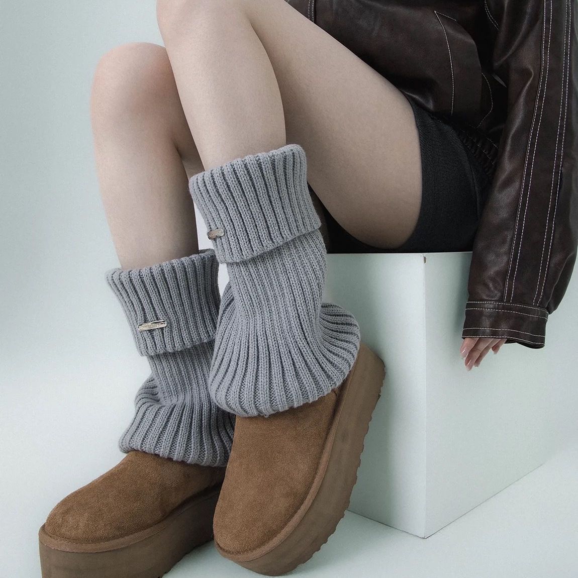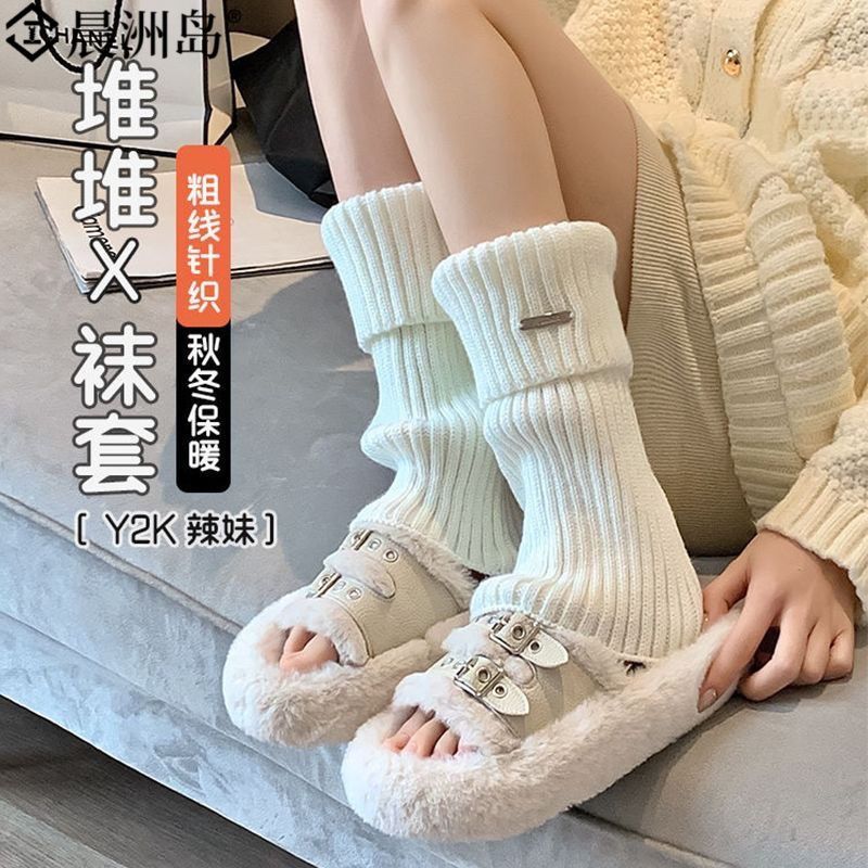 堆堆袜子女秋冬高筒网红小腿袜洛丽塔jk腿套羊毛袜防寒布针织袜套