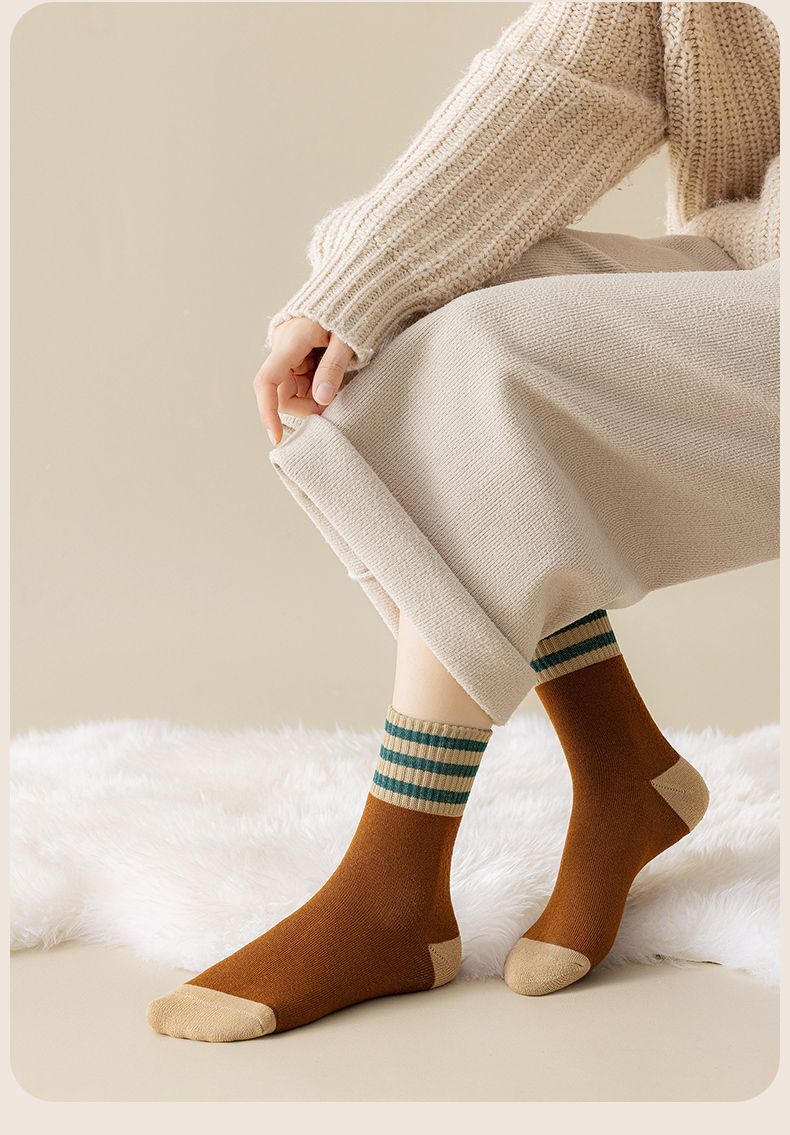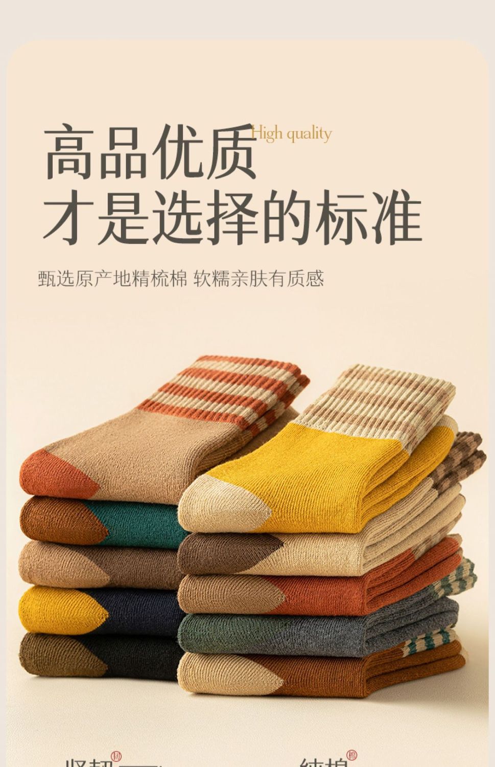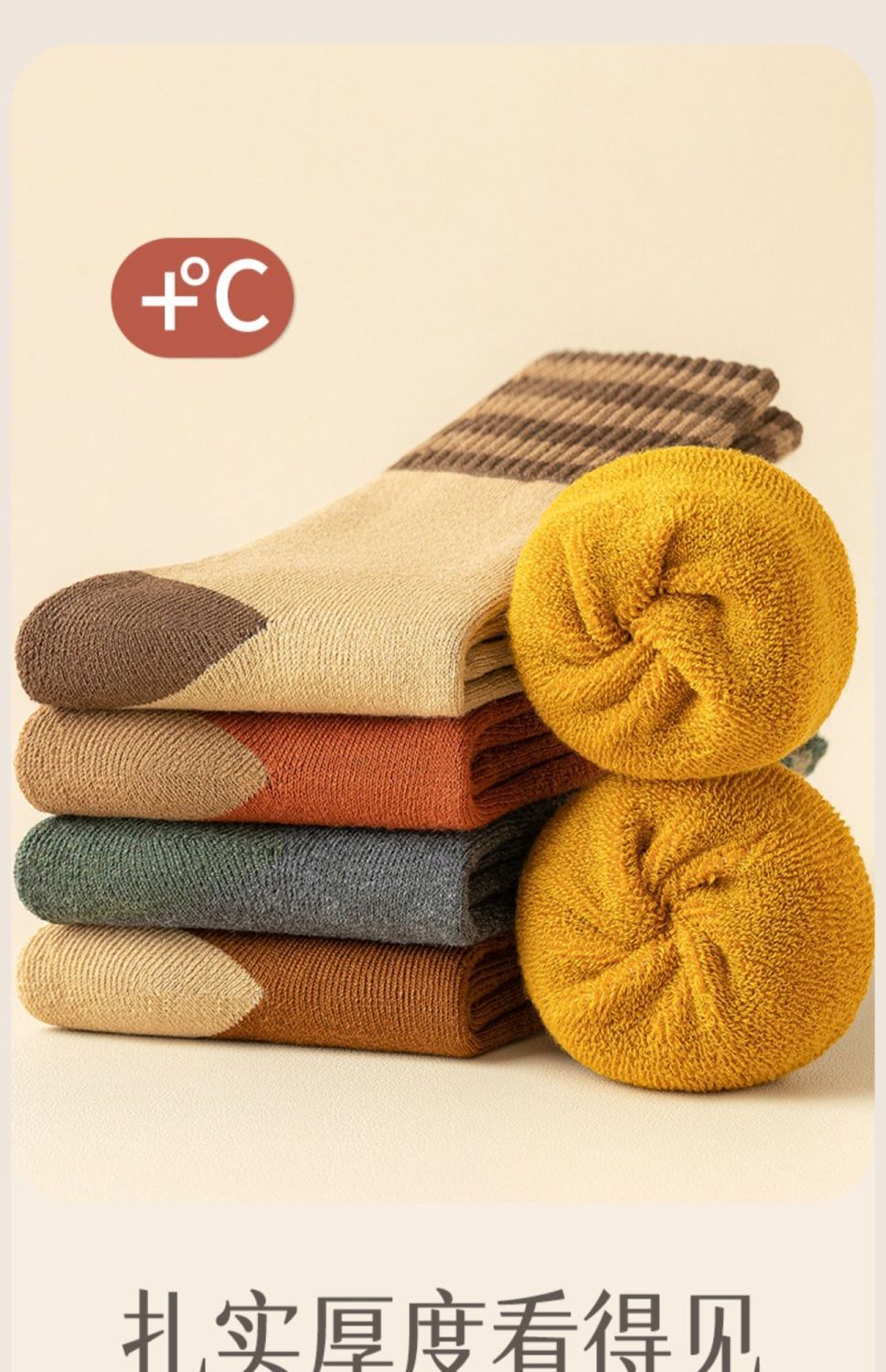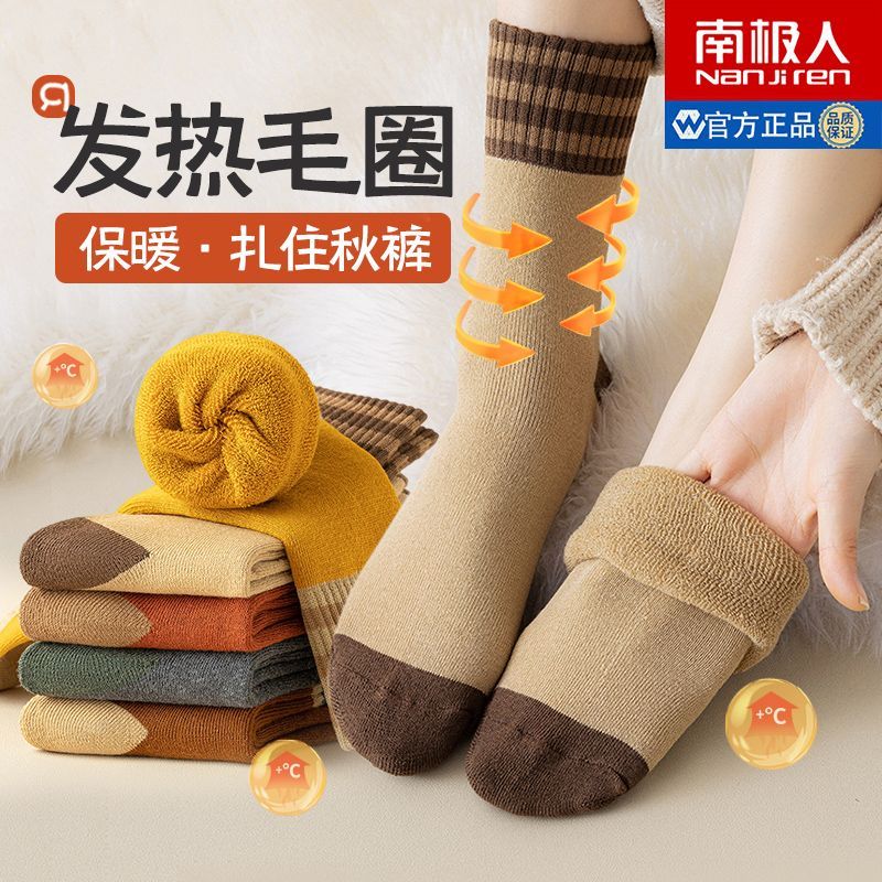 南极人加厚纯棉袜子女冬天加绒保暖中筒袜秋冬季厚袜子毛圈雪地袜