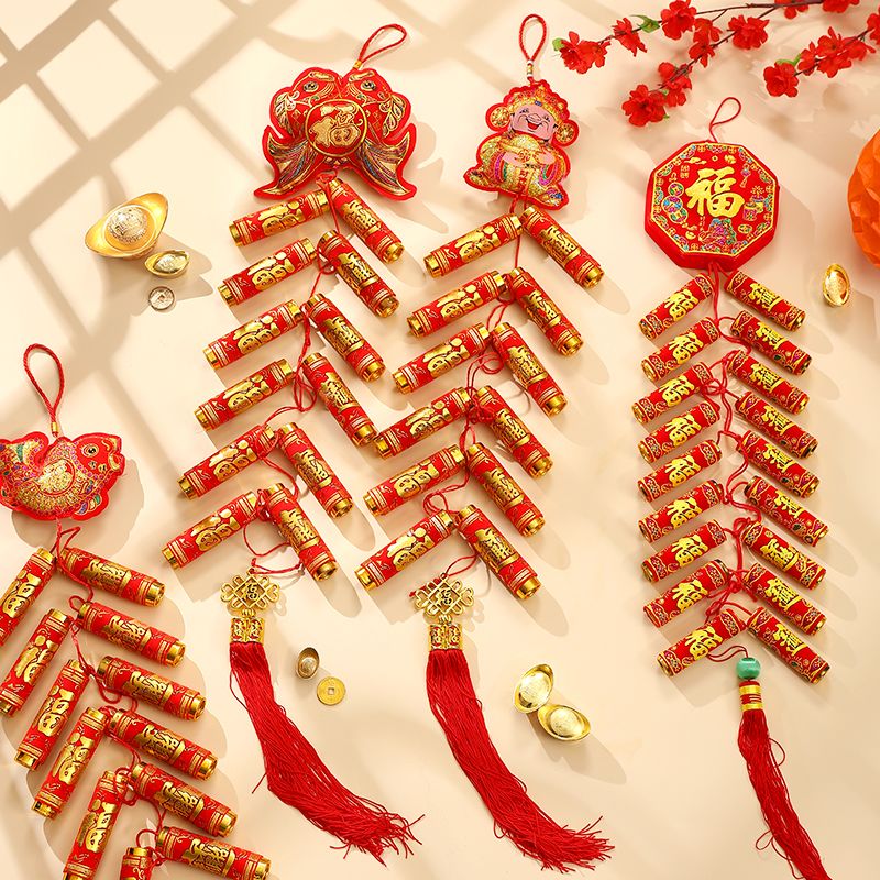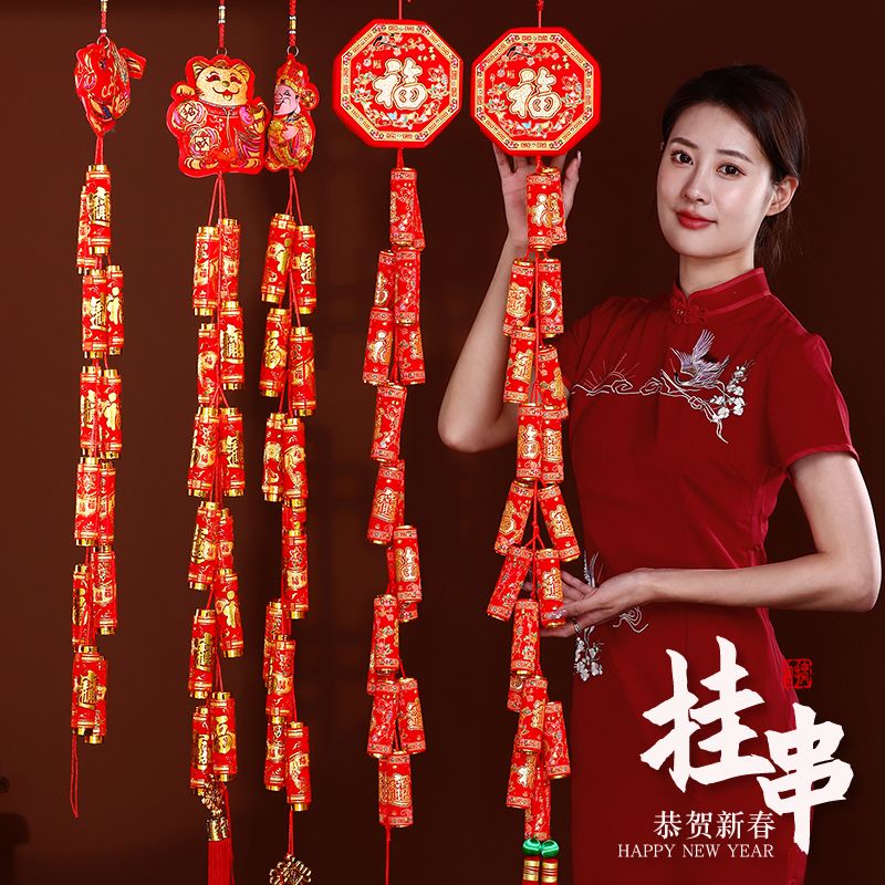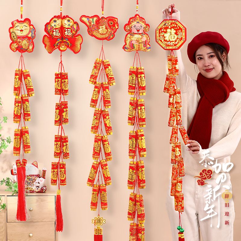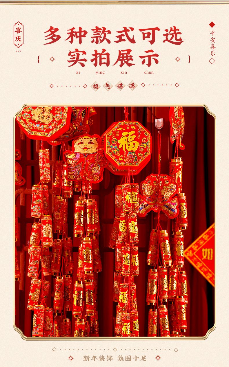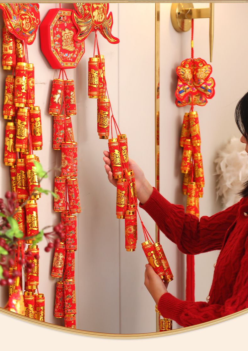 新年装饰2025过年春节喜庆仿真鞭炮挂串电视墙福字挂件红鞭炮挂饰
