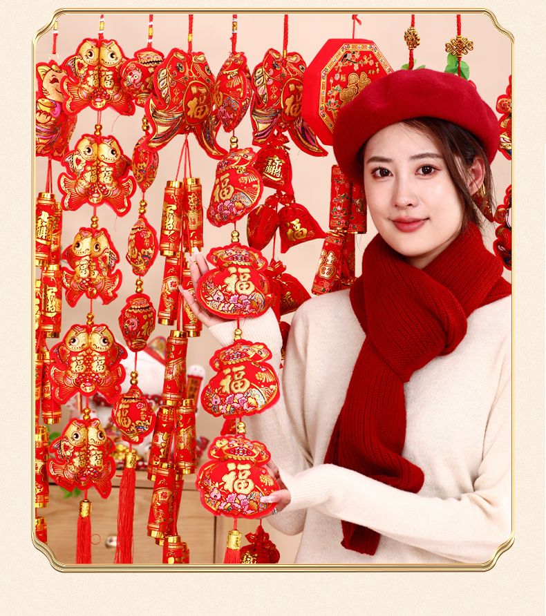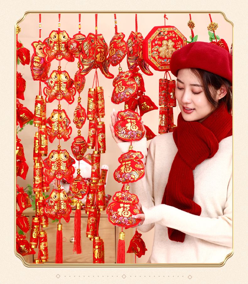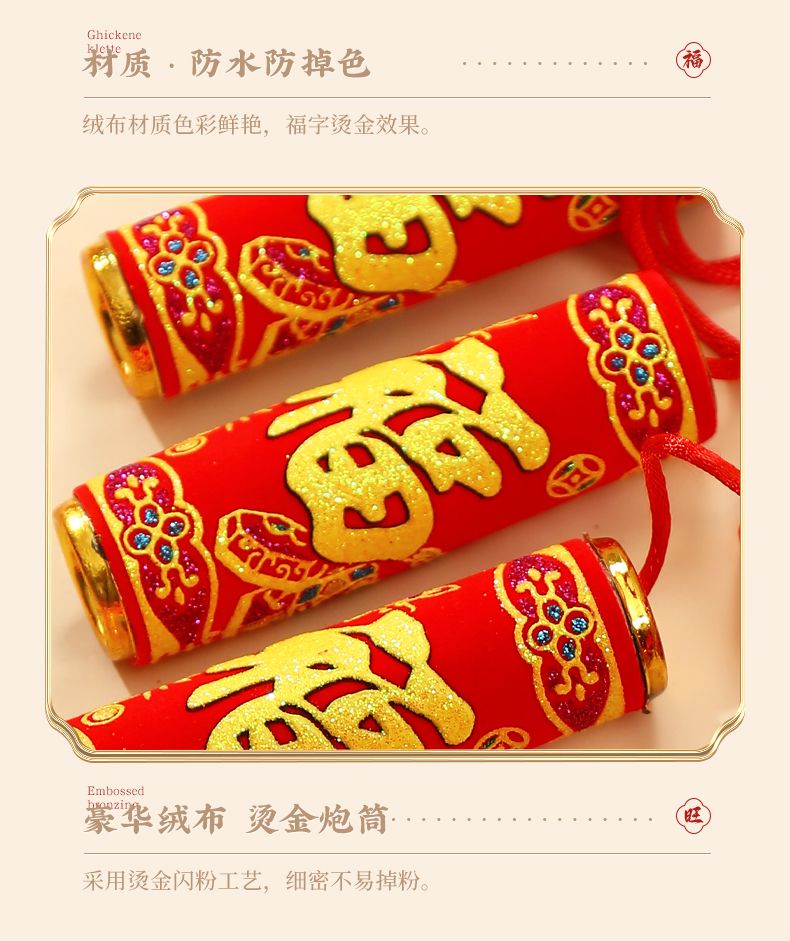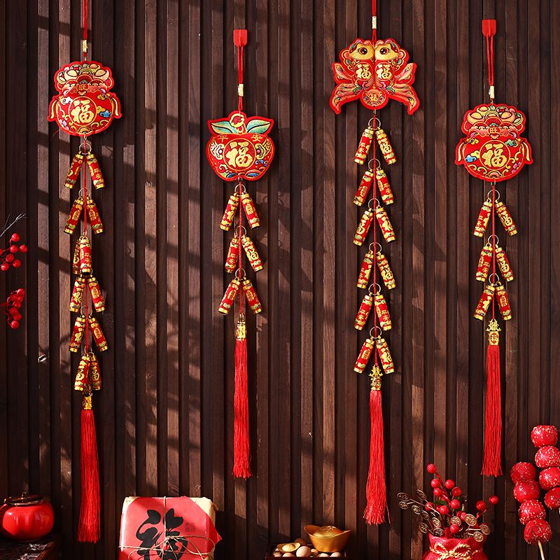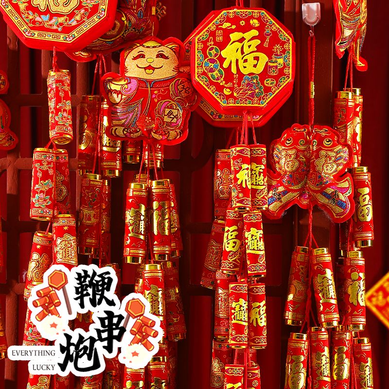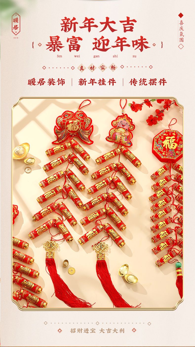 新年装饰2025过年春节喜庆仿真鞭炮挂串电视墙福字挂件红鞭炮挂饰