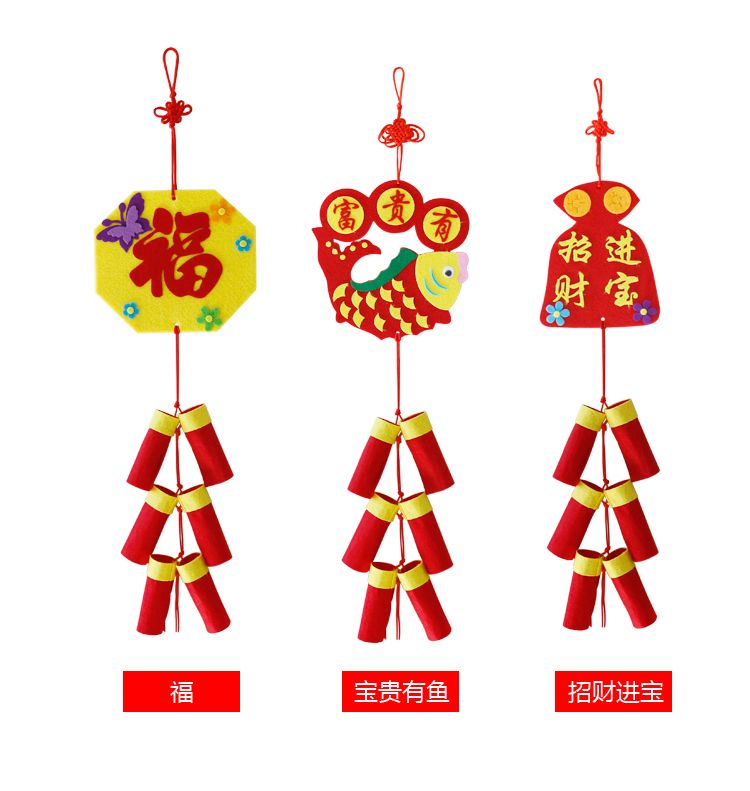新年不织布鞭炮挂饰儿童手工diy制作材料包中国风春节装饰布置