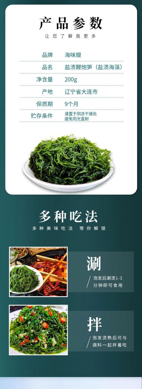 海味嫂鞭炮笋盐渍马尾藻200g涮锅长寿菜海带火锅食材串串麻辣烫