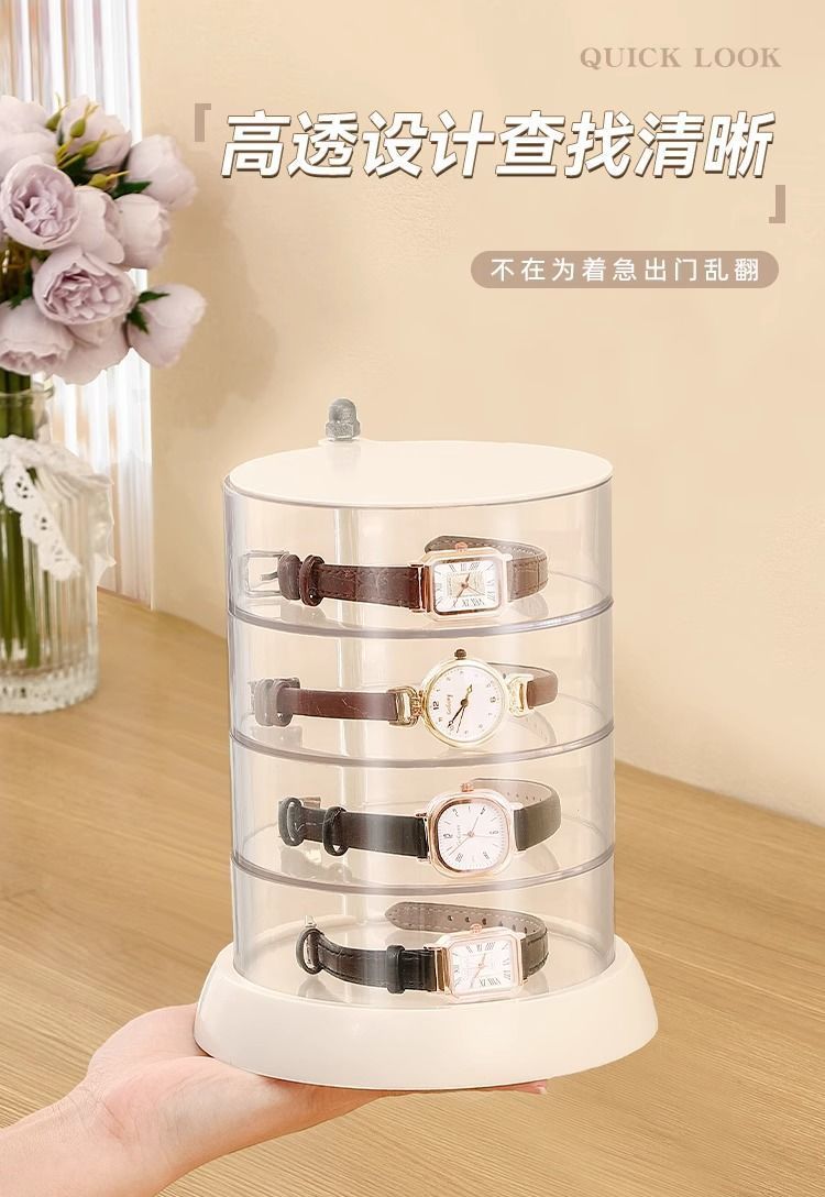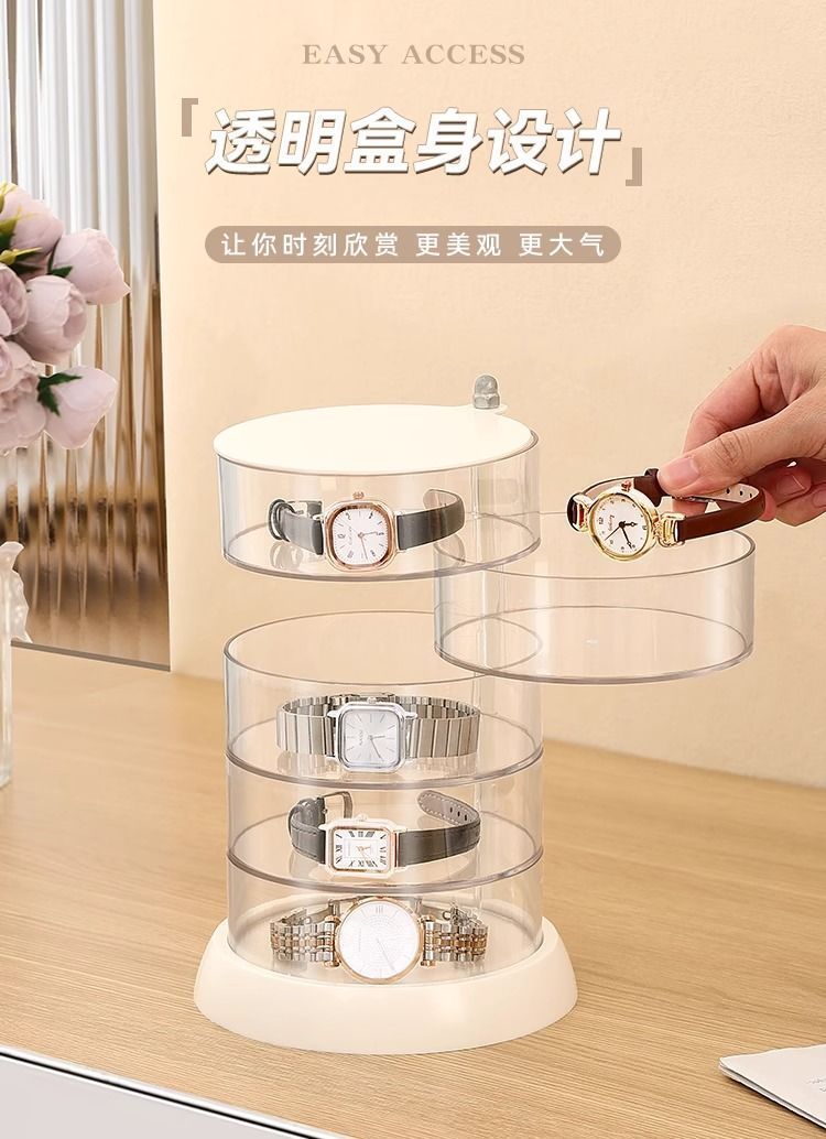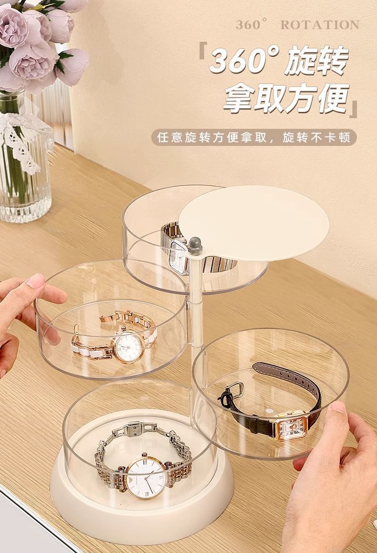 手表收纳盒旋转多层女腕表收藏陈列透明展示项链手串饰品首饰盒子