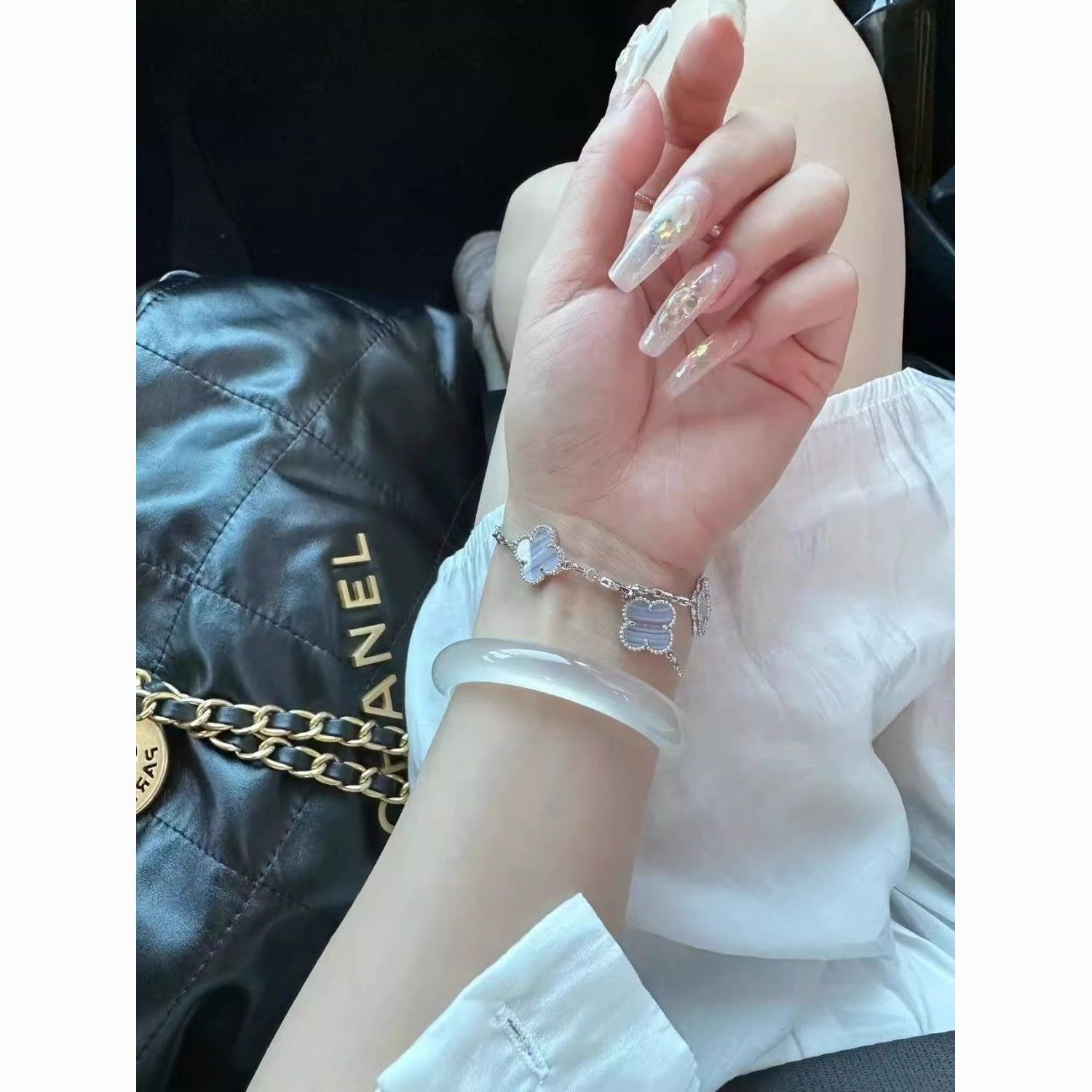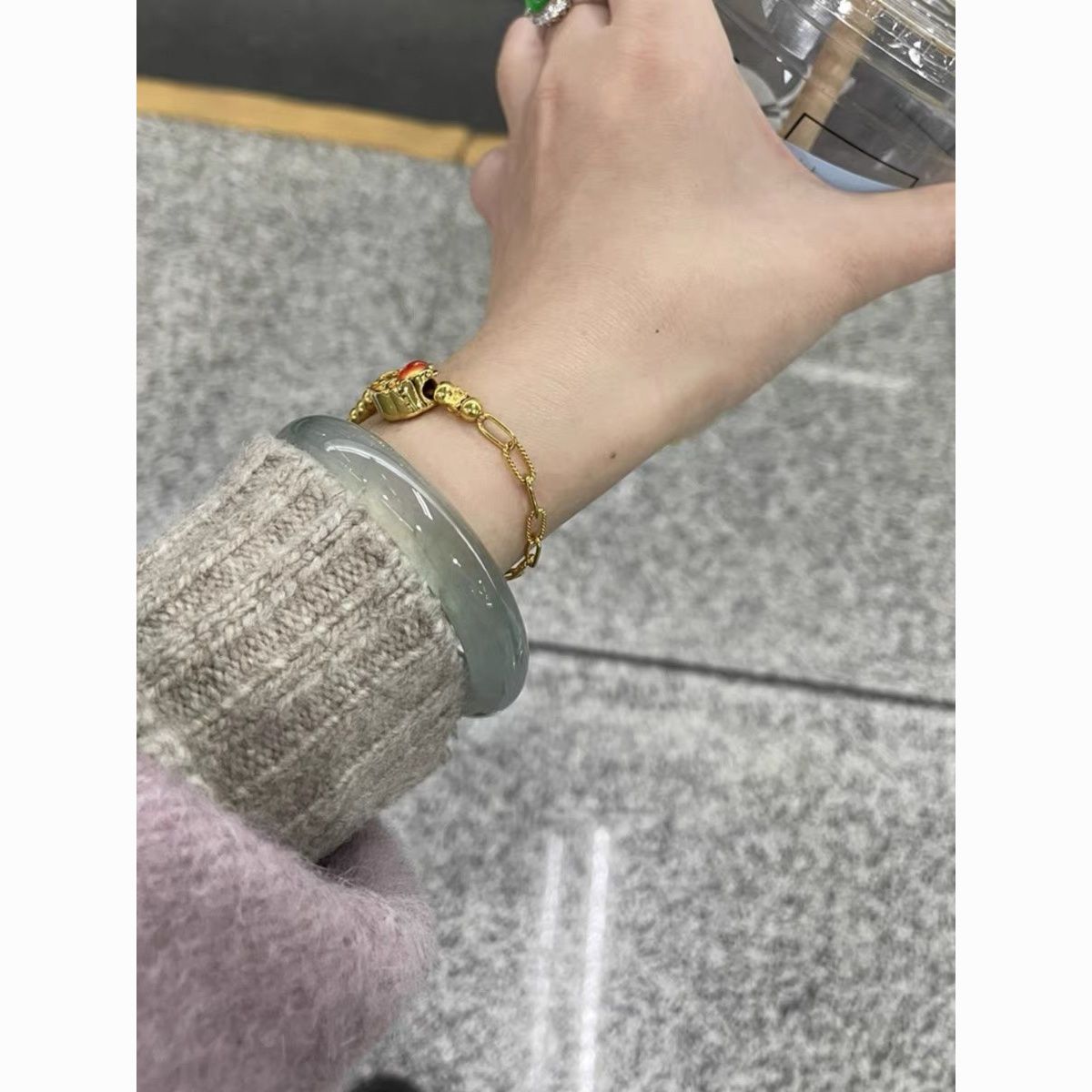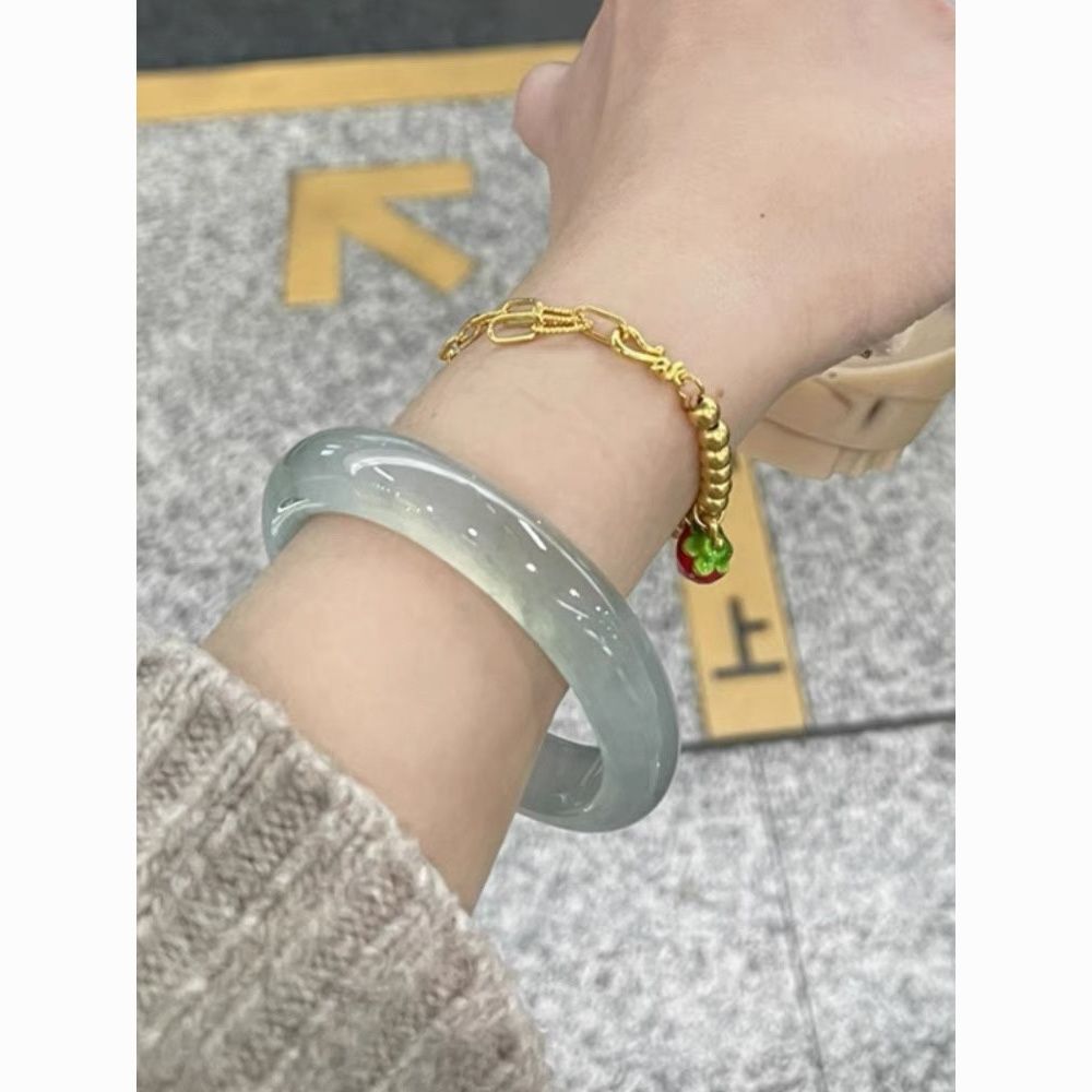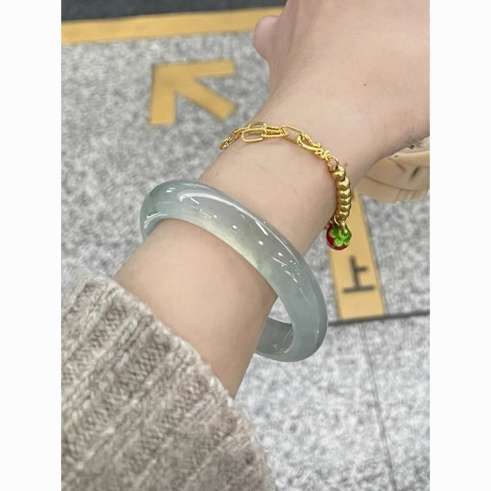 天然冰种翡翠玉手镯猫眼手镯飘花玉髓镯子女晴水白色少女送人礼物