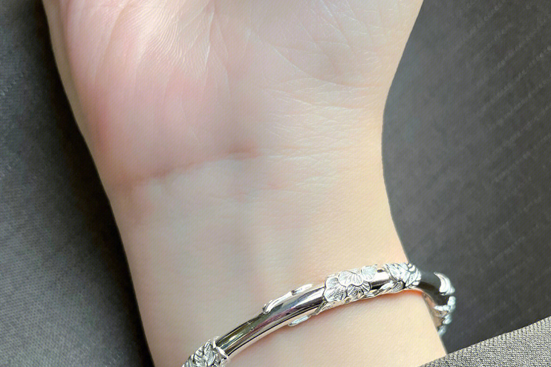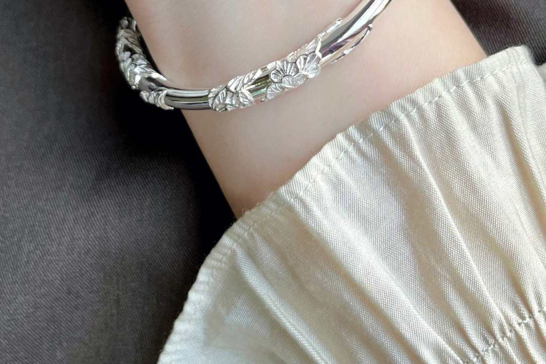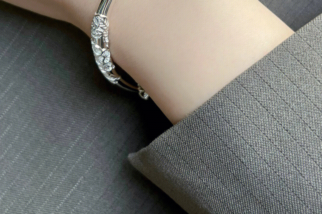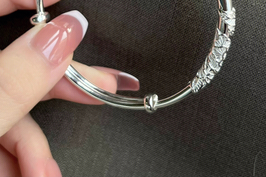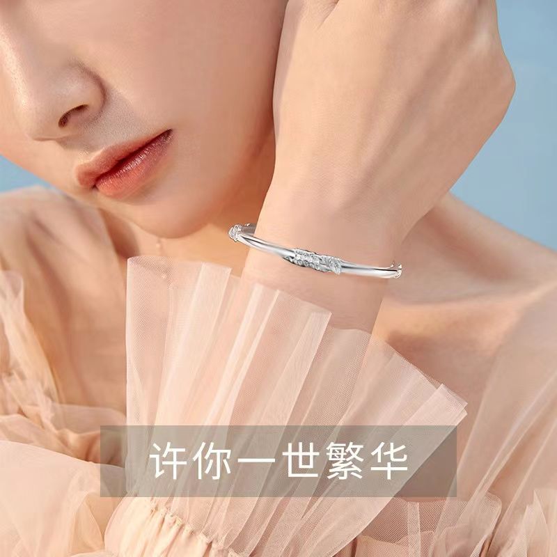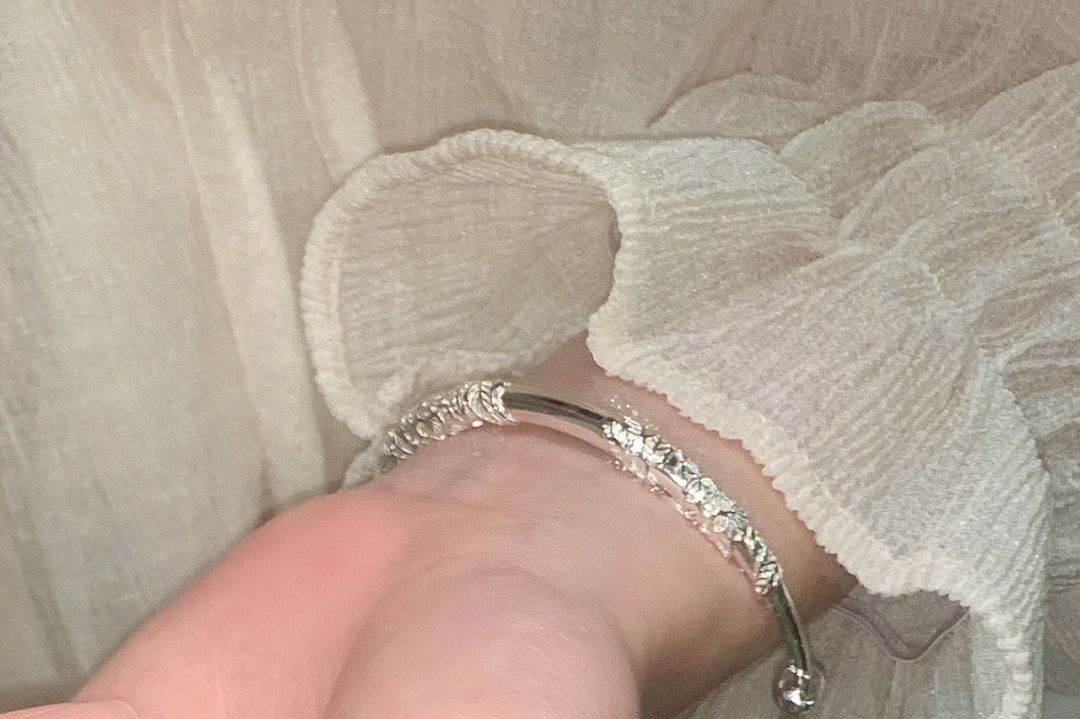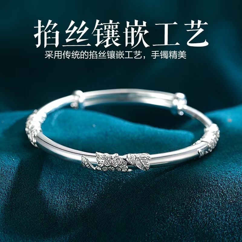 繁花似锦银手镯女款轻奢小众高级感不掉色推拉口实心送女朋友礼物