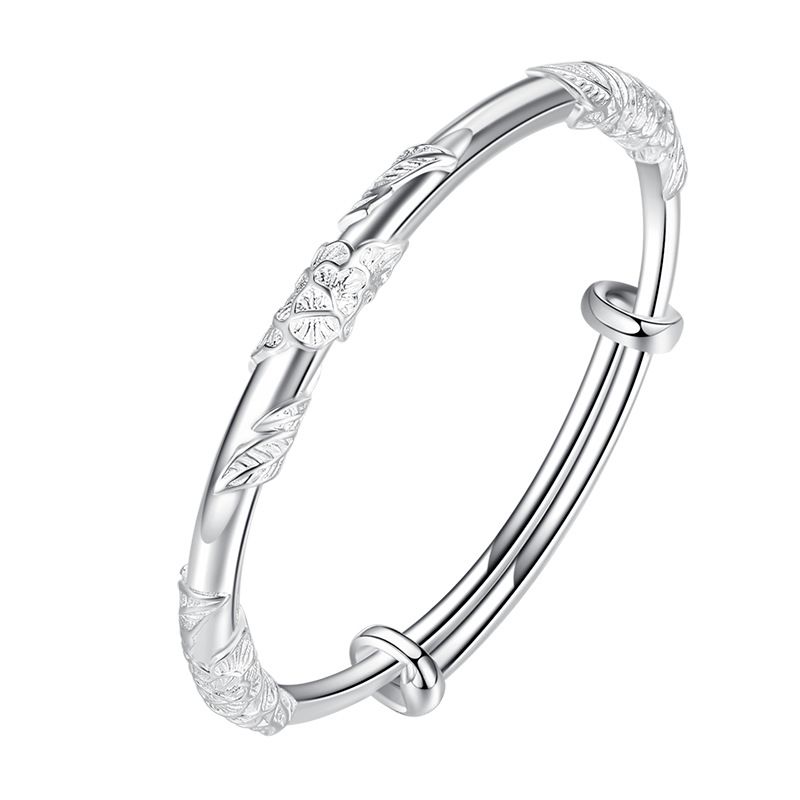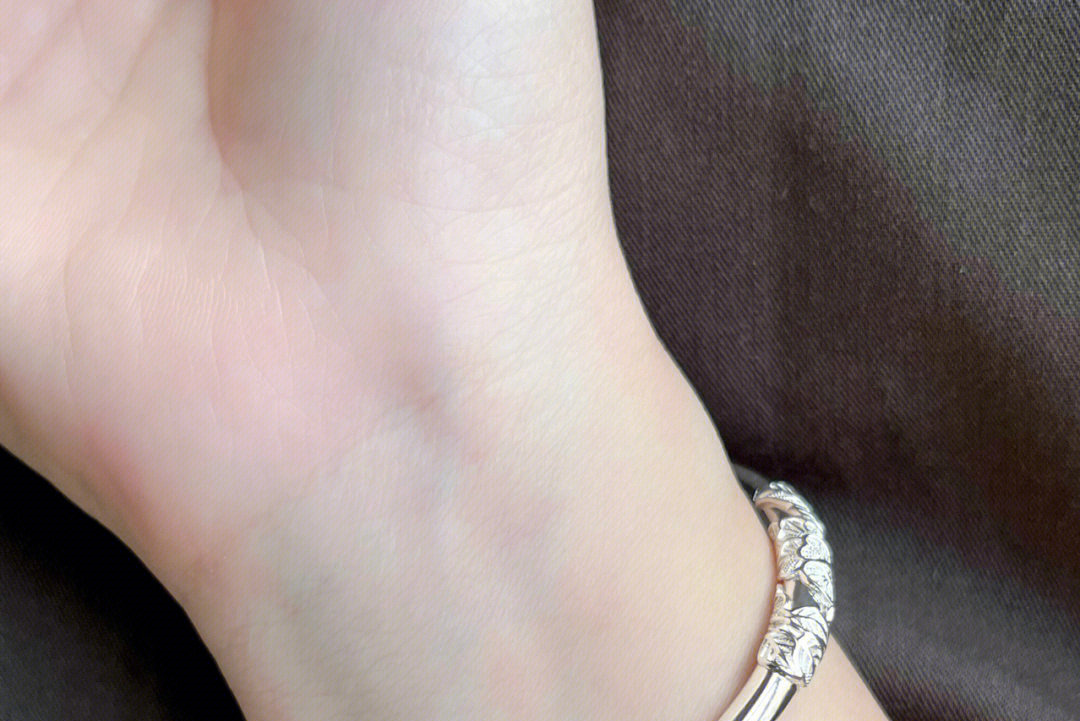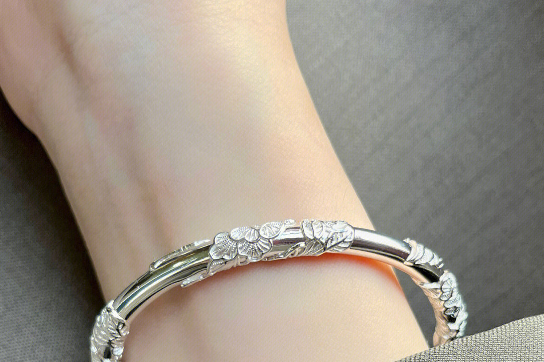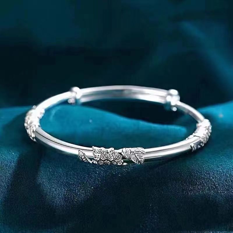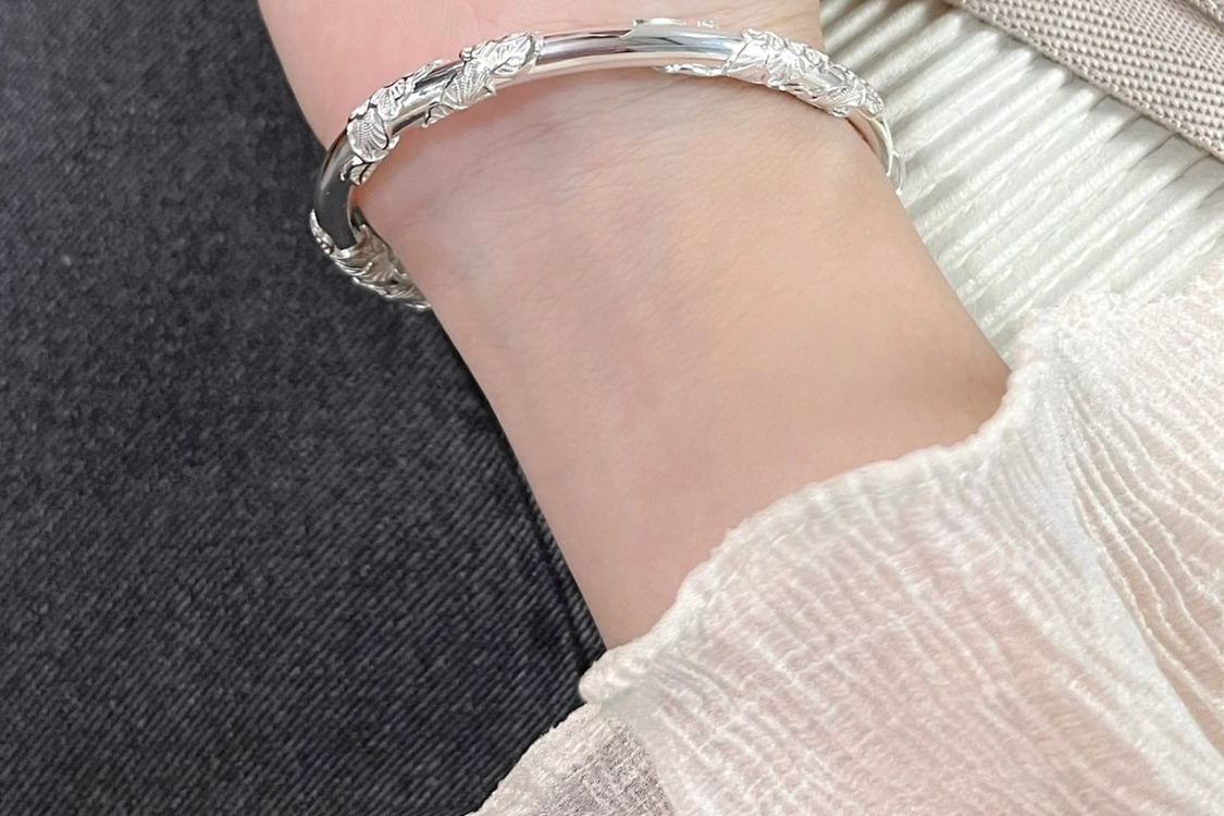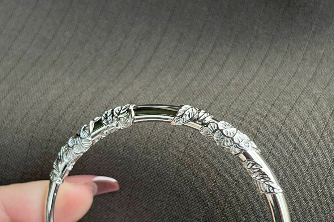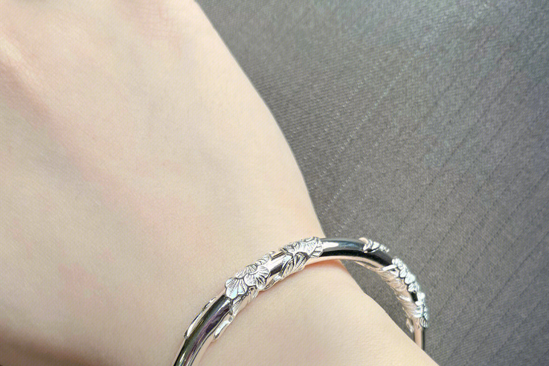 繁花似锦银手镯女款轻奢小众高级感不掉色推拉口实心送女朋友礼物