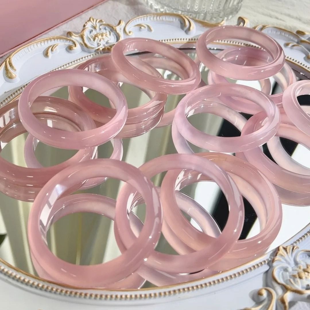 新款高冰种樱花粉手镯公主轻奢爆款时尚宽条美人镯小众