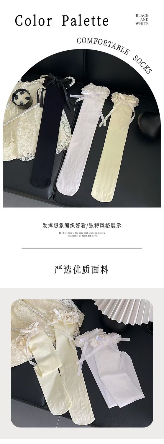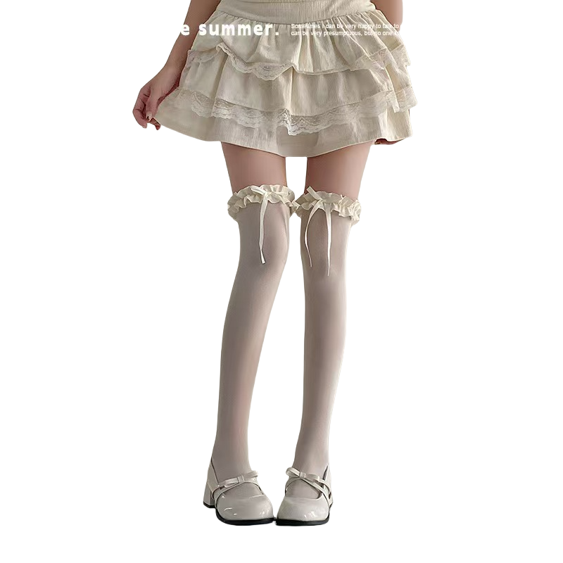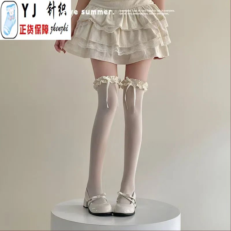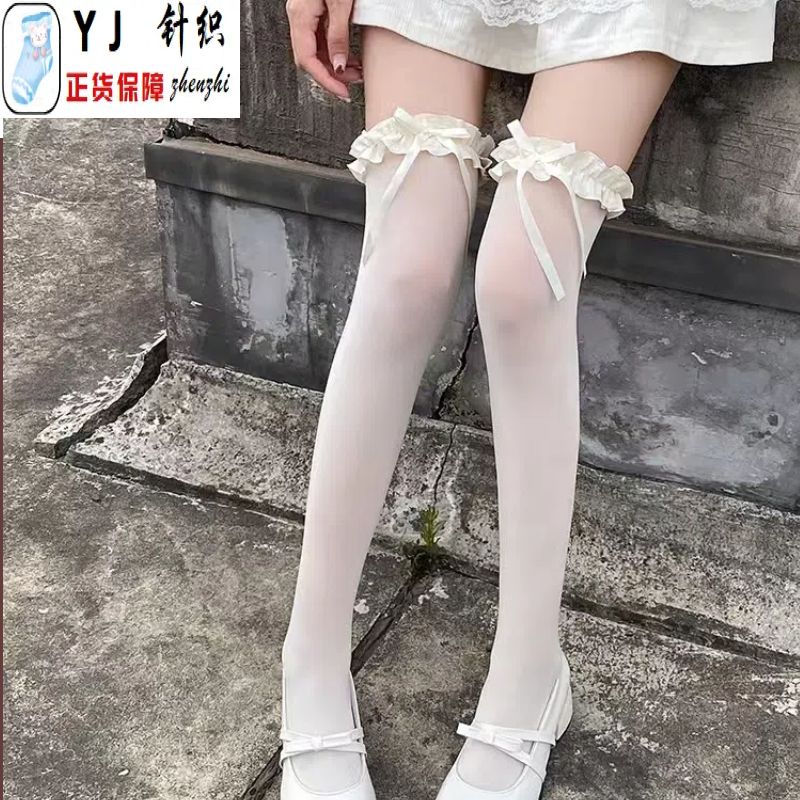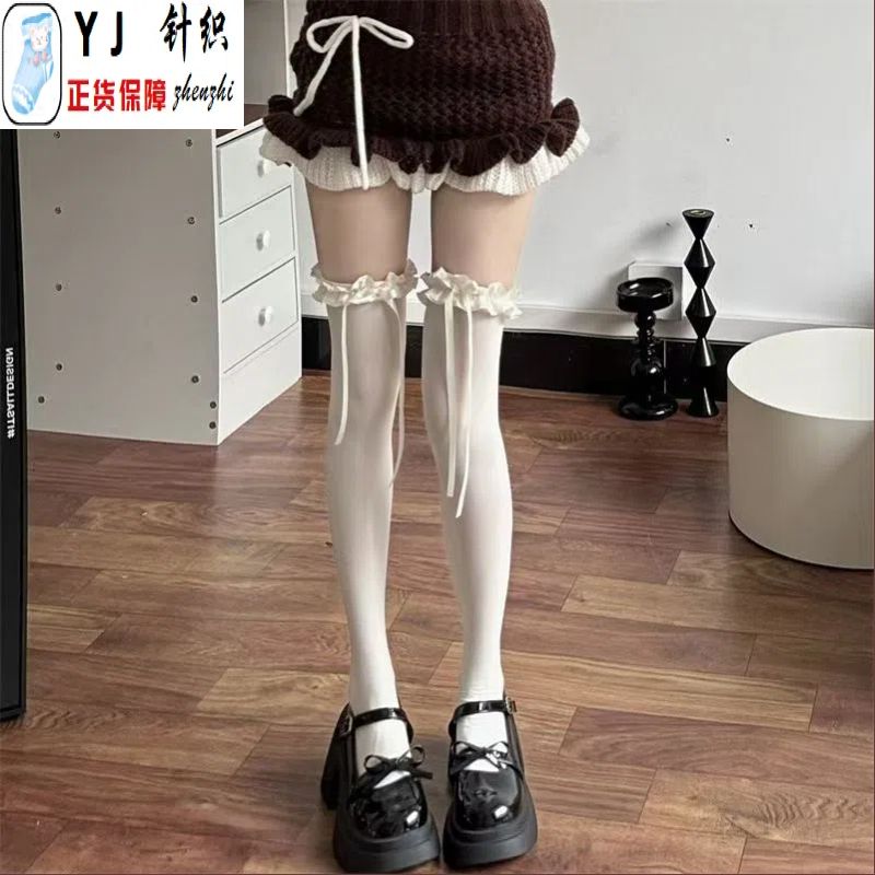 lolita裙子蕾丝花边蝴蝶结过膝花边袜子长筒lolita袜子大腿长筒袜
