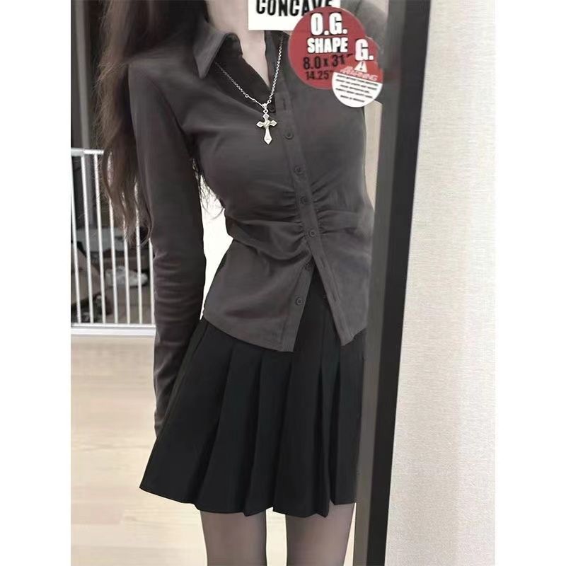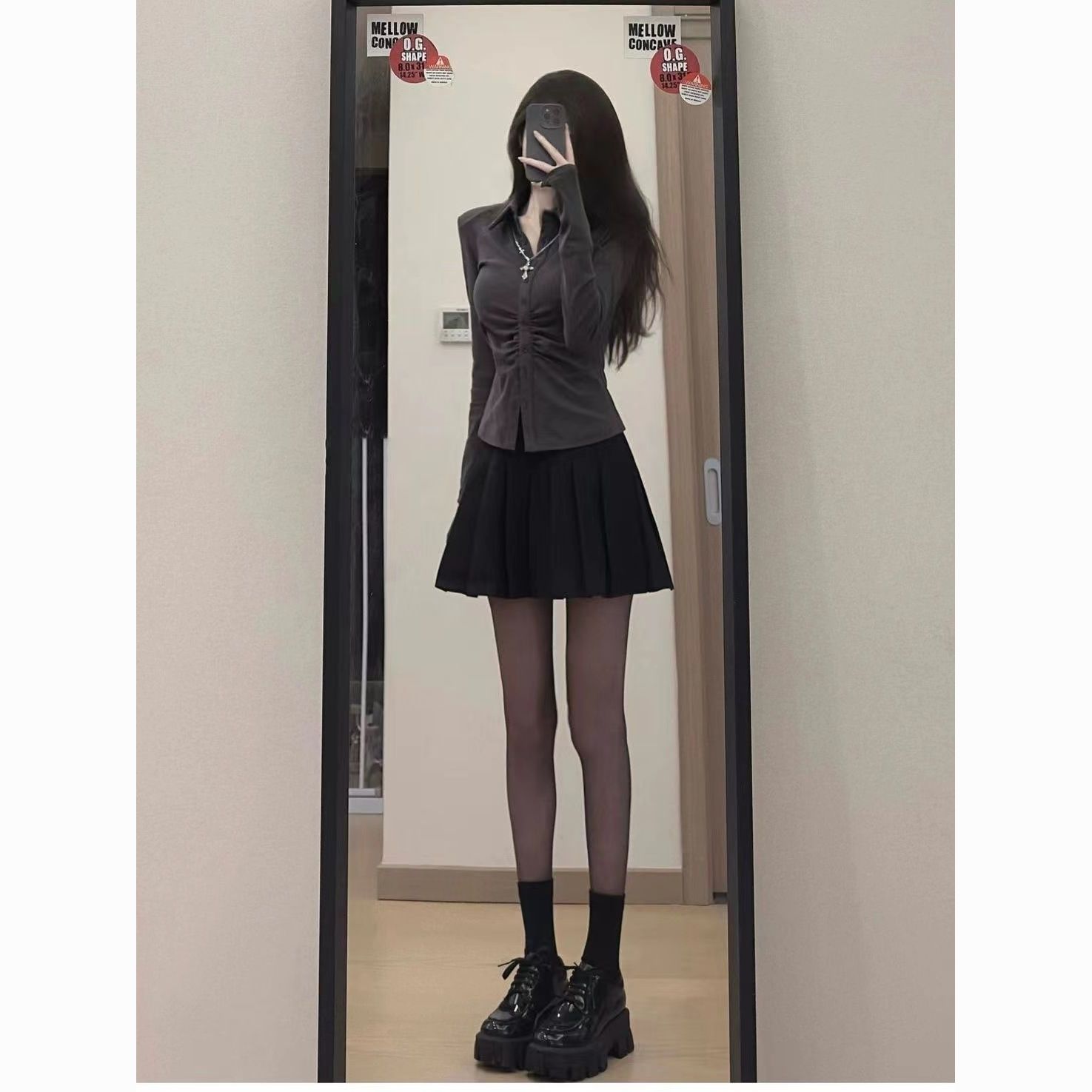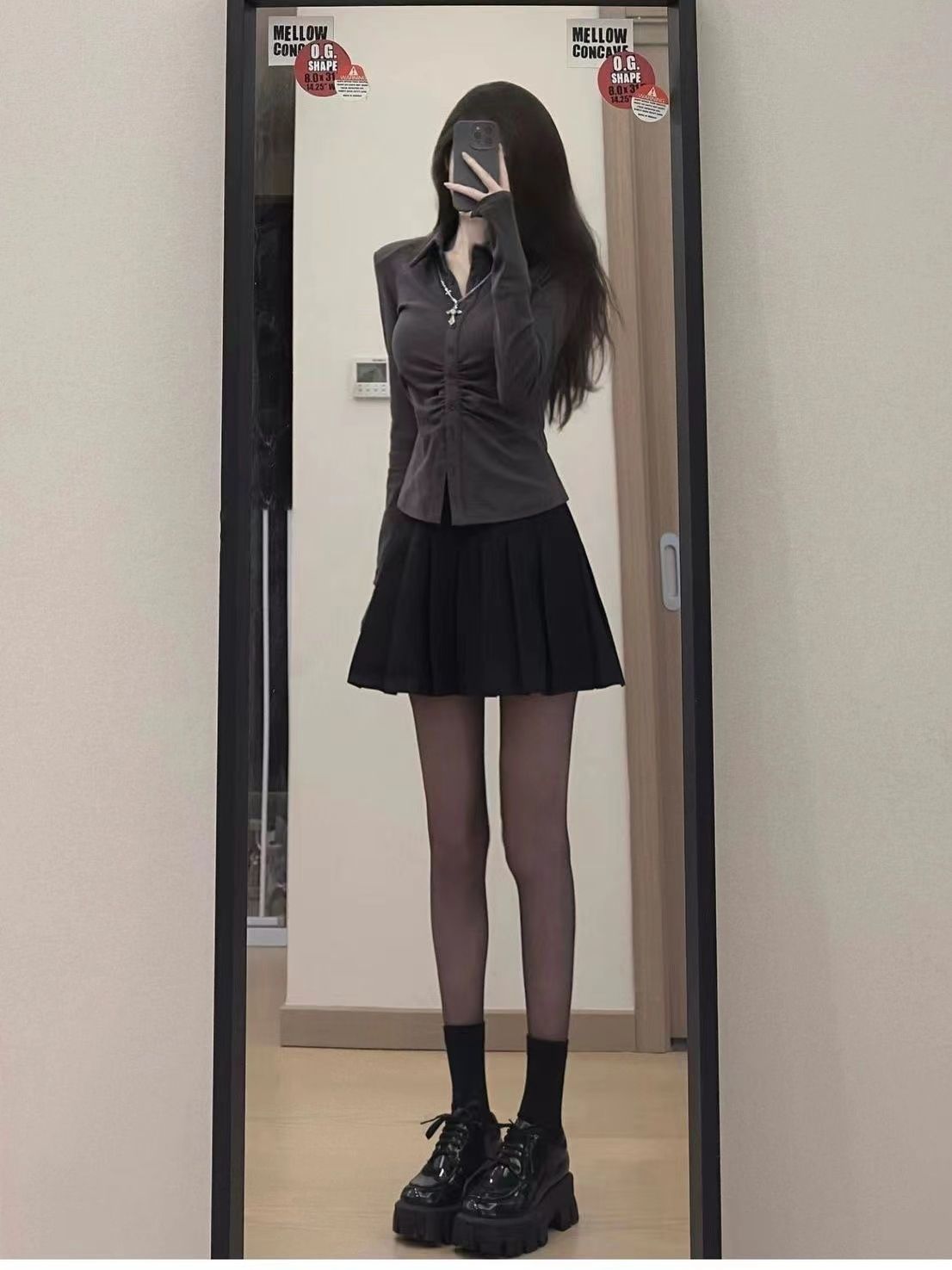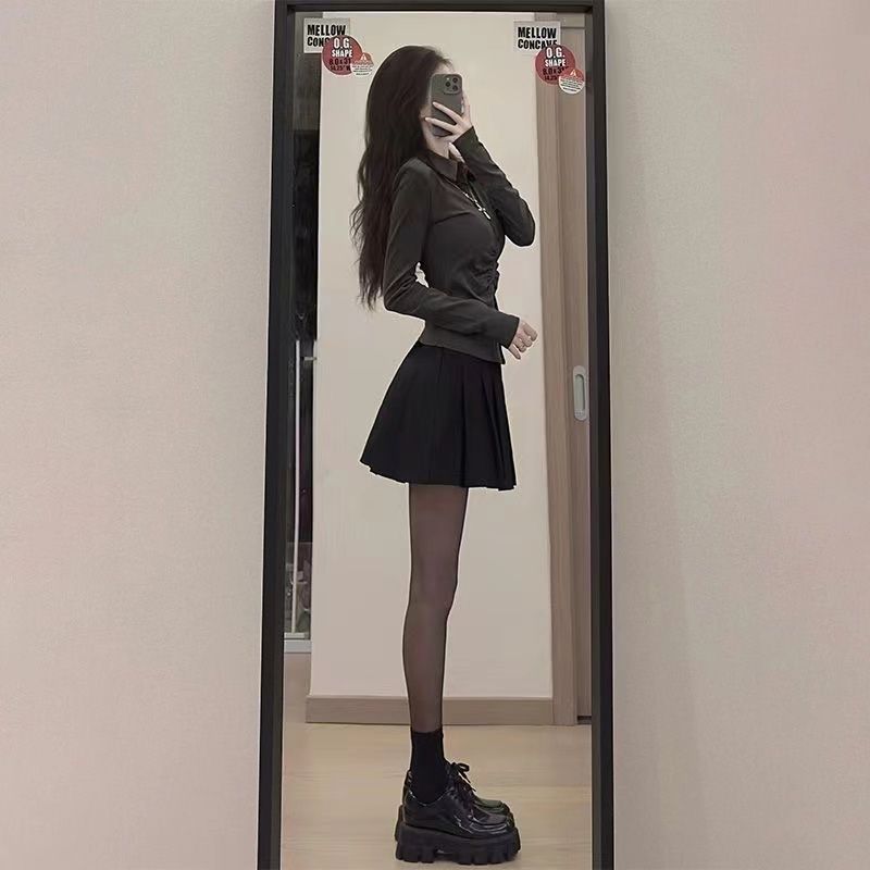 春季时尚套装jk纯欲轻熟风别致上衣褶皱衬衫+高腰百褶裙两件套潮