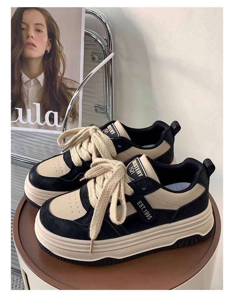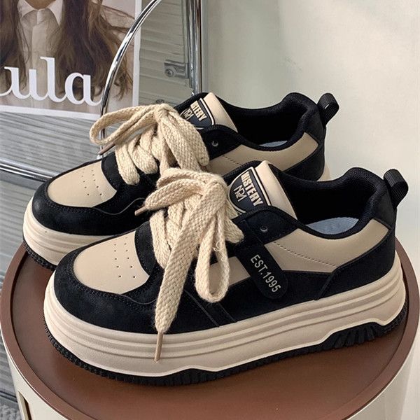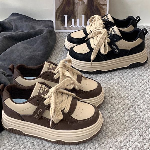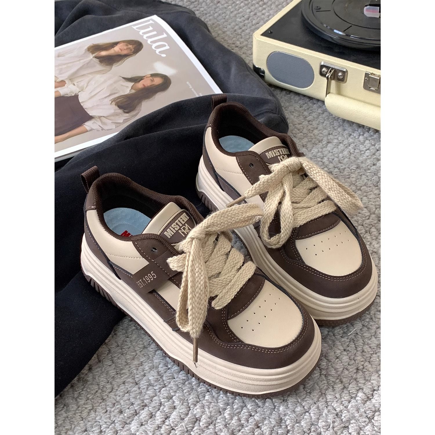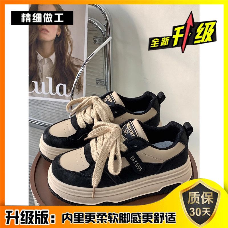 美拉德网红厚底板鞋女2024早春新款国潮面包鞋子女鞋百搭运动鞋女
