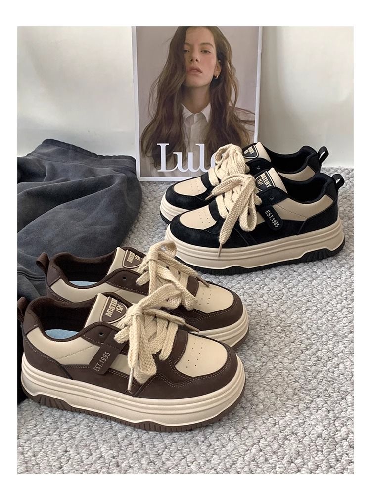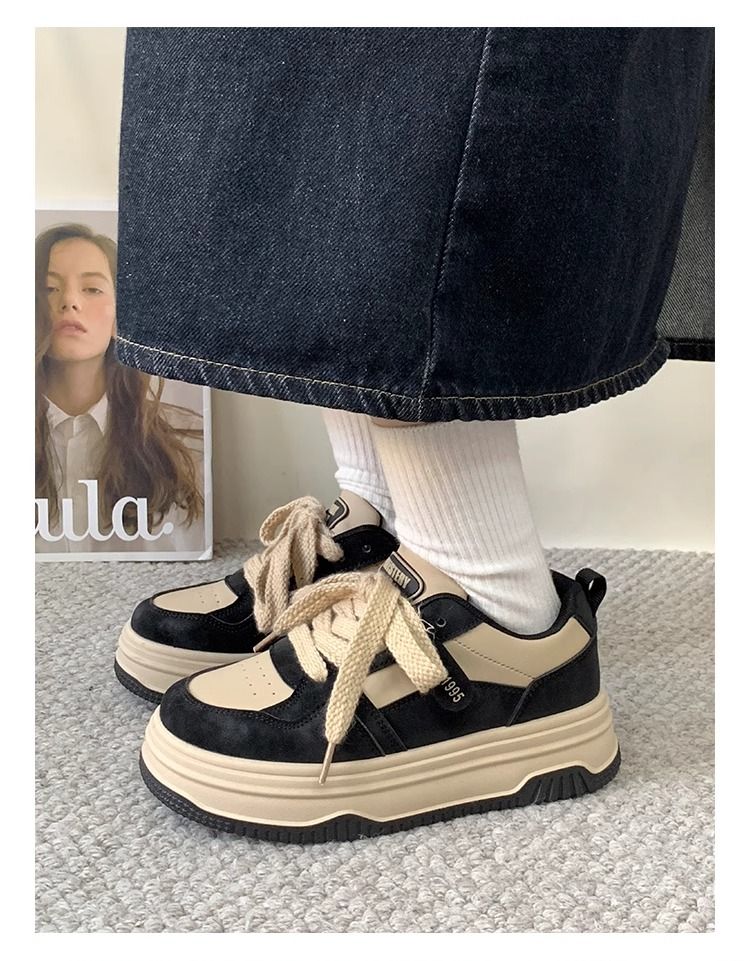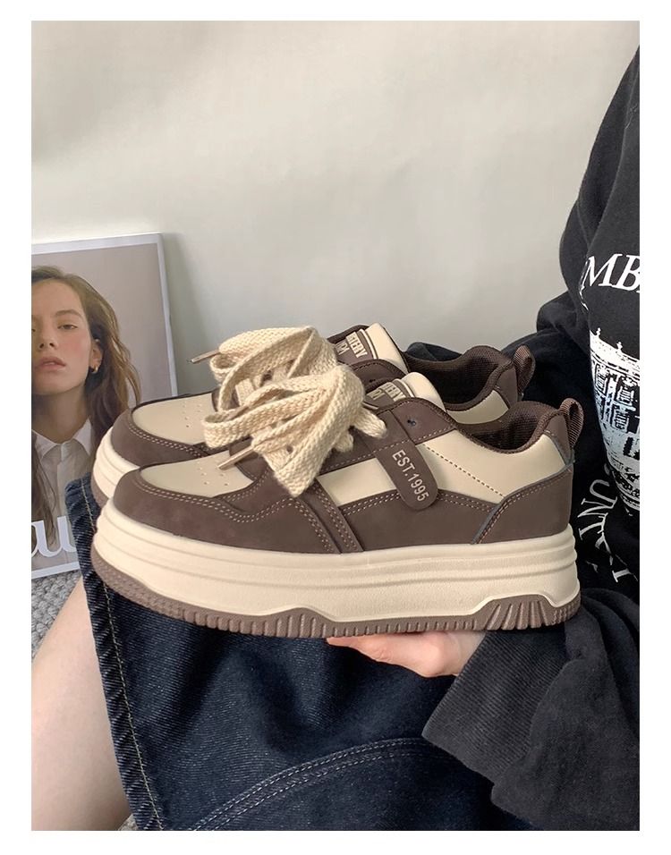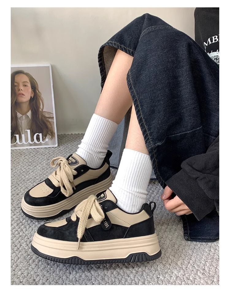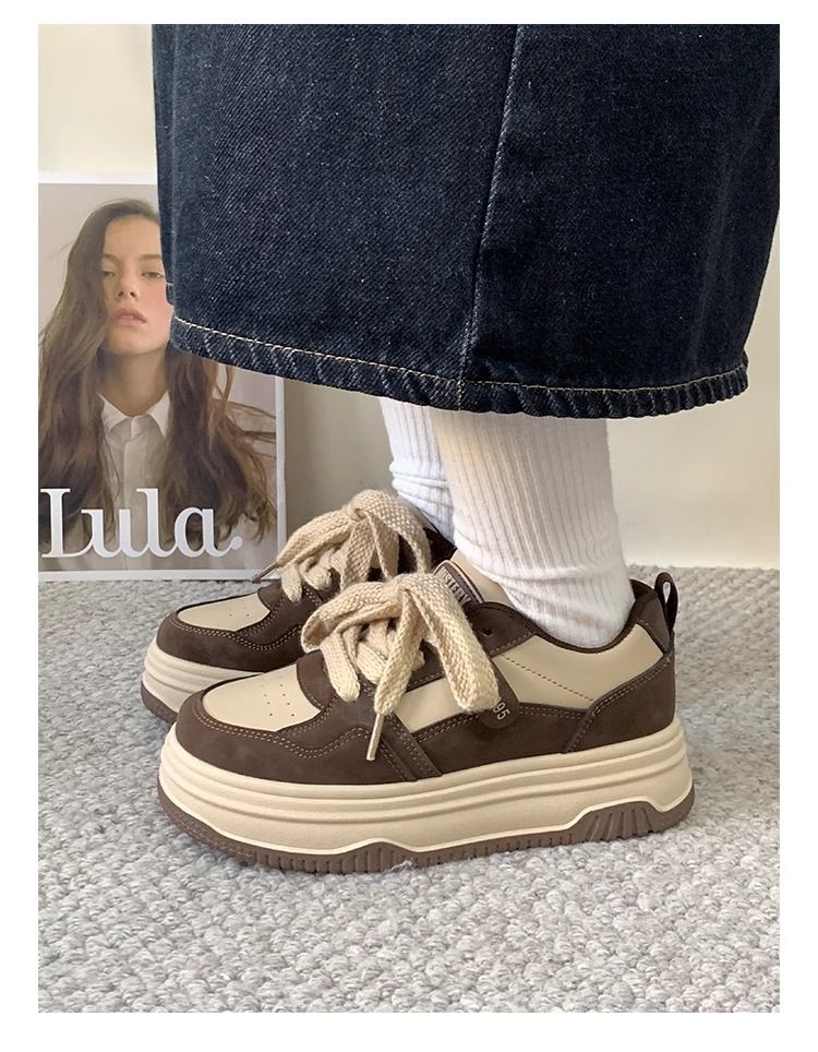 美拉德网红厚底板鞋女2024早春新款国潮面包鞋子女鞋百搭运动鞋女