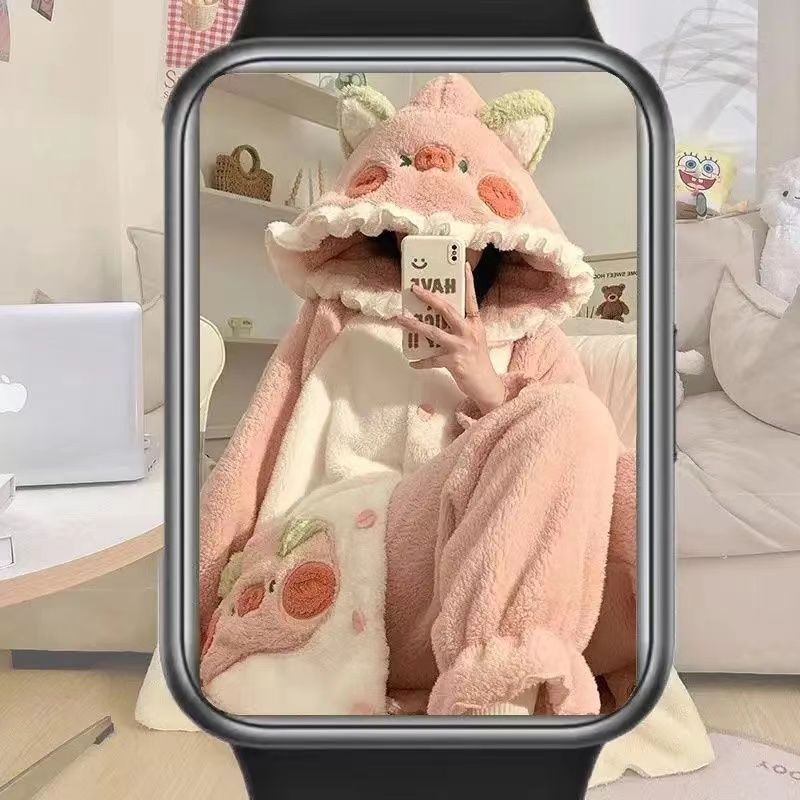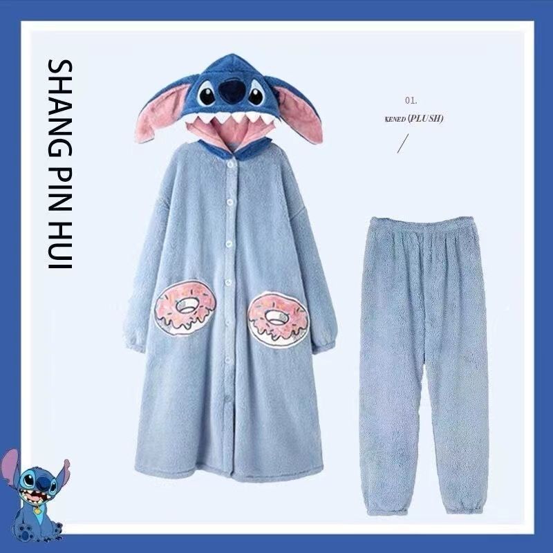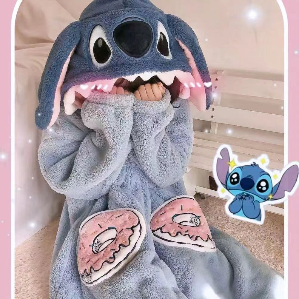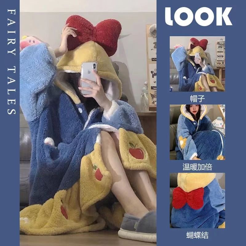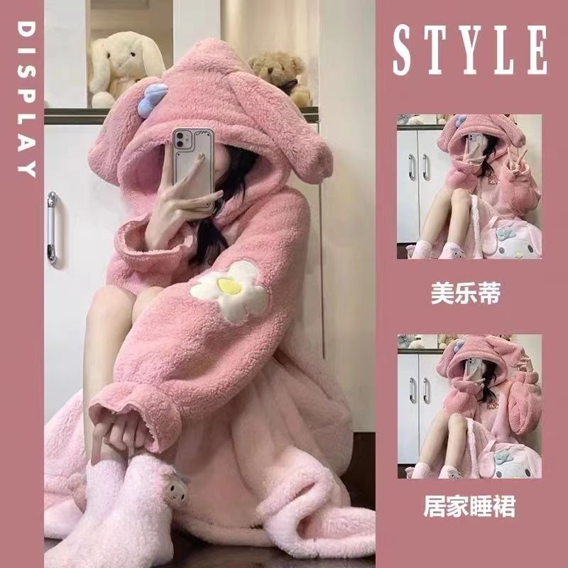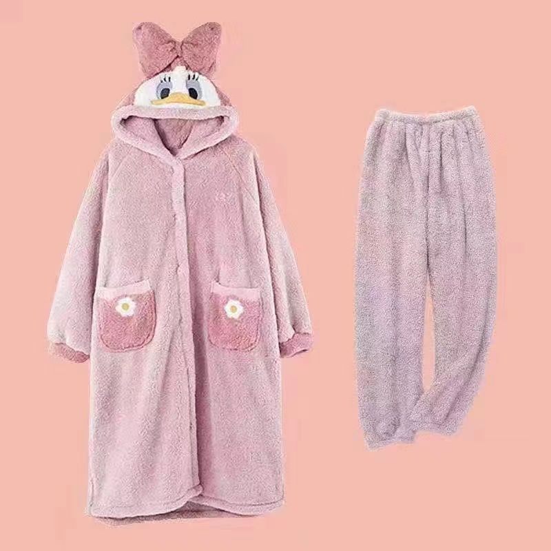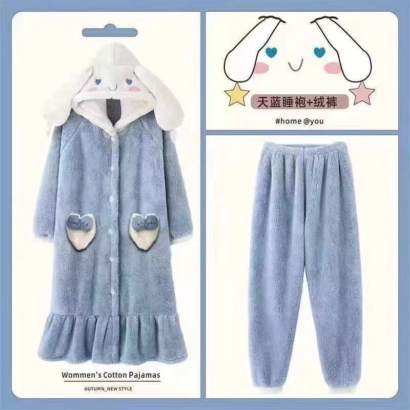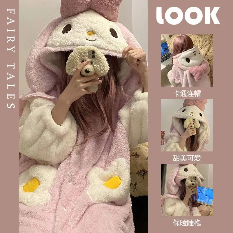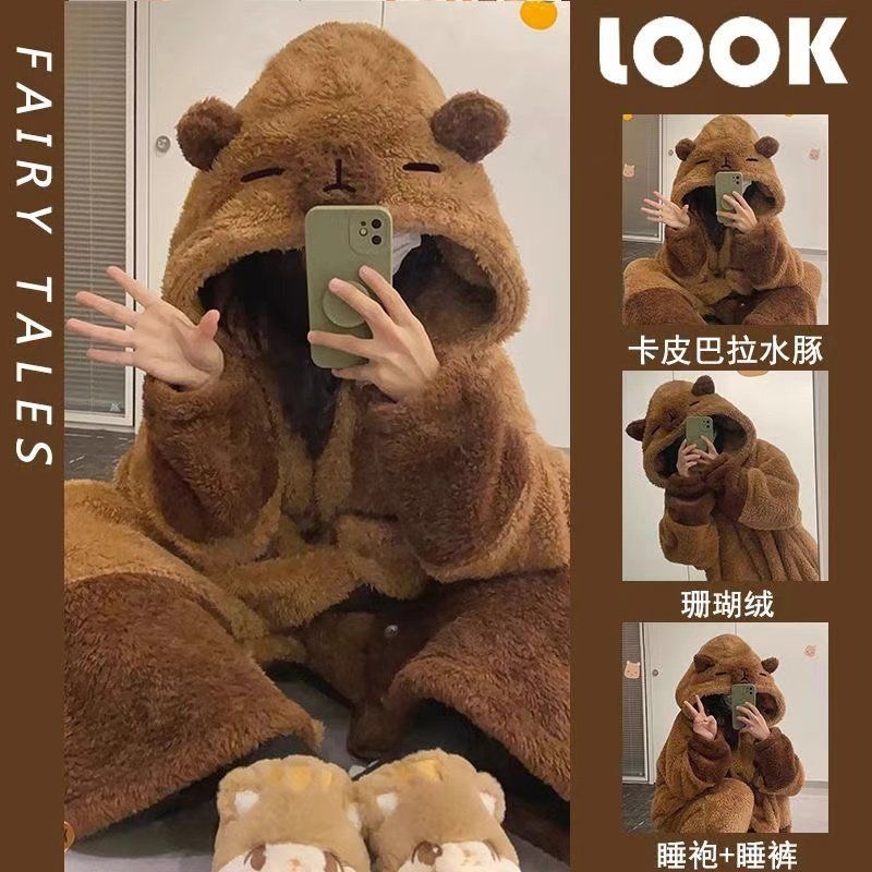 卡皮巴拉法兰绒睡袍冬季珊瑚卡通睡衣加厚加绒学生可爱家居服套装