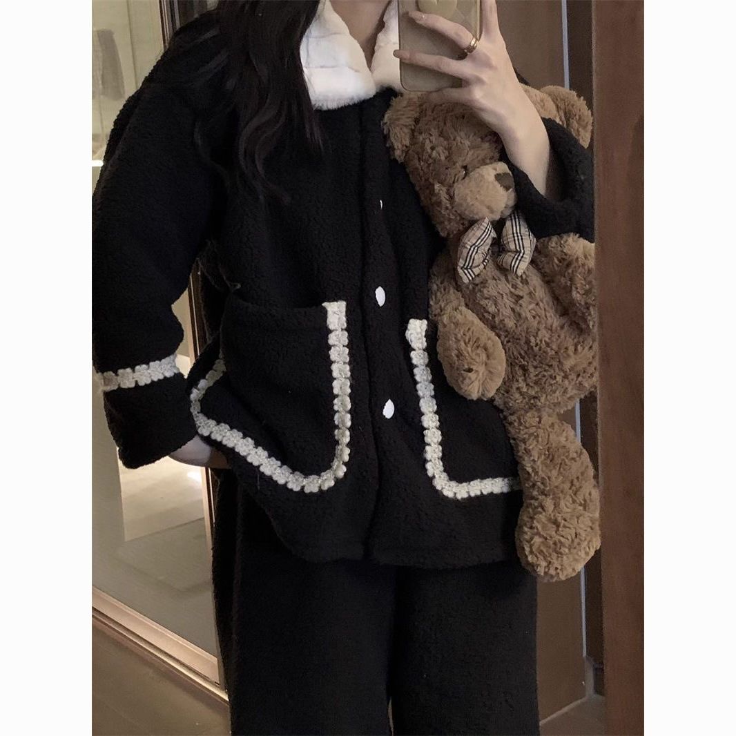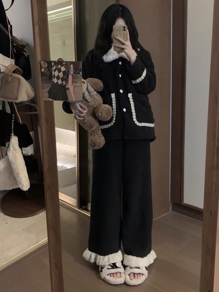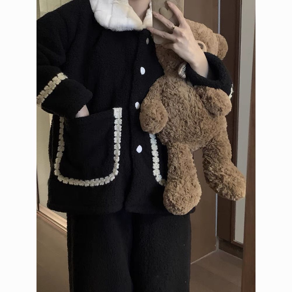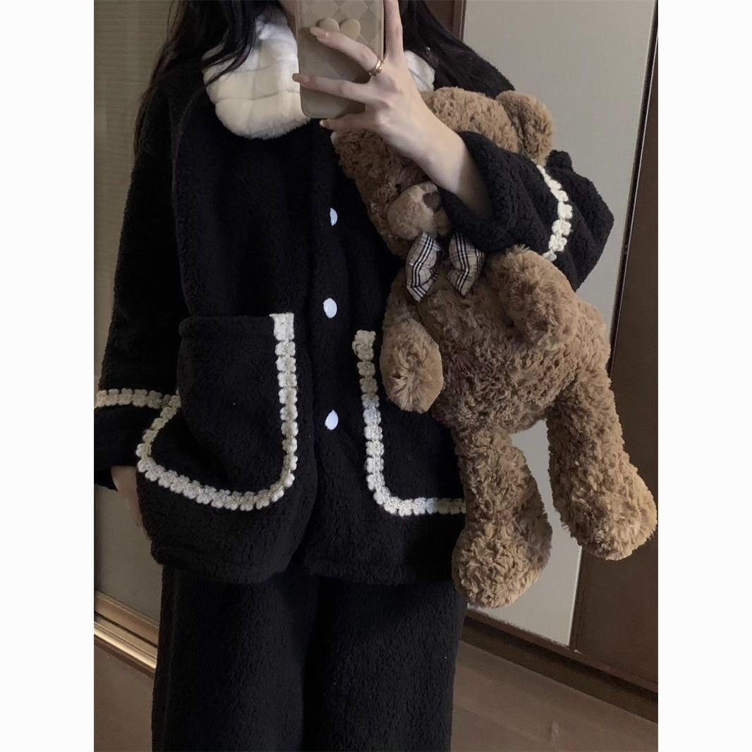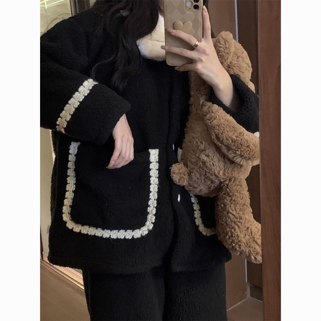 珊瑚绒睡衣女秋冬季小香风ins加绒加厚法兰绒保暖家居服套装外穿