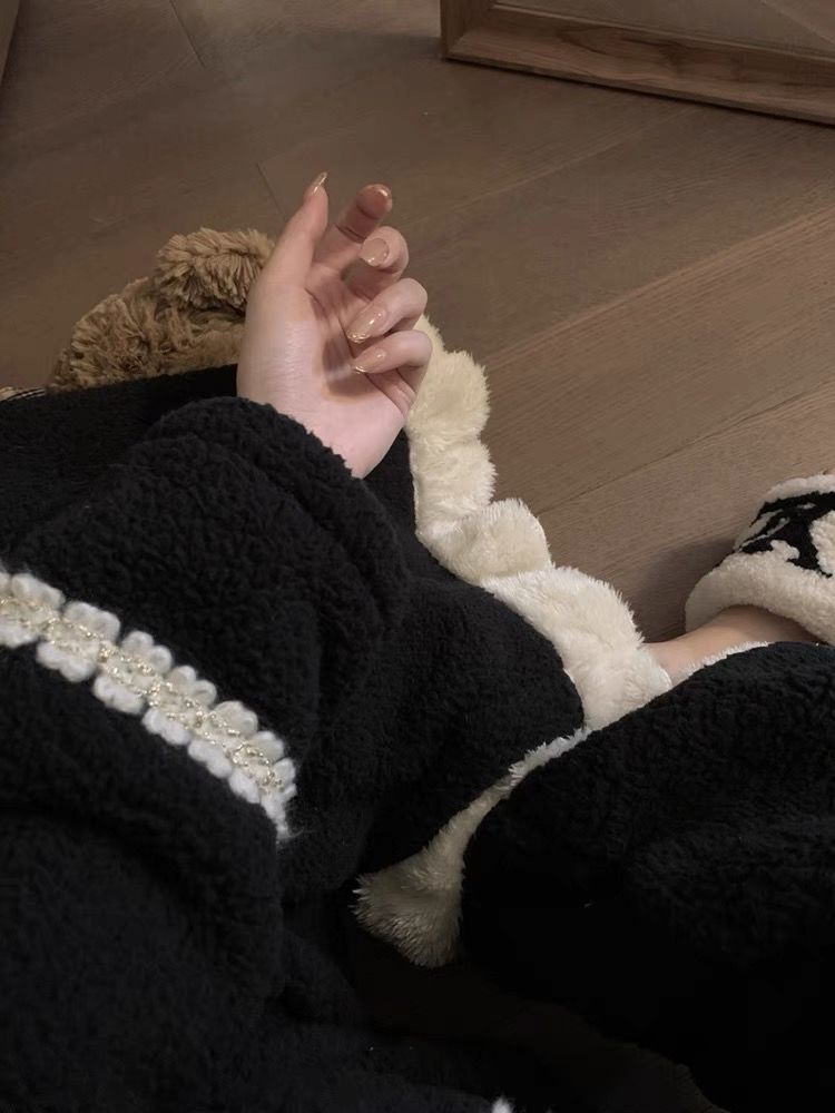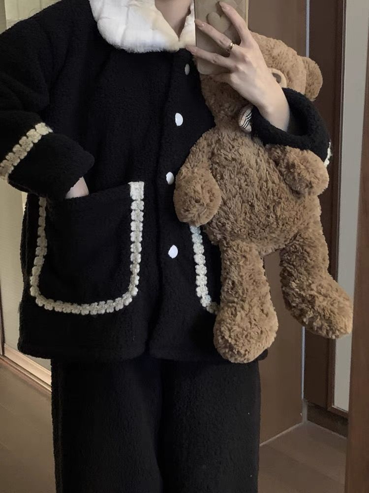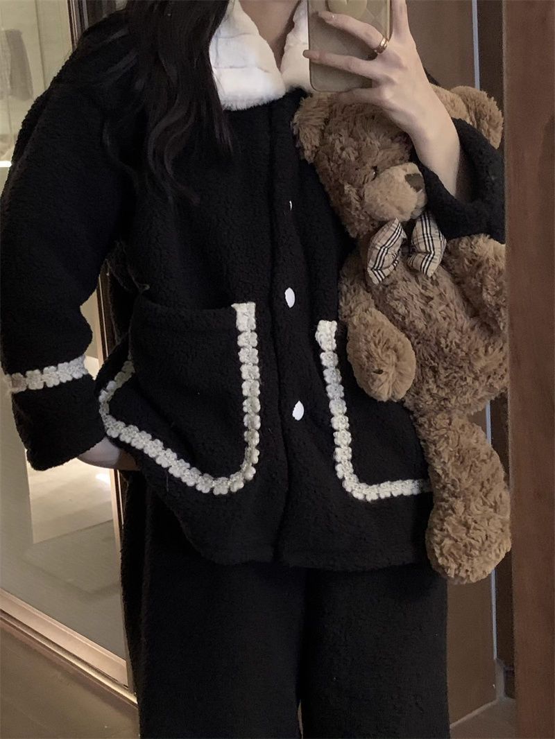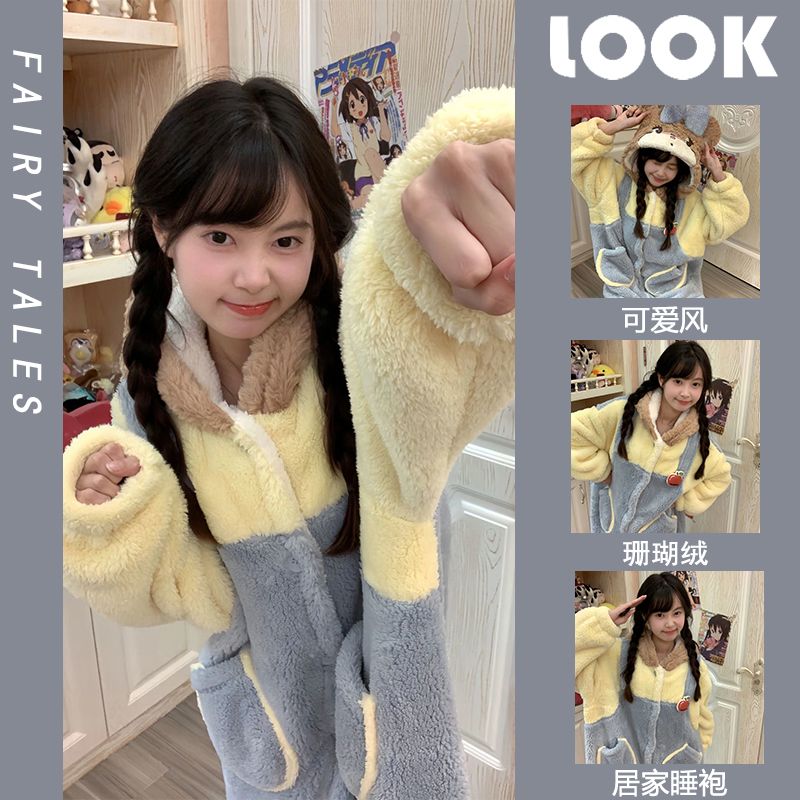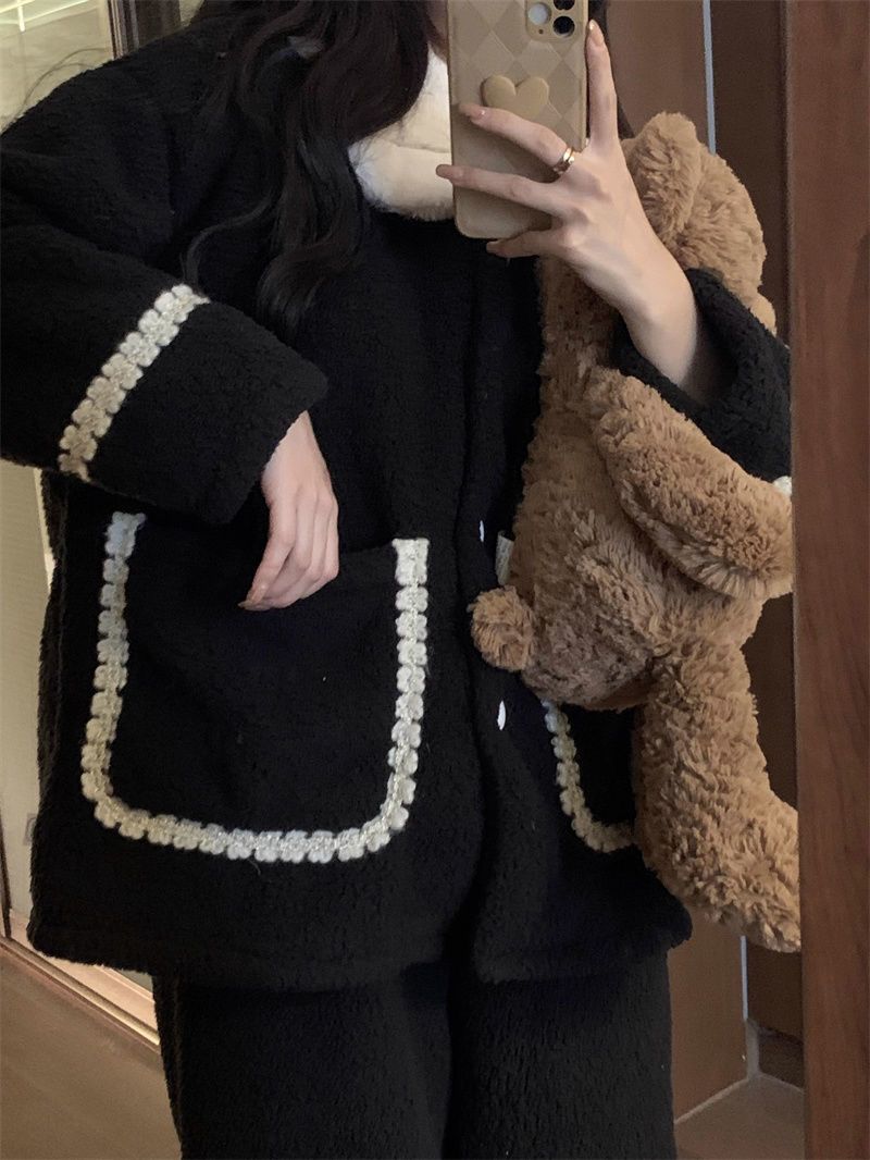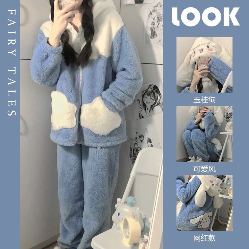 珊瑚绒睡衣女秋冬季小香风ins加绒加厚法兰绒保暖家居服套装外穿