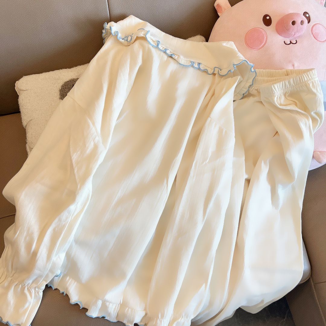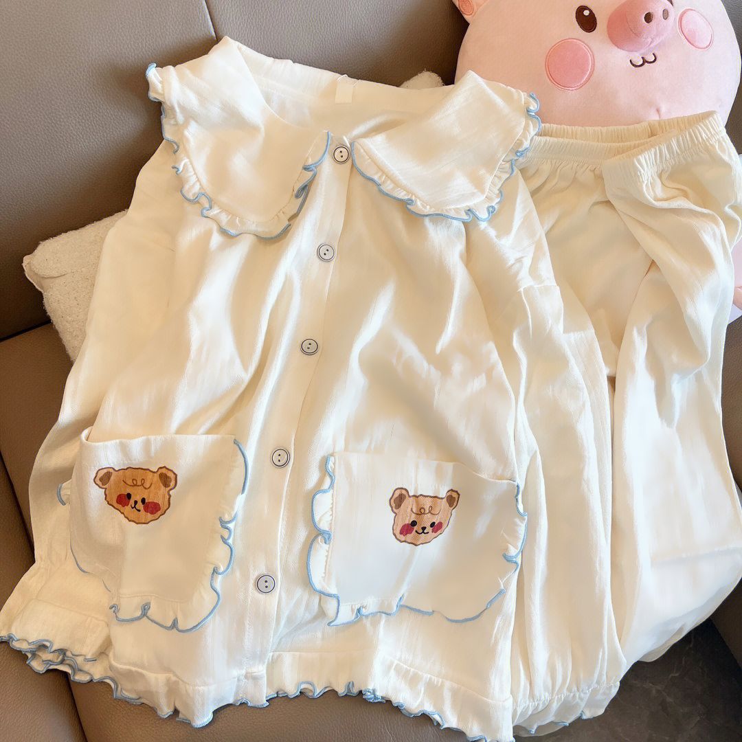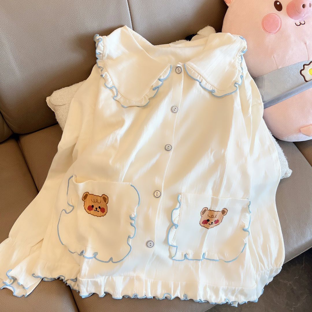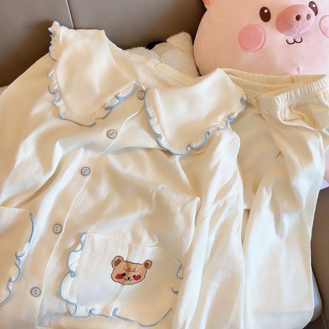 ins风可爱熊宝长袖睡衣女春秋季新款甜美娃娃领可外穿家居服套装