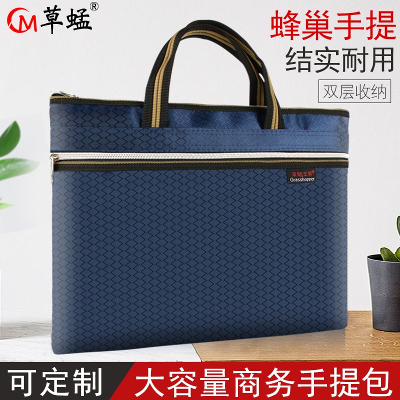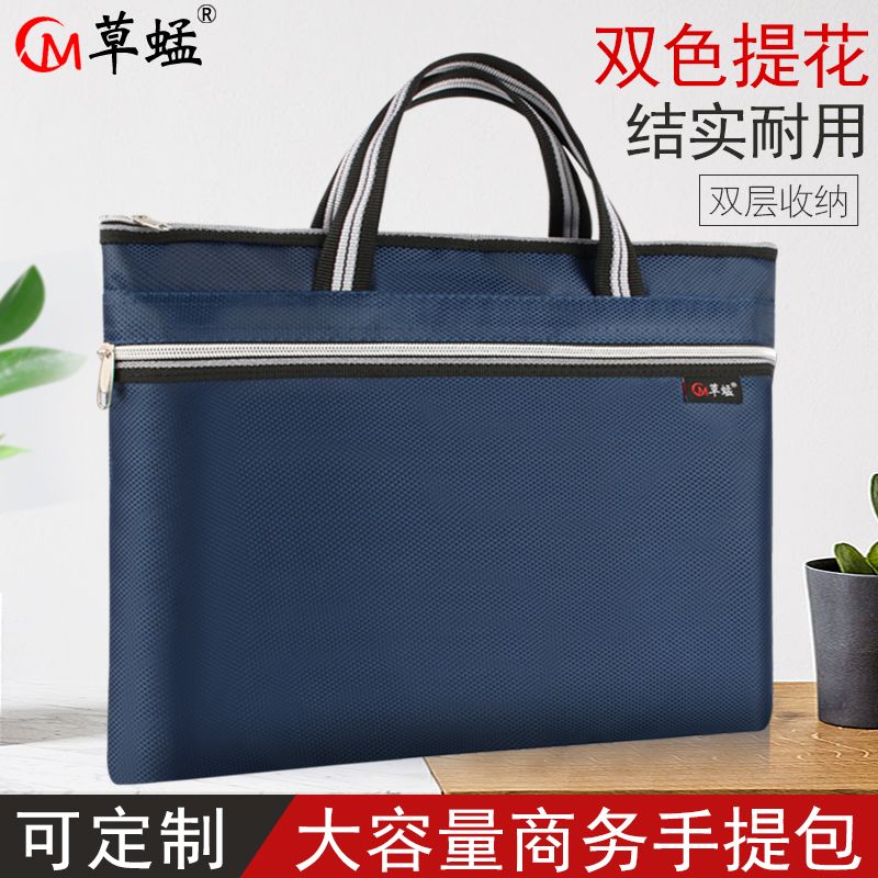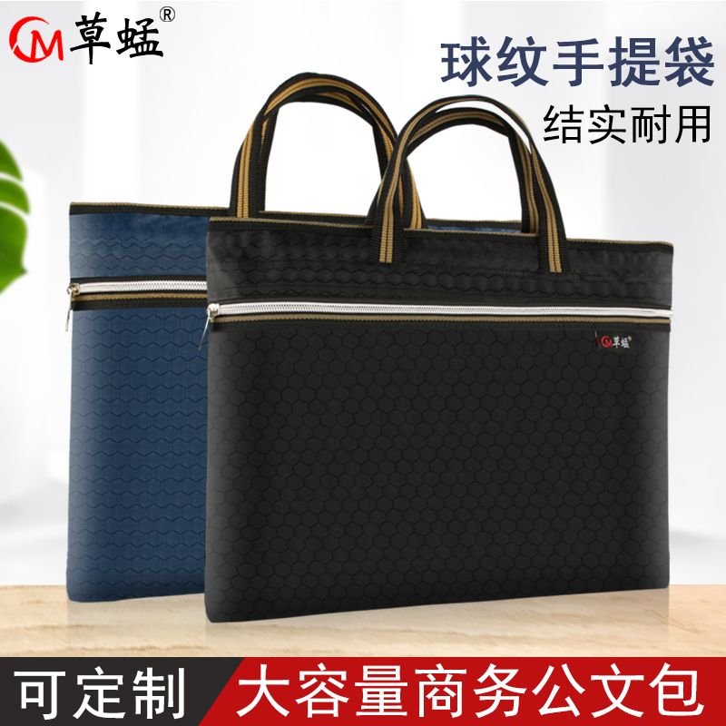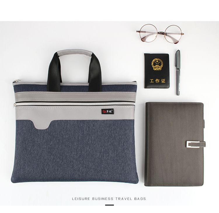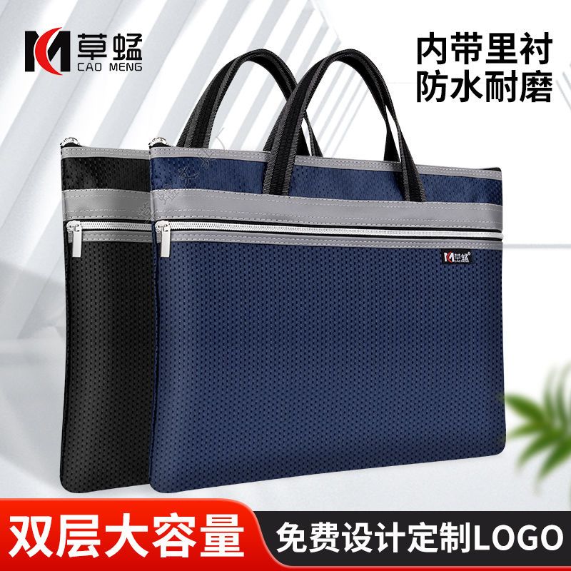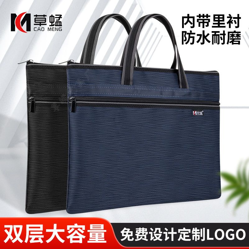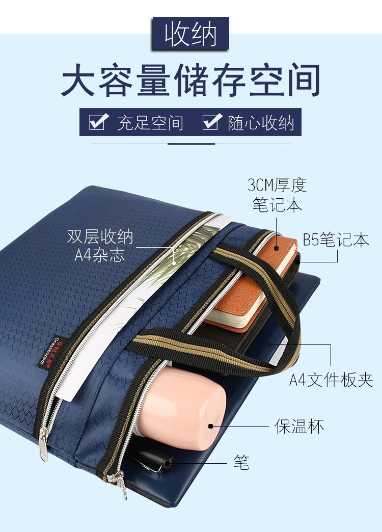文件袋手提包双层大容量资料袋牛津帆布防水拉链会议包商务公文包
