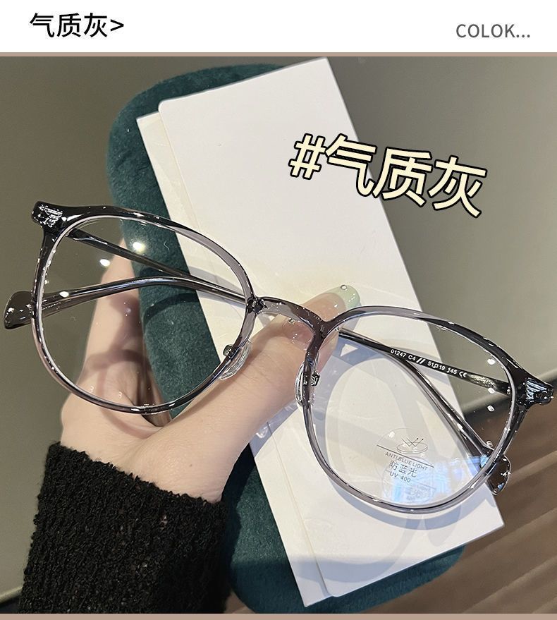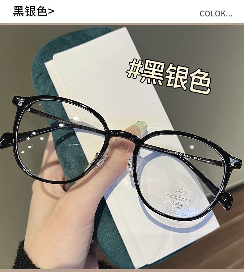 小红书超轻黑银色近视眼镜女斯文学生高颜值素颜神器防蓝光平光镜