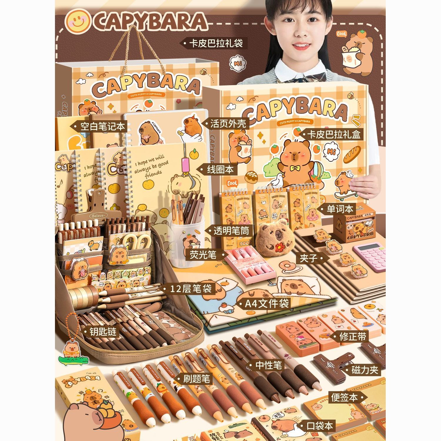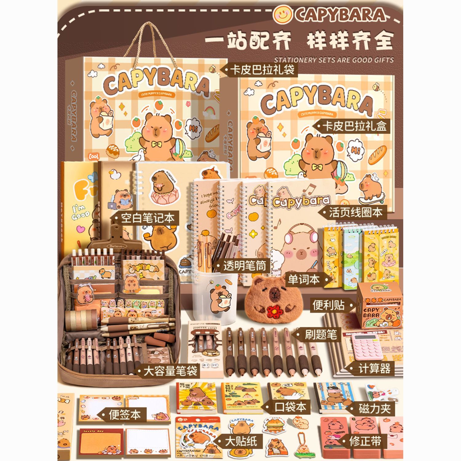 | 卡皮巴拉文具至尊套装+小皮箱 | USD $21.91 | 99999 piece available |