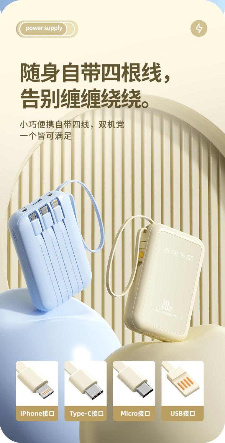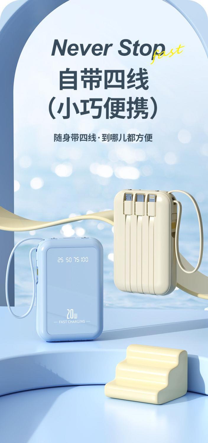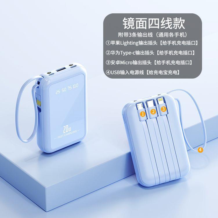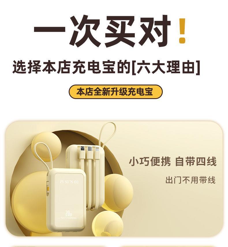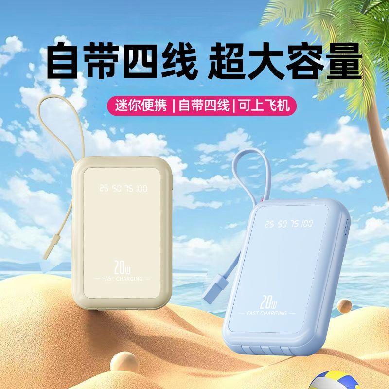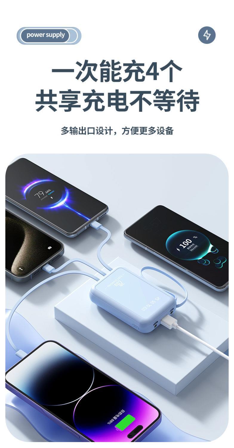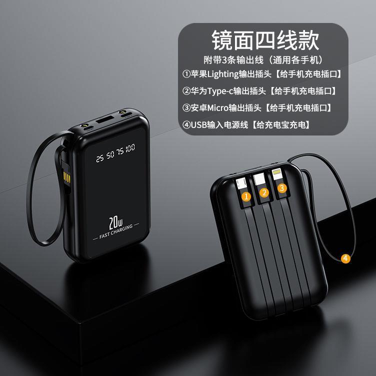 自带4线20000毫安充电宝快充大容量轻便适用华为安卓OPPOvivo风扇