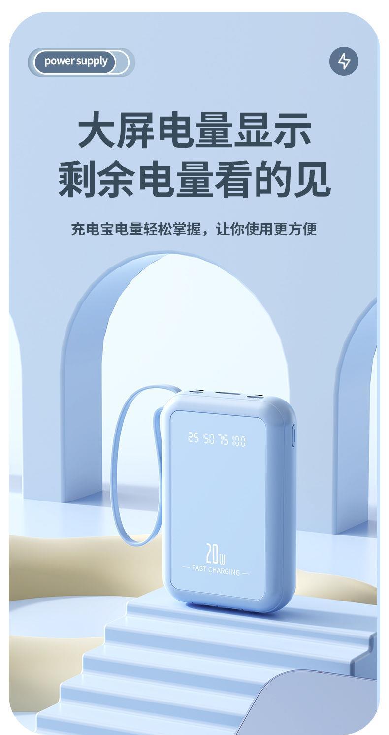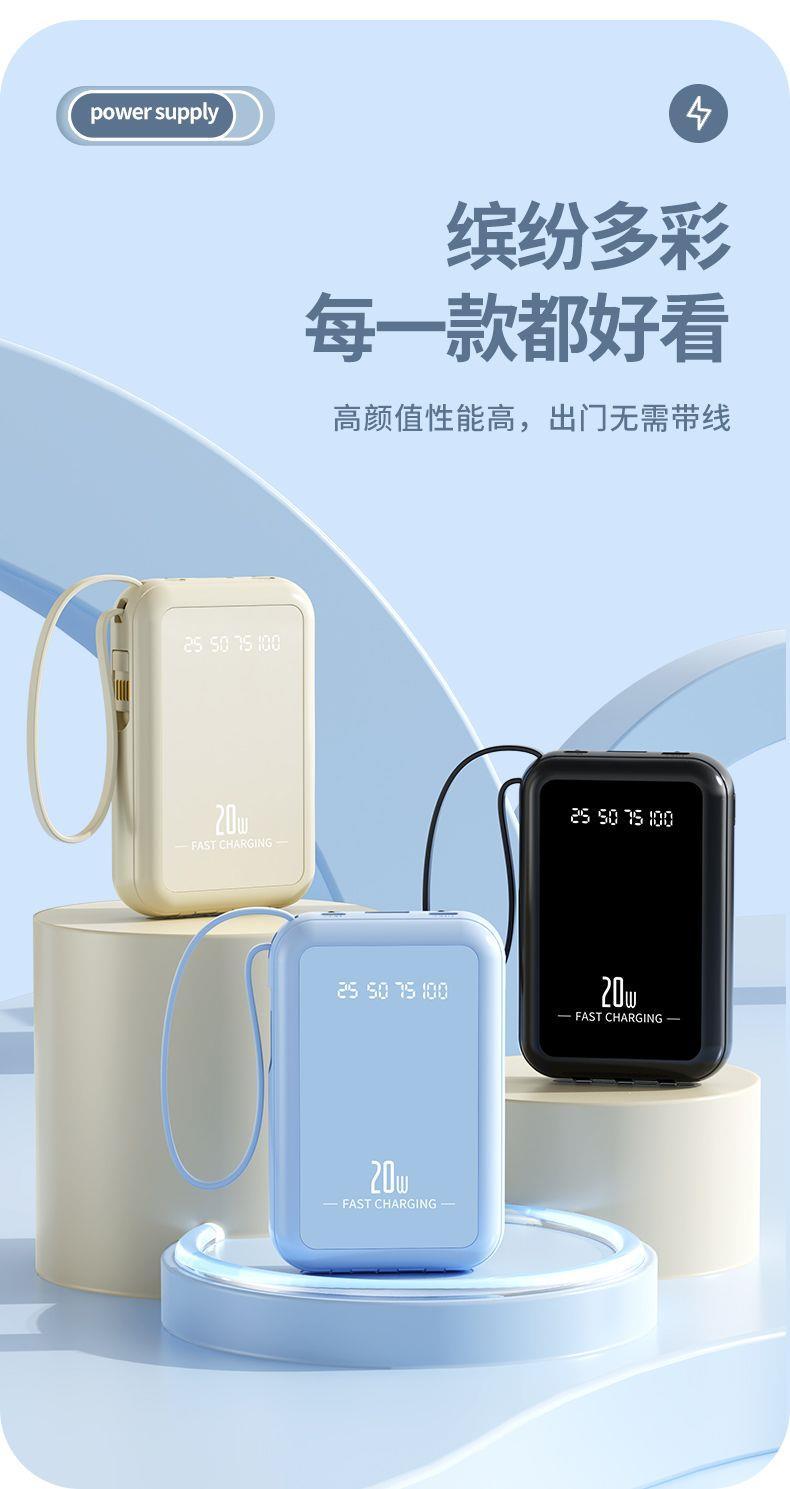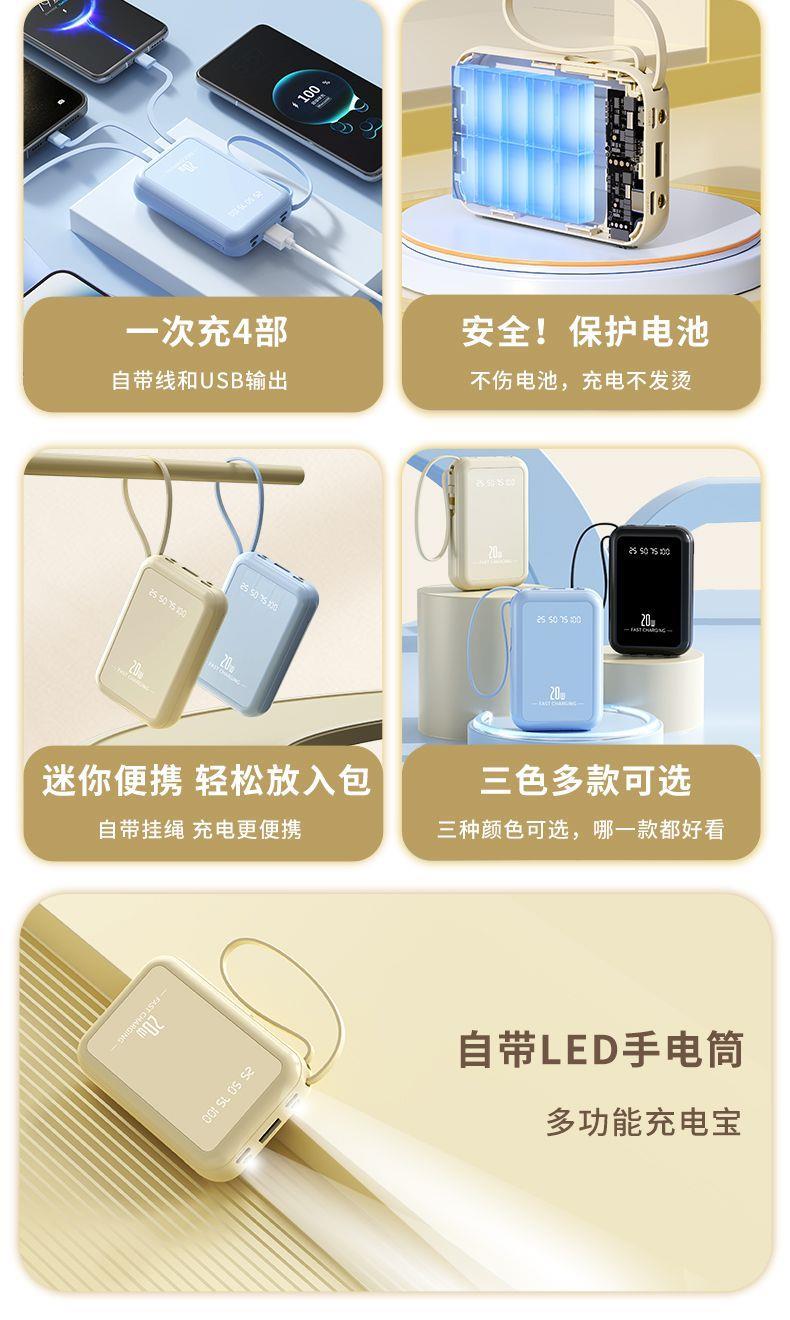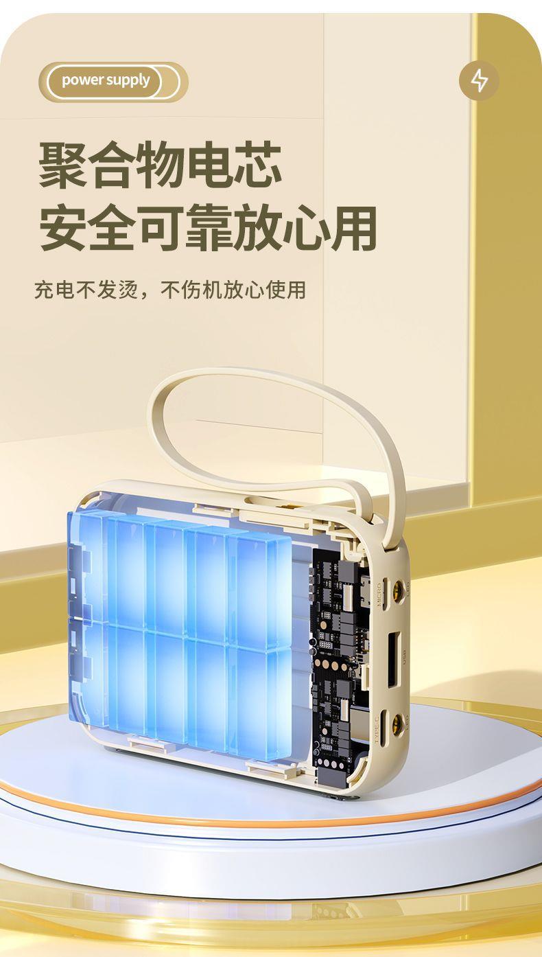 自带4线20000毫安充电宝快充大容量轻便适用华为安卓OPPOvivo风扇