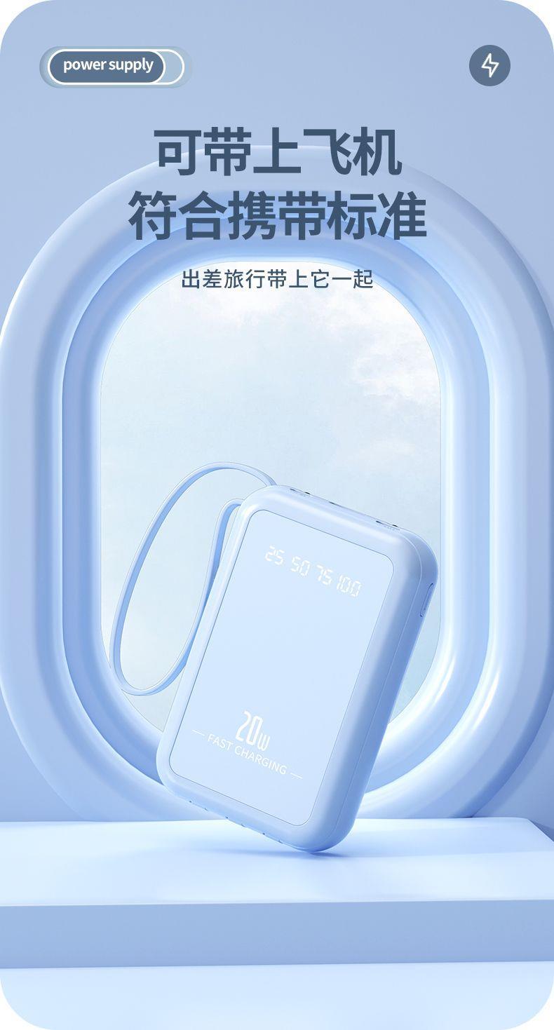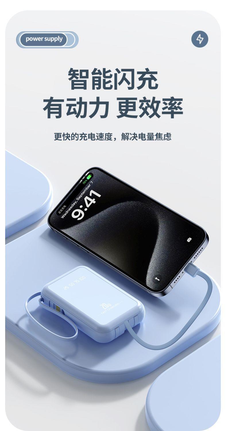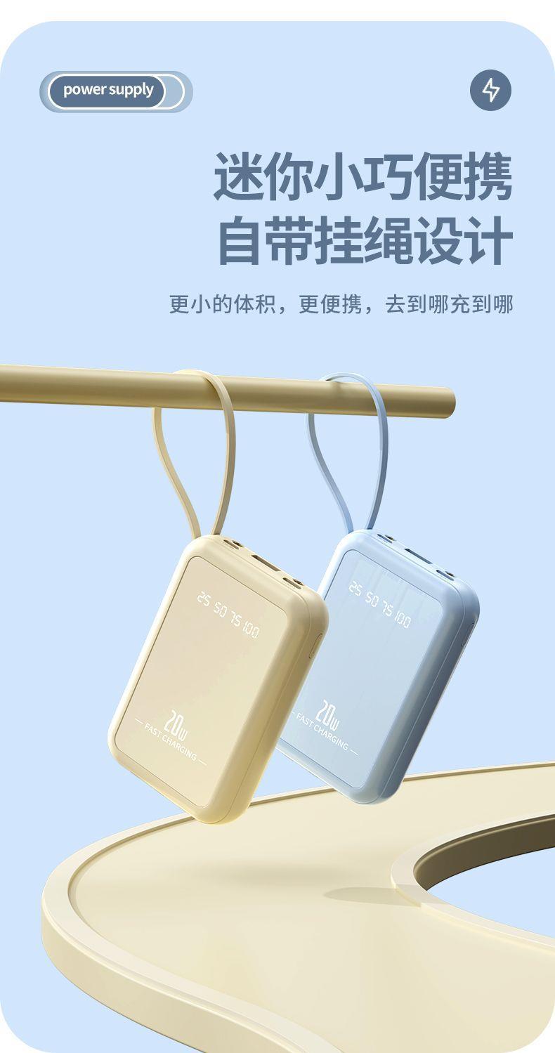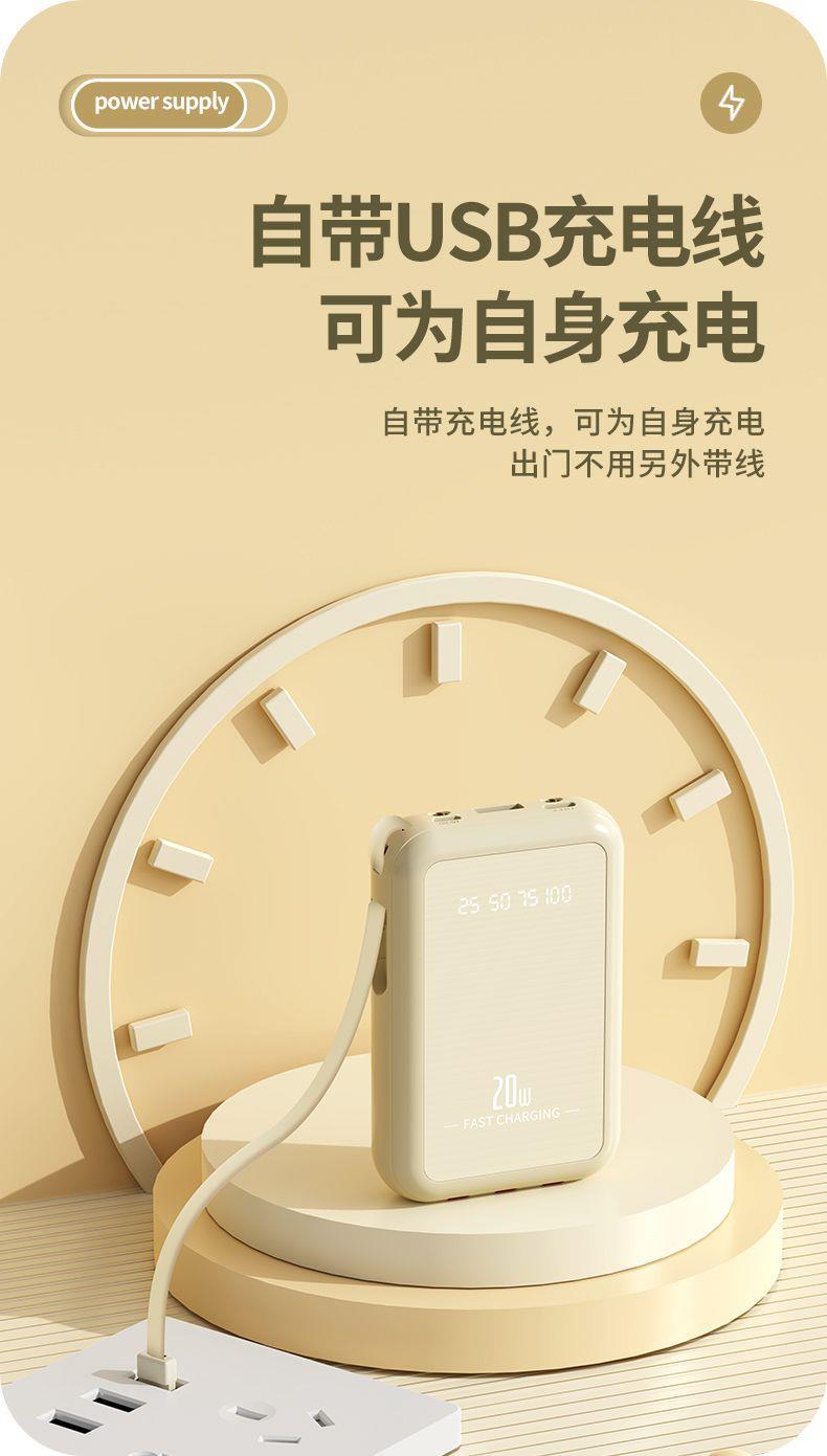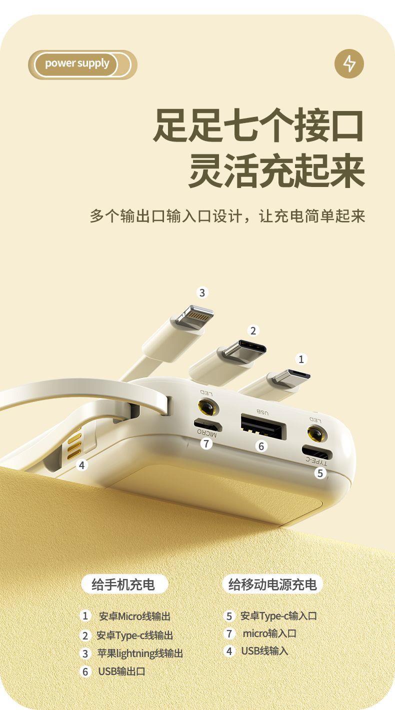 自带4线20000毫安充电宝快充大容量轻便适用华为安卓OPPOvivo风扇