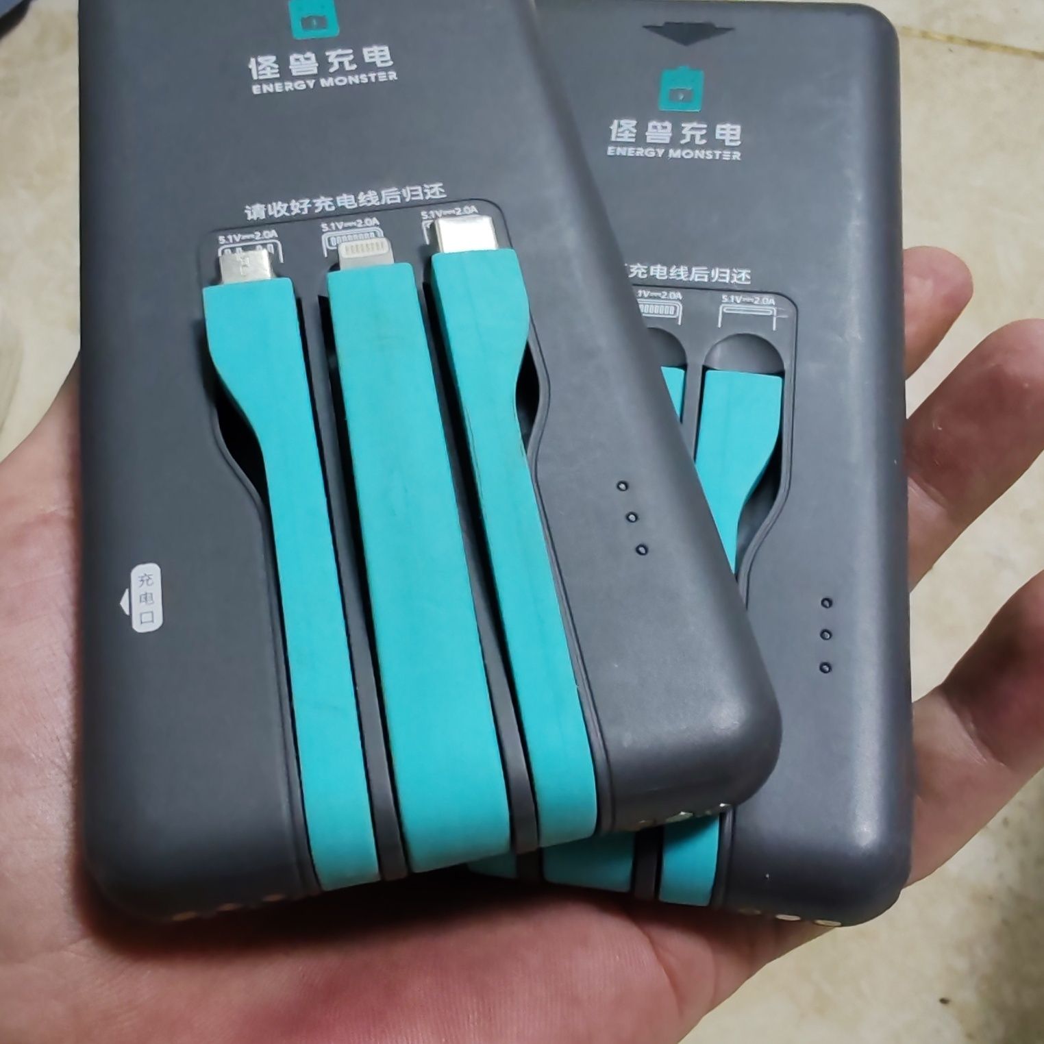 自带共享5000毫安合一快充便携移动轻巧充电三线超薄电源