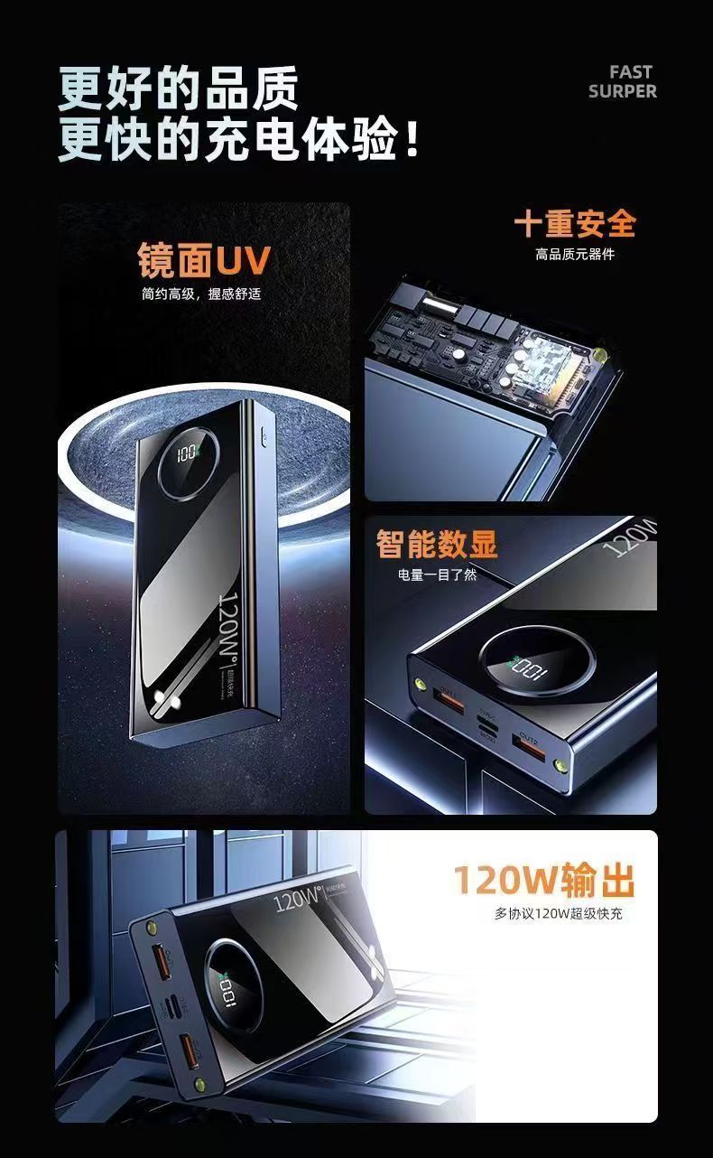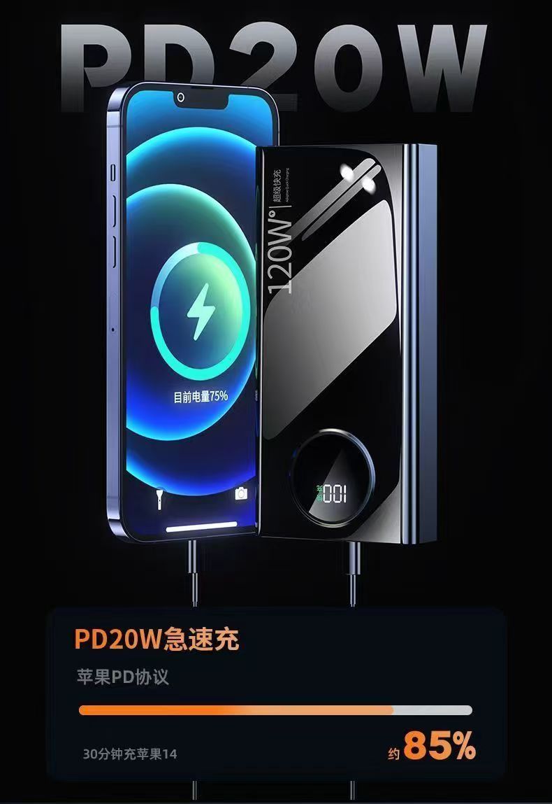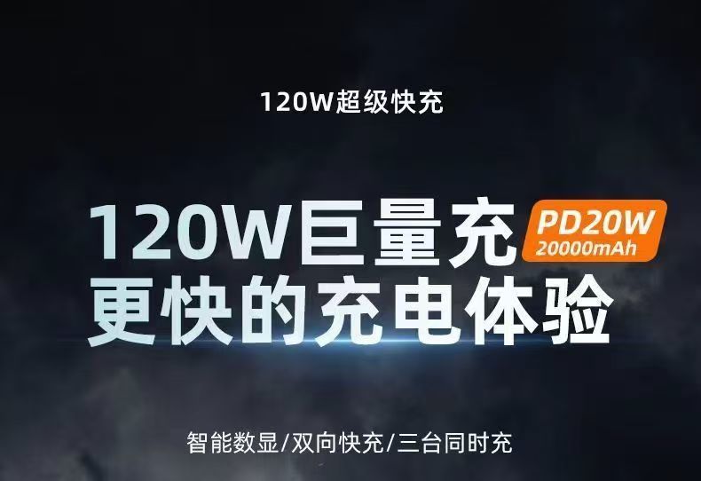 大容量20000毫安充电宝超级快充120W手机通用户骑手移动电源闪充